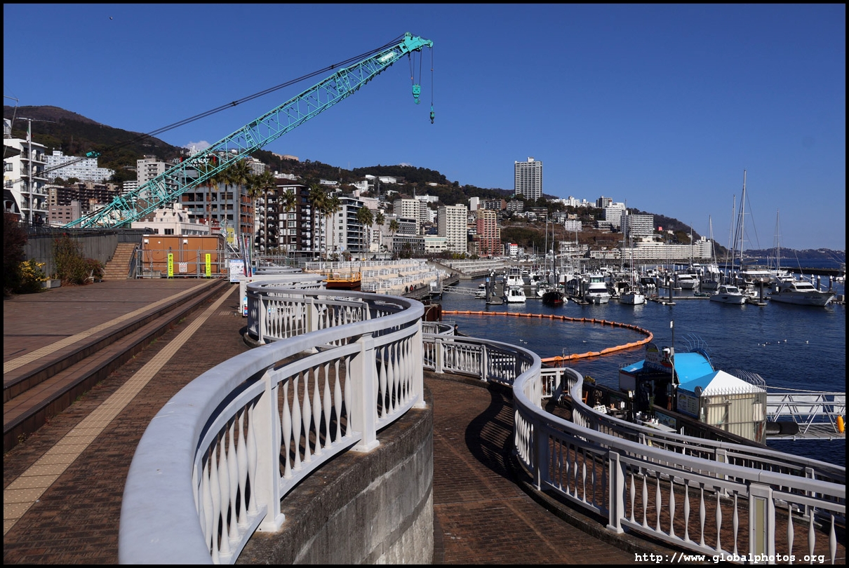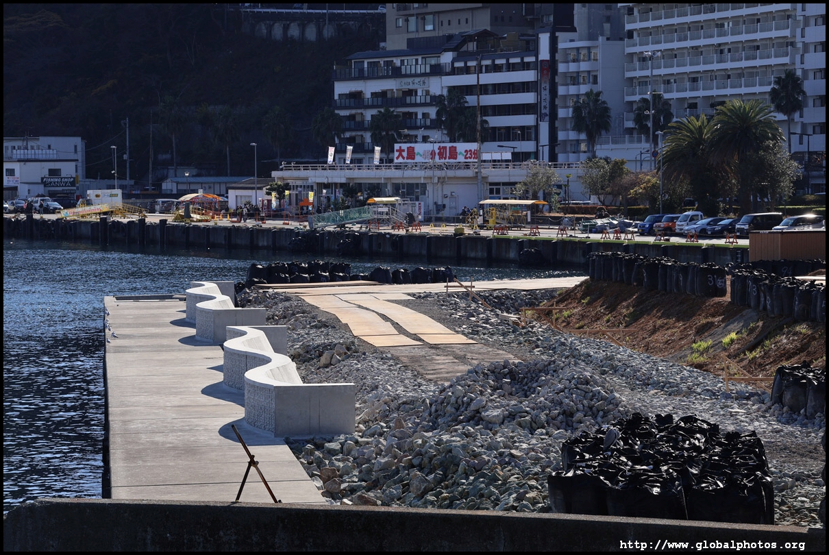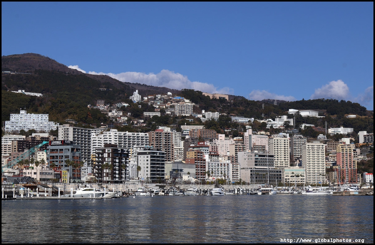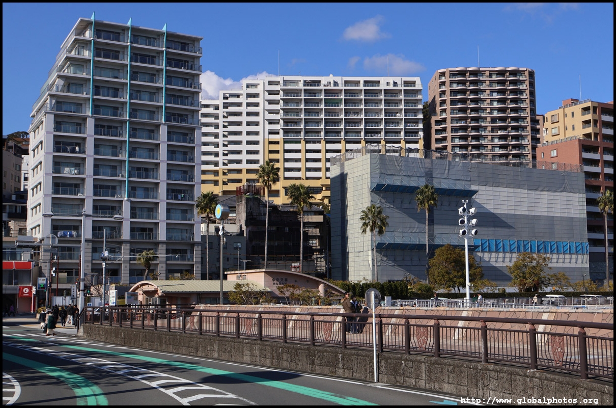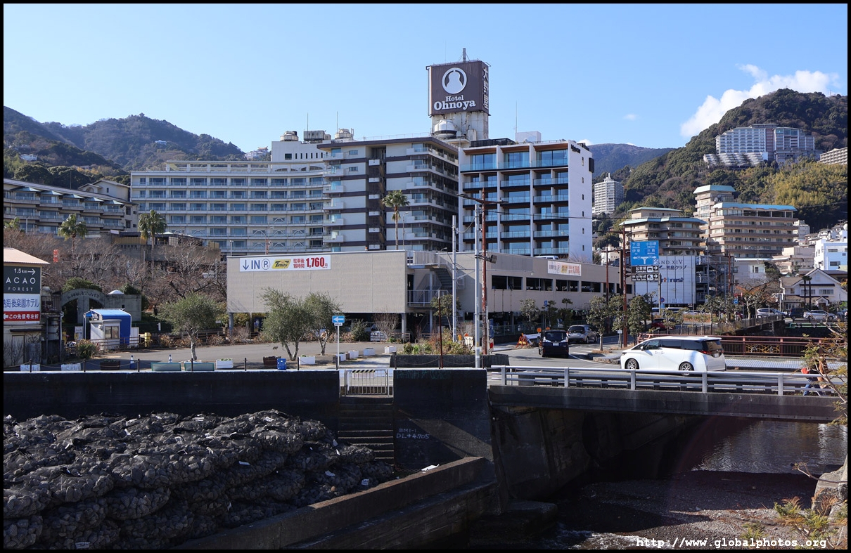 Today's Atami sits on the crater of an extinct volcano, with a beach in the city centre and a long waterfront promenade around it. It is nicely manicured, clean as usual because it is Japan, with a line of palm trees to give you a tropical resort feel.