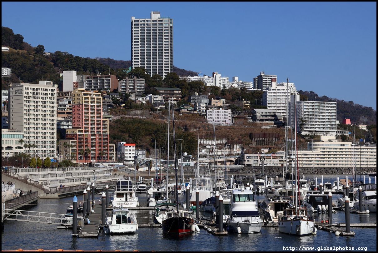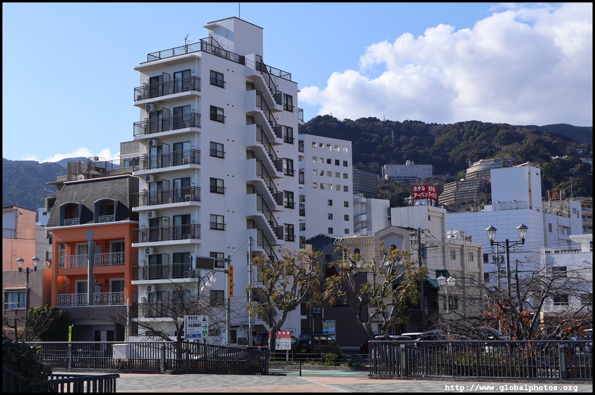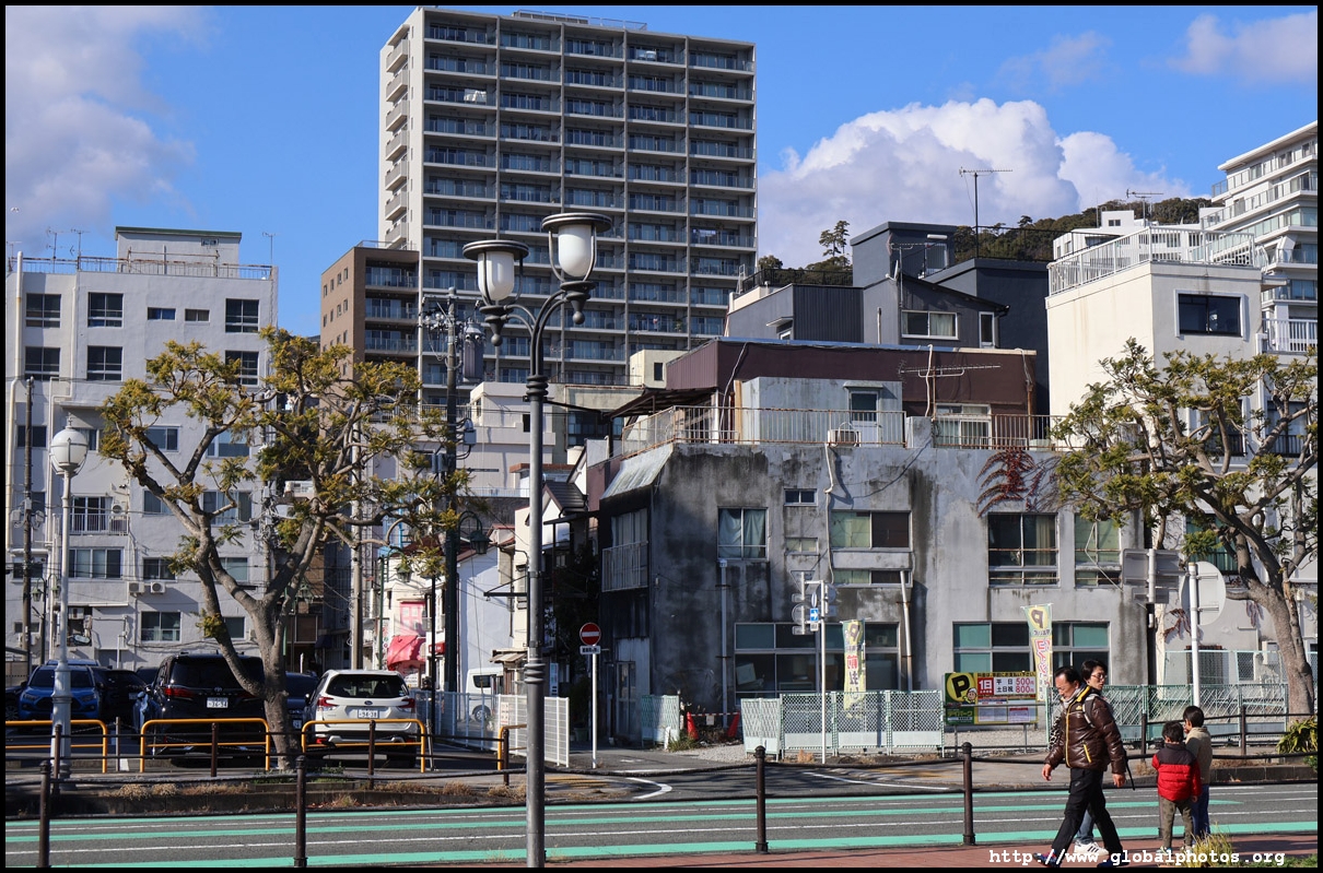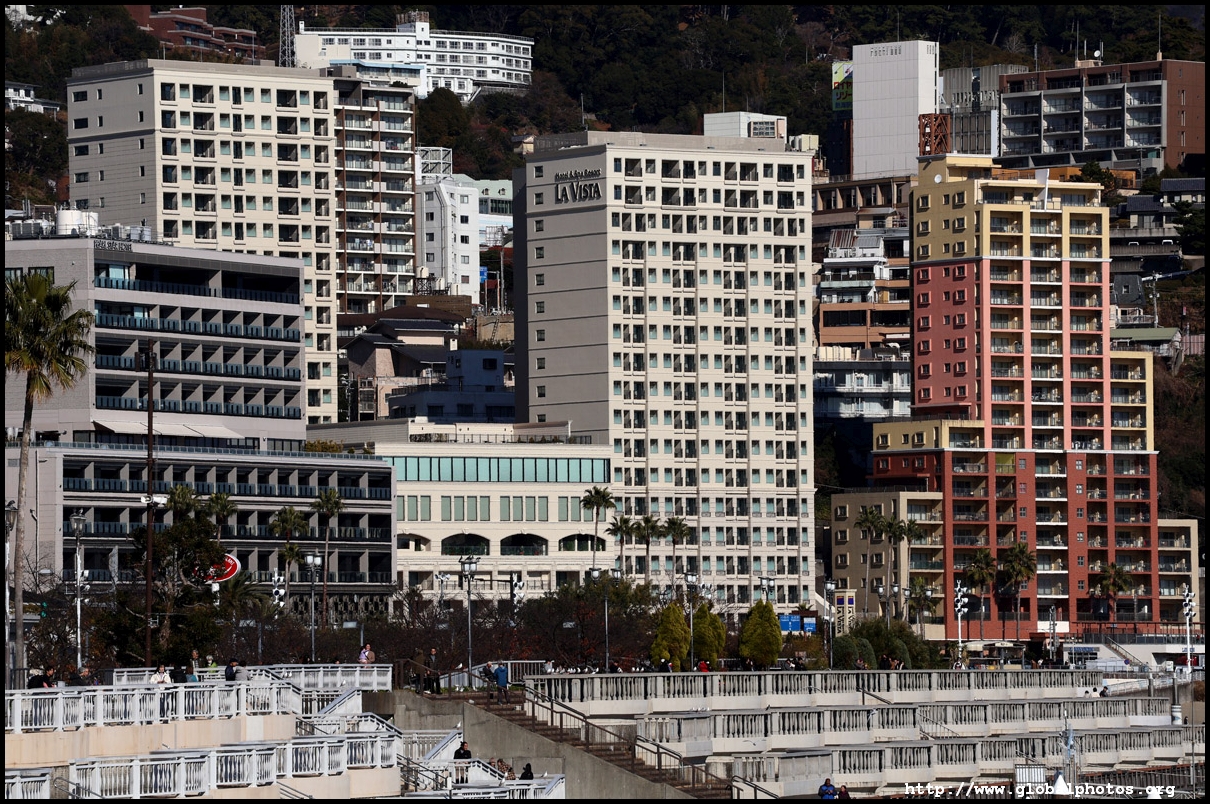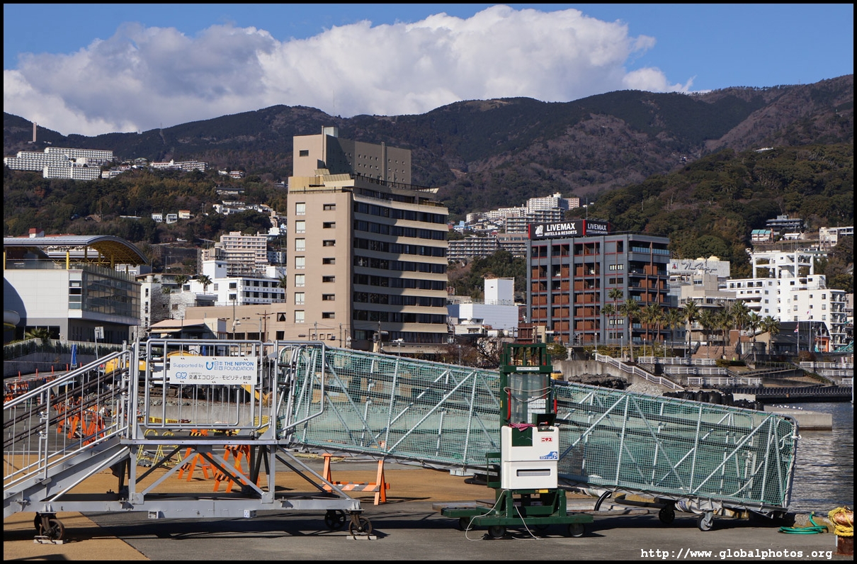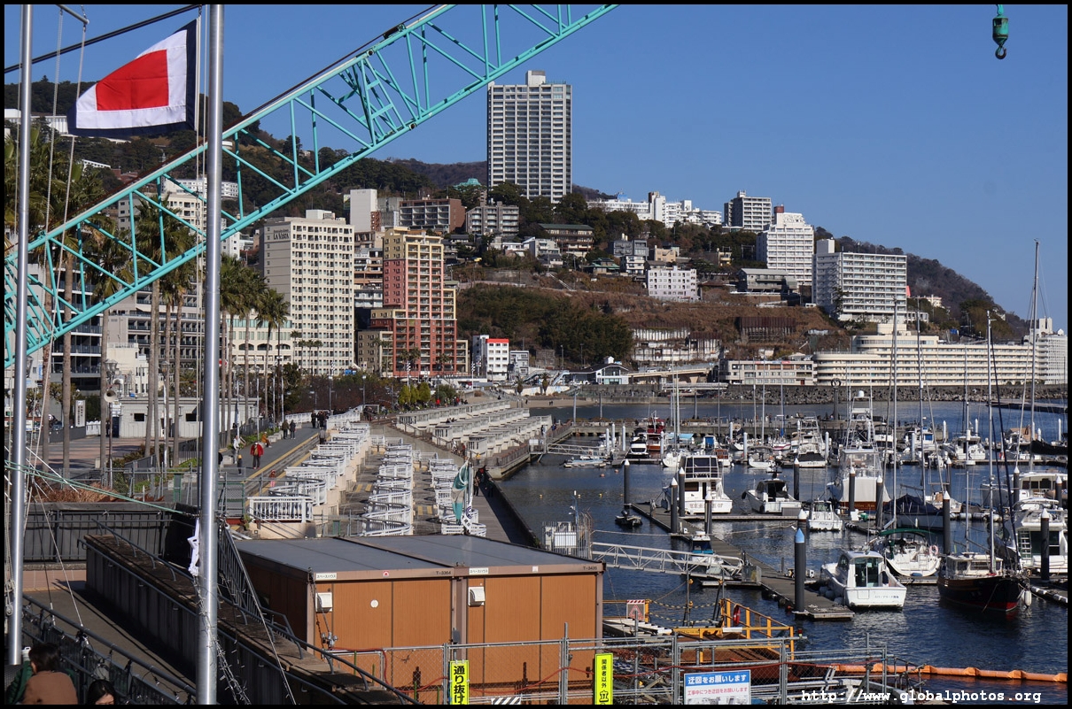 Today's Atami sits on the crater of an extinct volcano, with a beach in the city centre and a long waterfront promenade around it. It is nicely manicured, clean as usual because it is Japan, with a line of palm trees to give you a tropical resort feel.