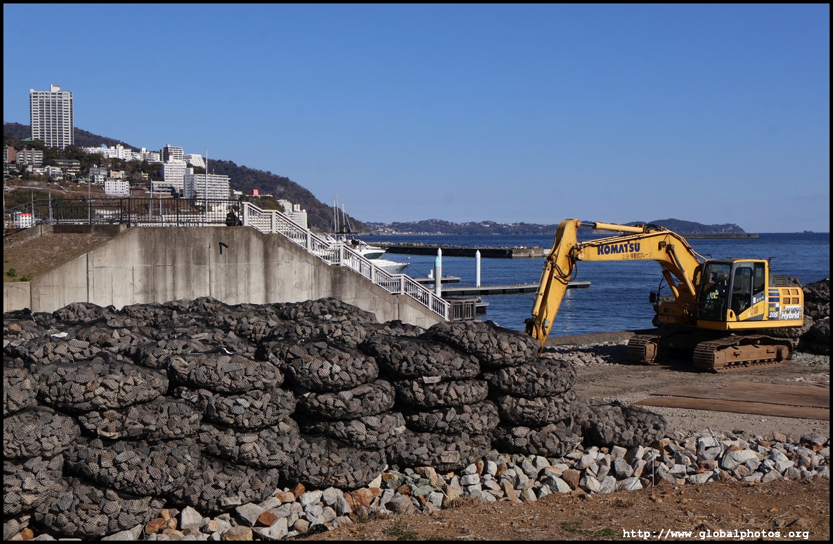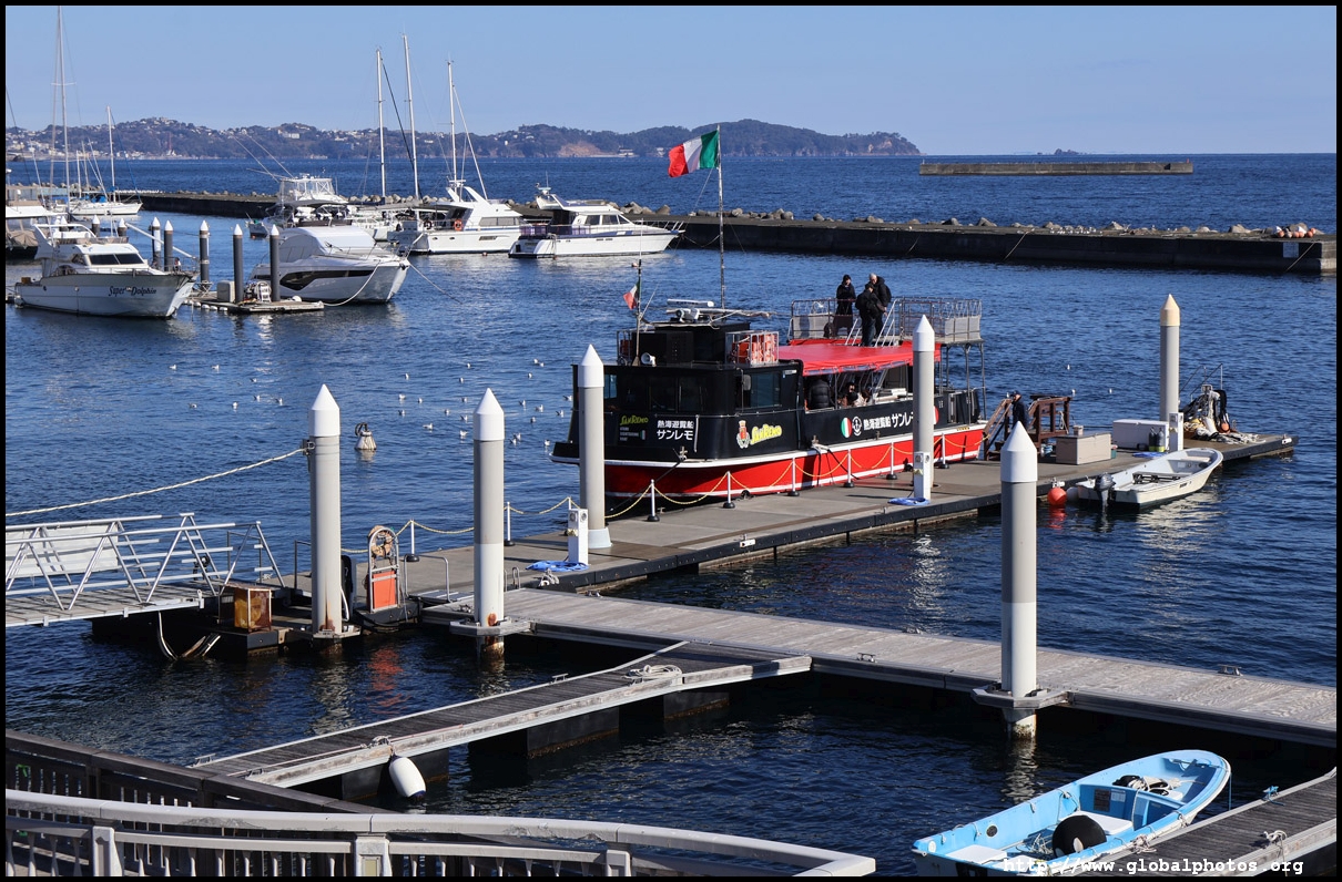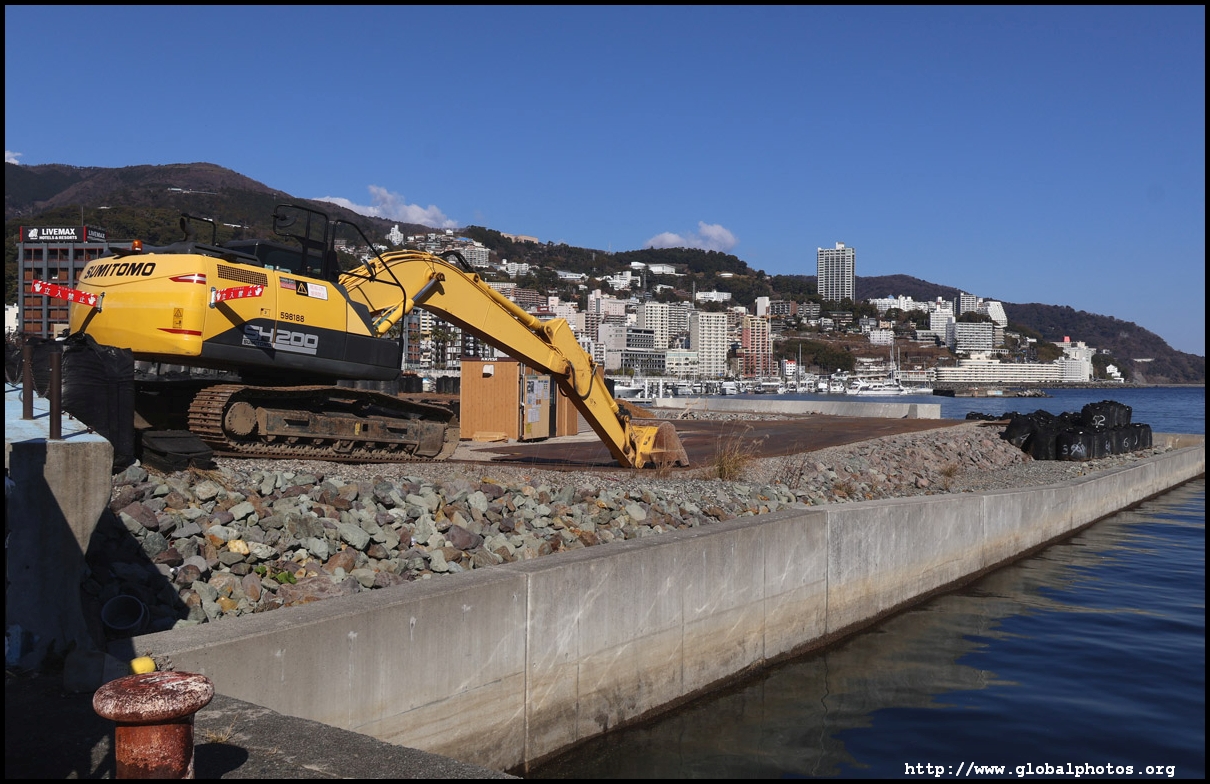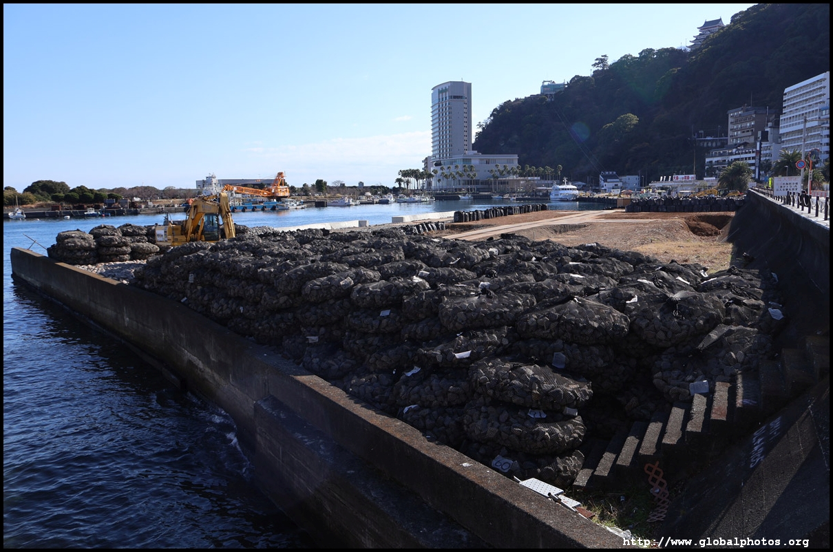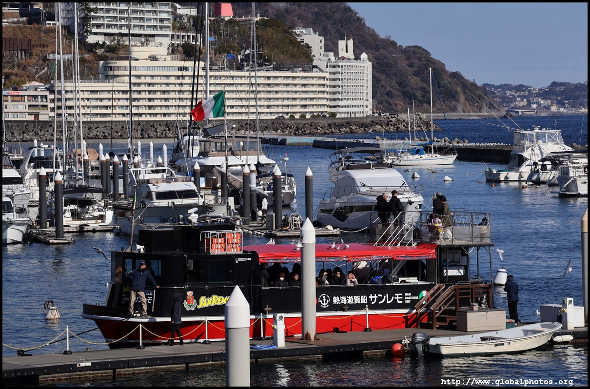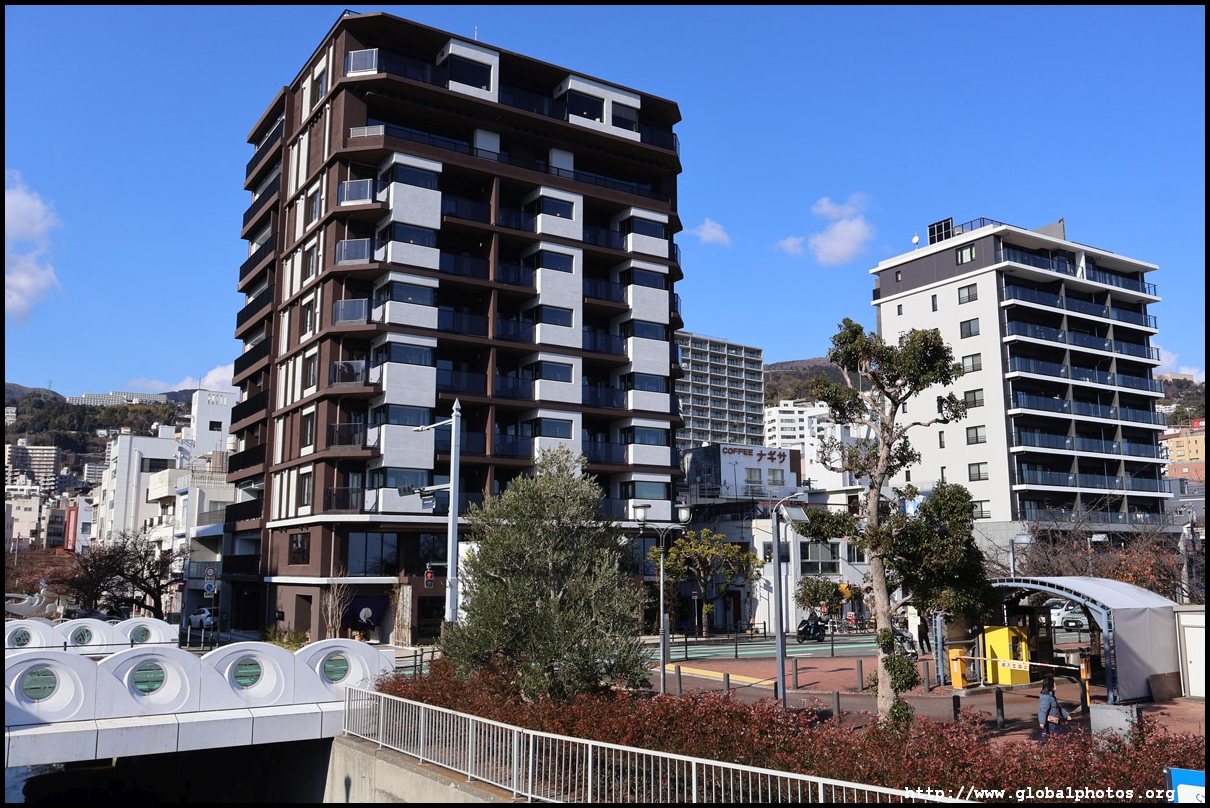 Today's Atami sits on the crater of an extinct volcano, with a beach in the city centre and a long waterfront promenade around it. It is nicely manicured, clean as usual because it is Japan, with a line of palm trees to give you a tropical resort feel.