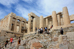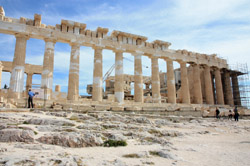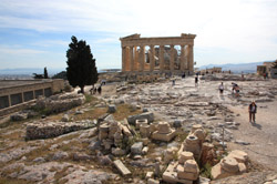 The Parthenon commands a wonderful view of Athens. Dedicated to Athena parthenos, the goddess of power and prestige for the city, it is the largest Doric temple in the country. Given its prominence, expect large crowds even though it's a huge place with everything spread out.