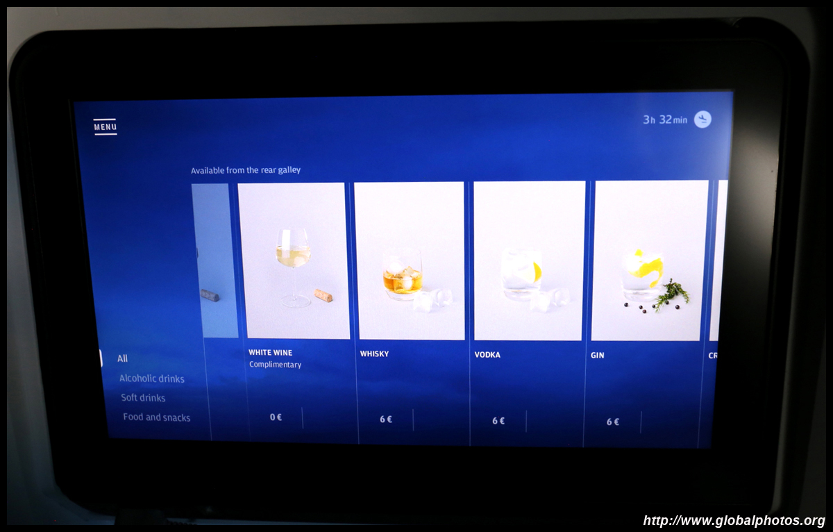 While meals are free on this long-haul flight, there was a paid-for food menu as well. The basic items are free, such as white wine, but the heavier stuff such as vodka and gin would cost you.