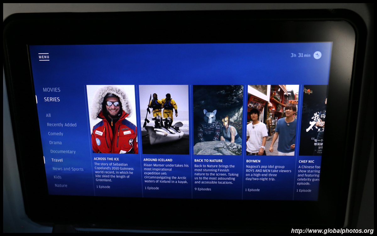Browsing the IFE, the selection wasn't the greatest although they have a wide variety of Asian content to cater for its many routes to the region. They even have an arrival video specific to Chinese travelers. I liked the arrival time counter at the top right of the screen.