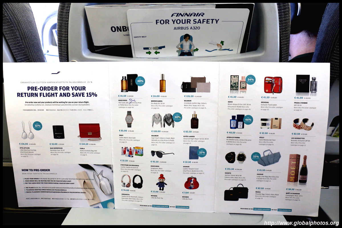 With a connecting flight in Helsinki and exiting into the city for lunch, I wasn't interested in buying any more cargo for the trip home. Although the boarding time was written as 8:15am, the plane had only arrived just minutes before that. I had my doubts whether the A320 could be thoroughly cleaned on time, but we ended up pushing back just a few minutes behind schedule.