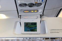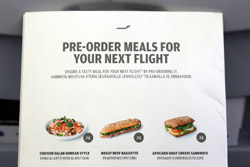 The cabin was clean with spacious legroom. There are no personal TVs so I relied on the flight map on the overhead screen. While reading material was behind the headrest, there was still a netted pocket for storage below.