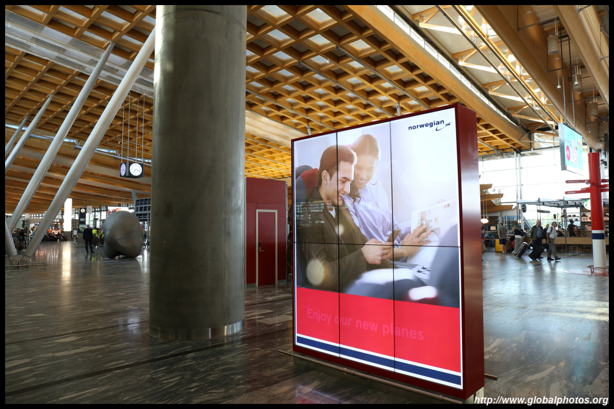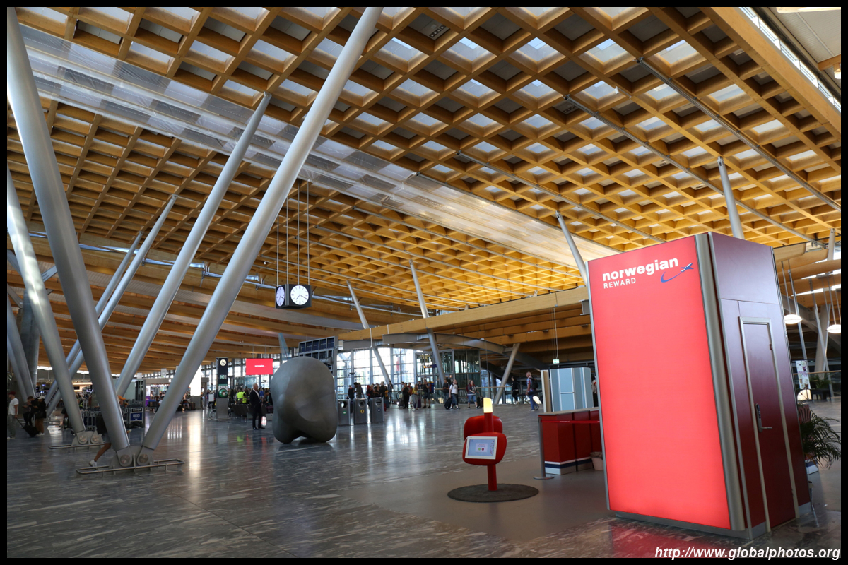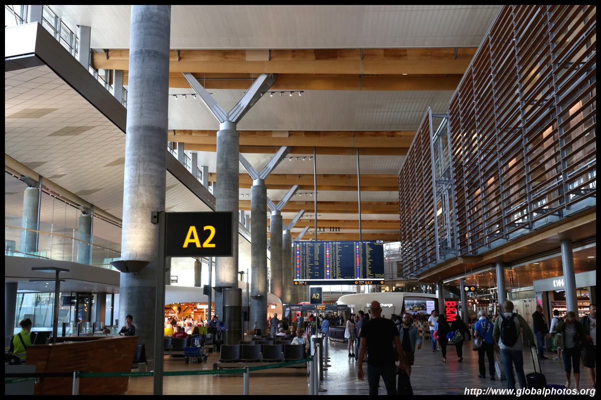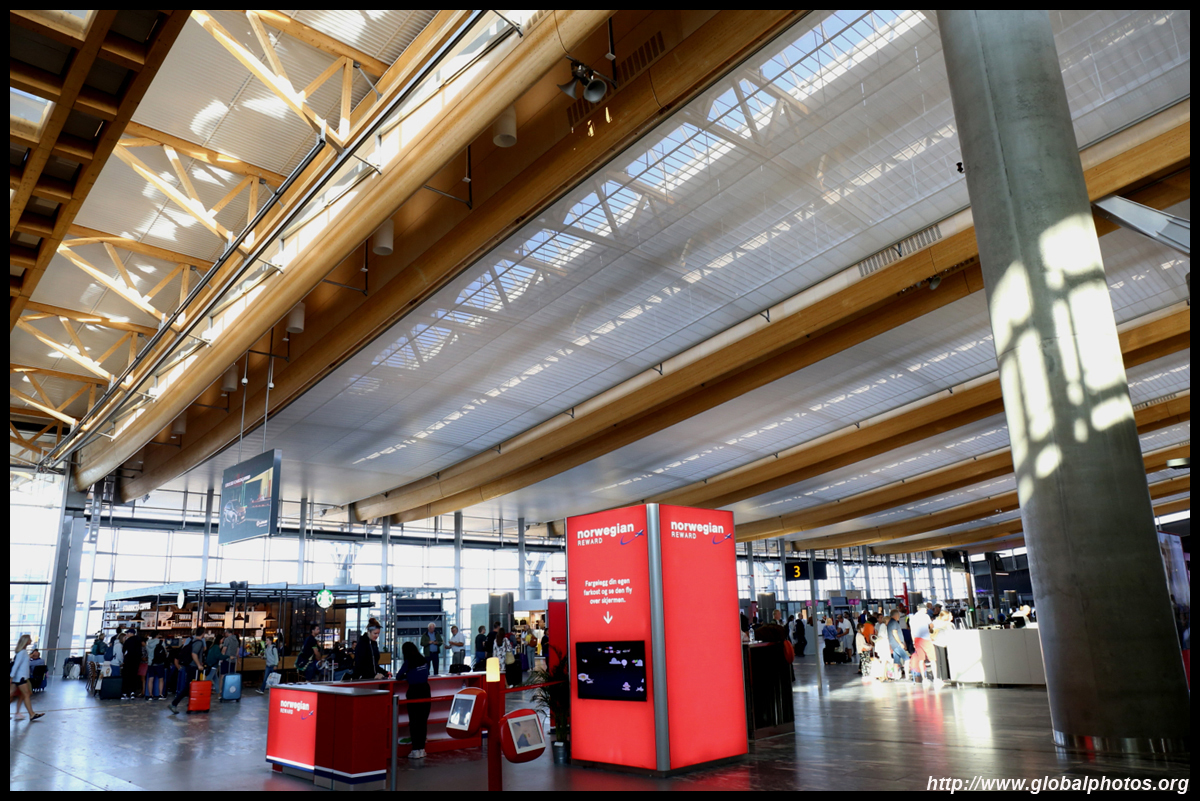 It took about 15 minutes for 1 additional staff to open a counter for regulars. By then, I had already printed my bag tags and boarding passes from the kiosk, but still needed counter assistance to drop off the luggage. Yet again, like in North America, these kiosks just add an additional layer of bureaucracy to the passenger experience. What used to be a 1-stop shop now is 2 stops. I was among the early ones that arrived 2 hours before departure. By the time my bag was on the way, the line had snaked much further beyond the desks towards the windows. Other than the long check-in experience, the terminal looked nice. Airy and spacious, it had some wooden roof finishings that give a cozy touch. Even the counters for Norwegian, the low cost carrier, were stylish and not so crowded at all at this early hour.