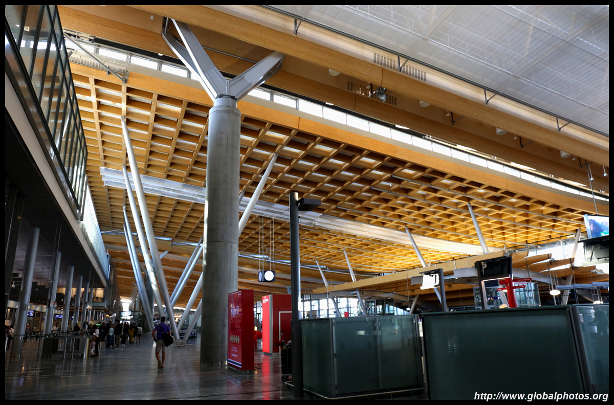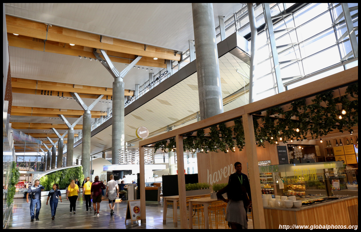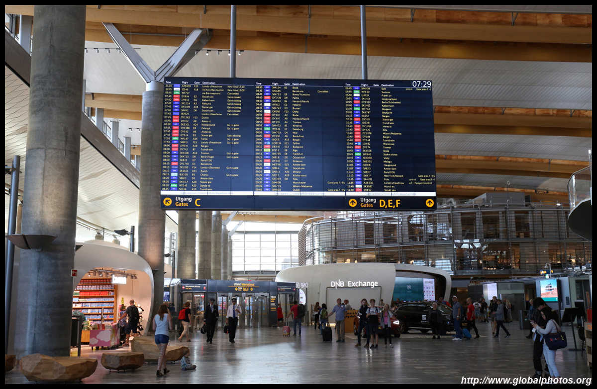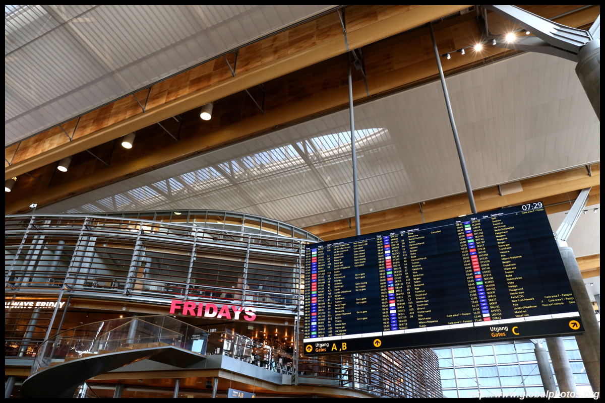 It took about 15 minutes for 1 additional staff to open a counter for regulars. By then, I had already printed my bag tags and boarding passes from the kiosk, but still needed counter assistance to drop off the luggage. Yet again, like in North America, these kiosks just add an additional layer of bureaucracy to the passenger experience. What used to be a 1-stop shop now is 2 stops. I was among the early ones that arrived 2 hours before departure. By the time my bag was on the way, the line had snaked much further beyond the desks towards the windows. Other than the long check-in experience, the terminal looked nice. Airy and spacious, it had some wooden roof finishings that give a cozy touch. Even the counters for Norwegian, the low cost carrier, were stylish and not so crowded at all at this early hour.