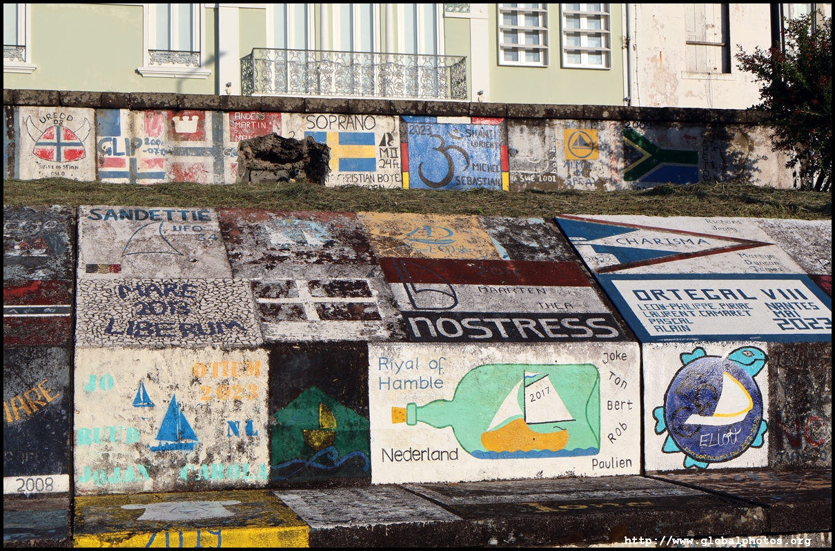 The marina is decorated with paintings by crews from visiting boats, a tradition that is believed to bring protection on its return. Over 1200 vessels call here every year on their transatlantic journeys.
