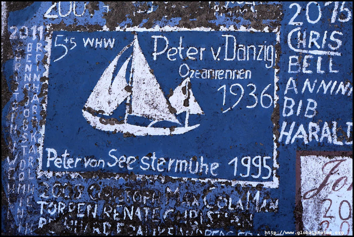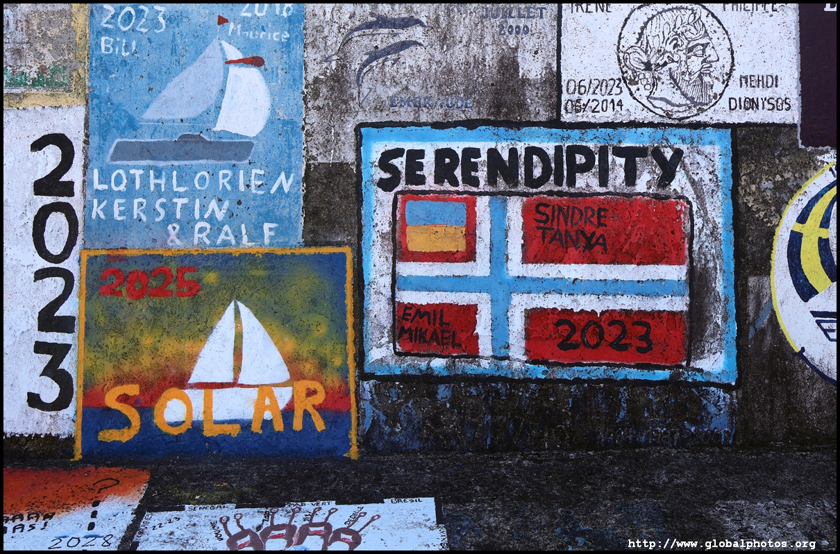 The marina is decorated with paintings by crews from visiting boats, a tradition that is believed to bring protection on its return. Over 1200 vessels call here every year on their transatlantic journeys.