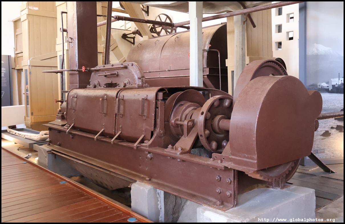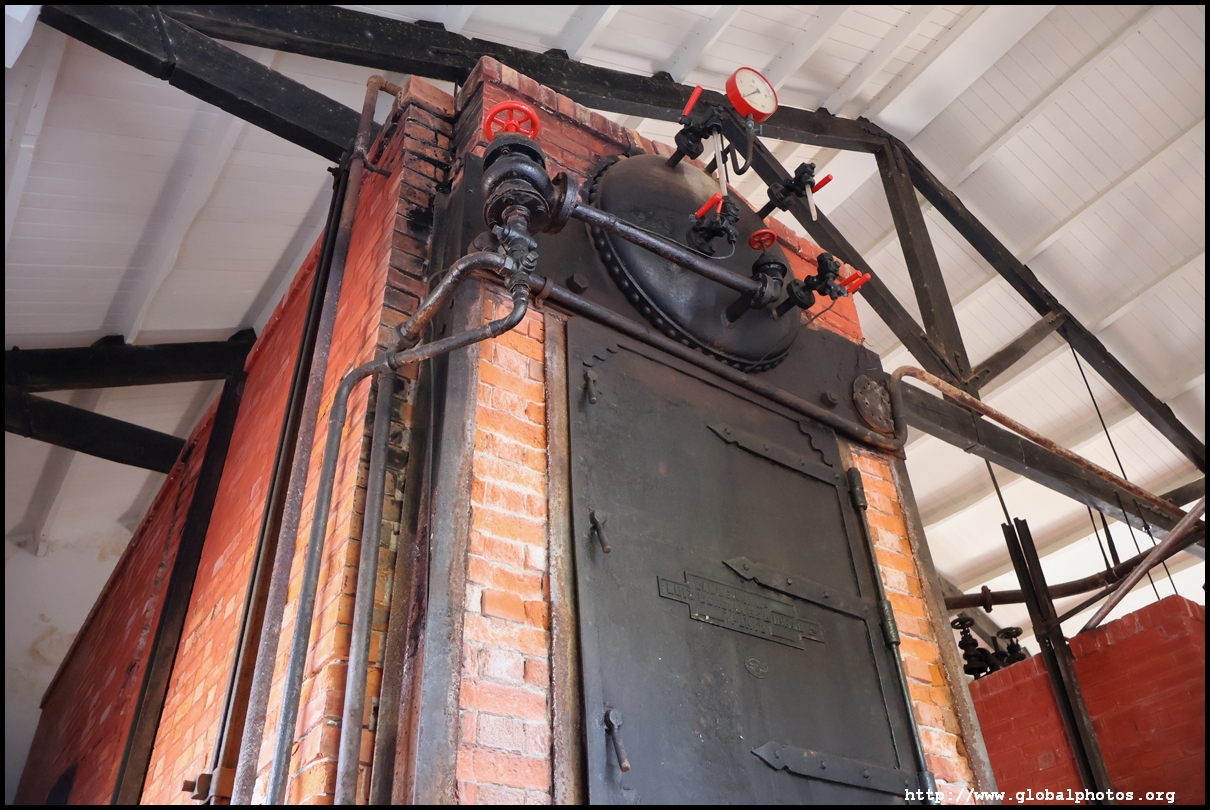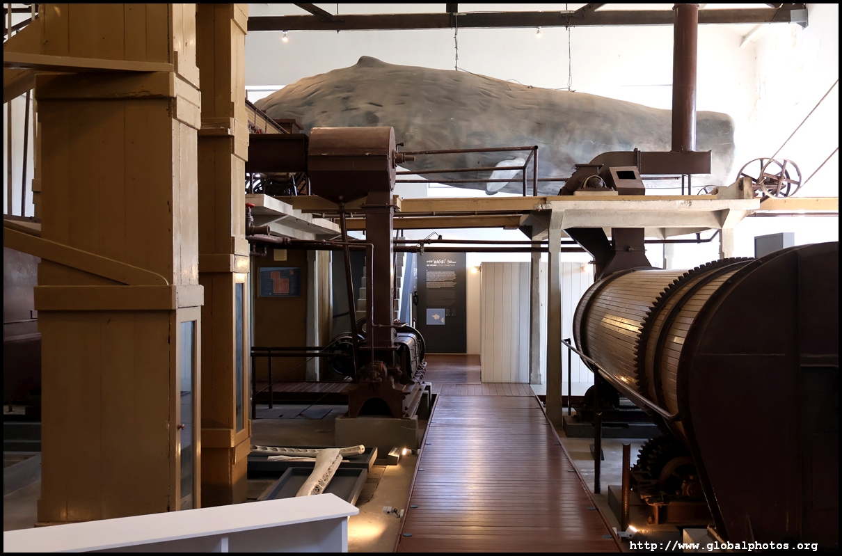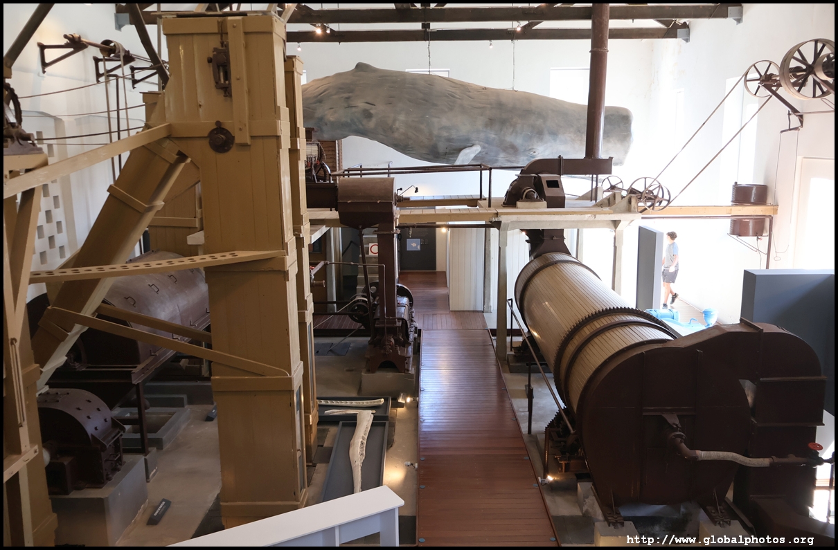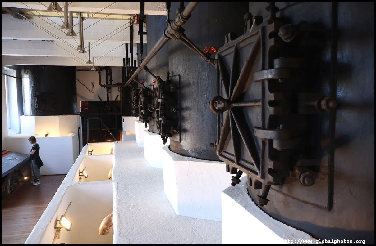 Using wood from the neighbouring island of Pico, the 2 boilers produced steam to power the factory's machinery, including cookers for blubber and bones, meat dryer, and more.