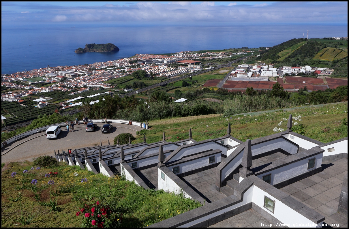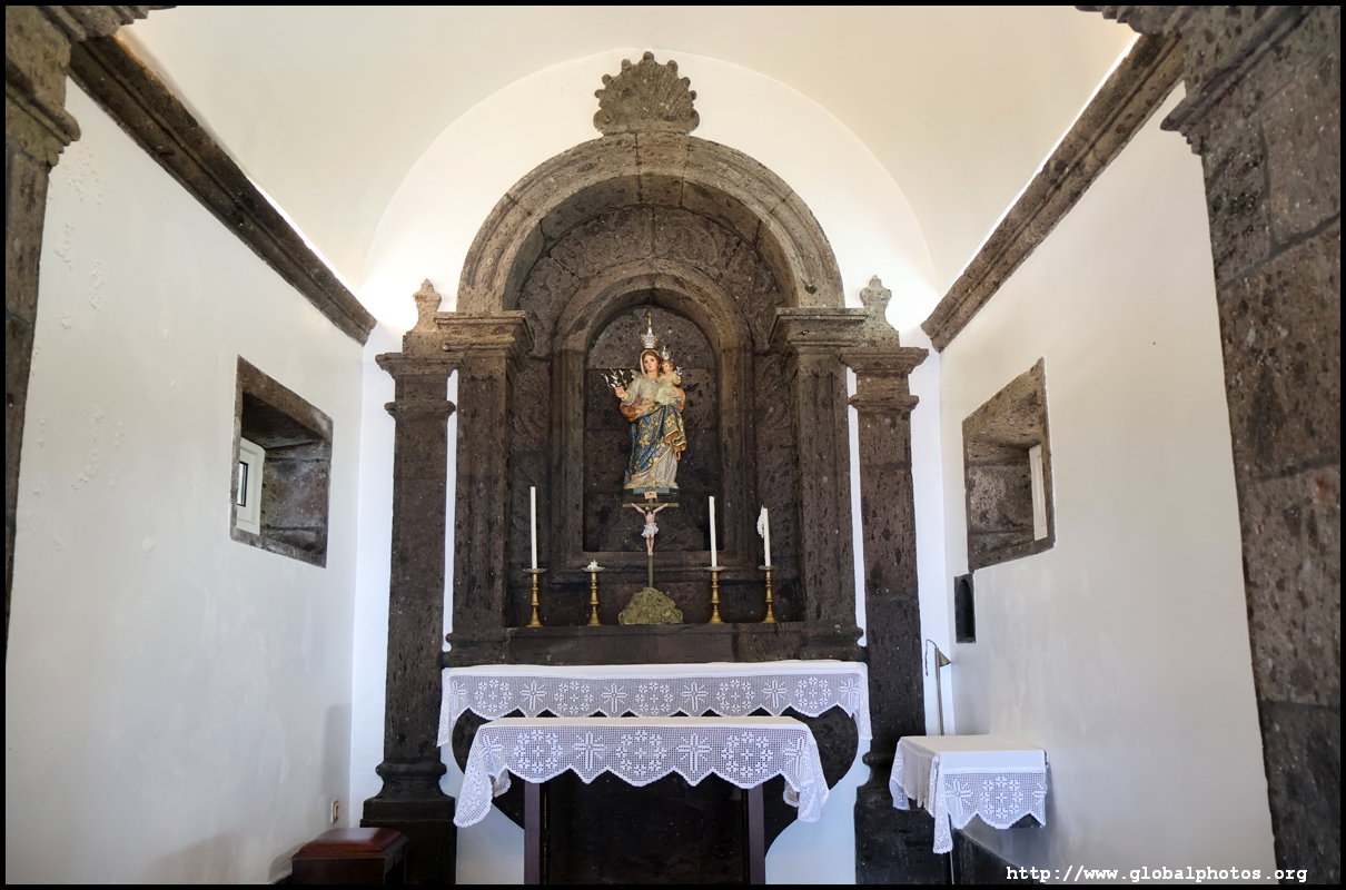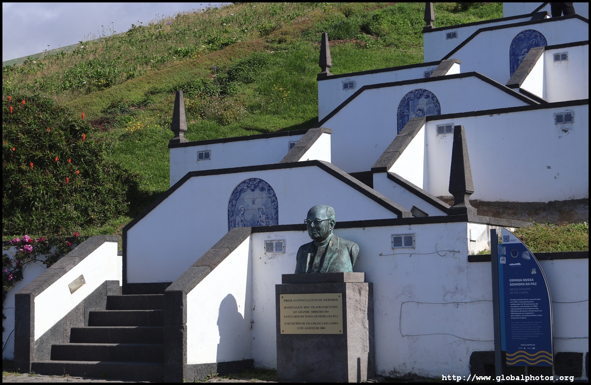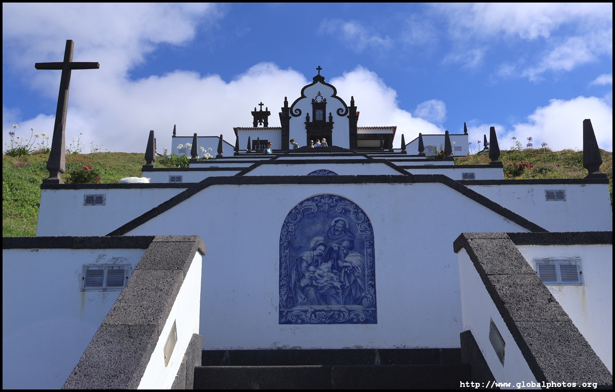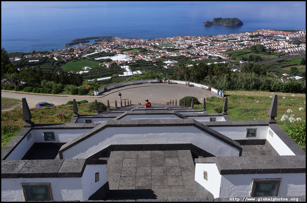 With a car, it was a winding way along narrow roads up the hill to the Nossa Senhora da Paz Chapel. Built in the 16th century and rebuilt in 1764, the church is accessible by a long staircase from more recent times that represents 2/3 of the rosary.