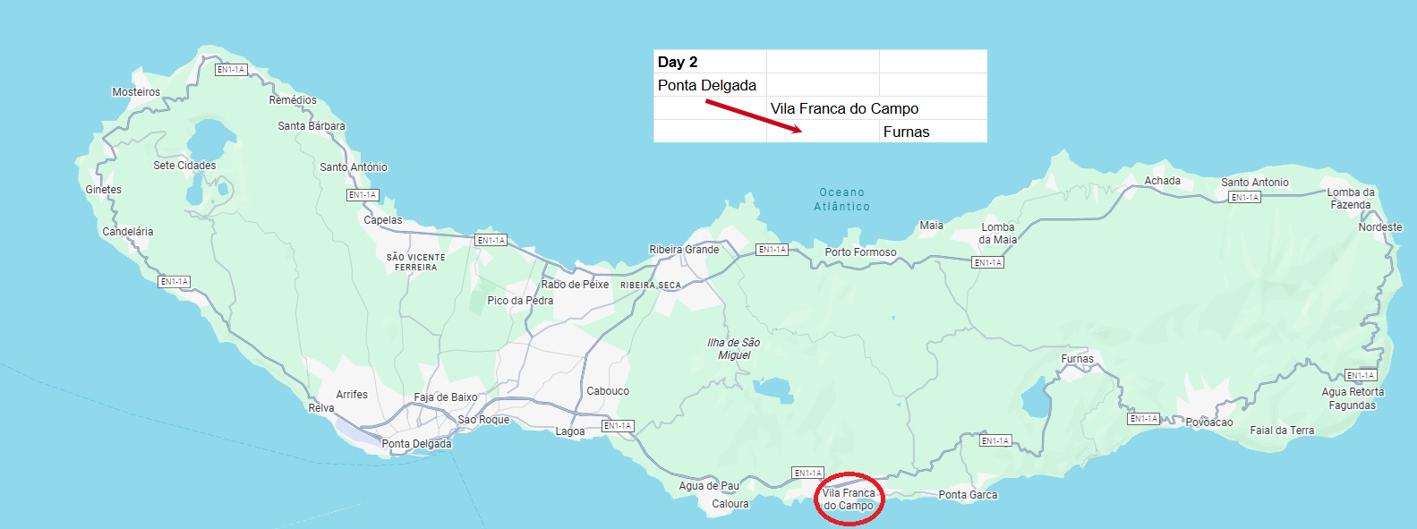 Stretching 62km long and 15km wide, Sao Miguel is the largest island in the Azores. Today, the plan is to explore the eastern part of the island with a few stops along the coast before heading inland for lunch.