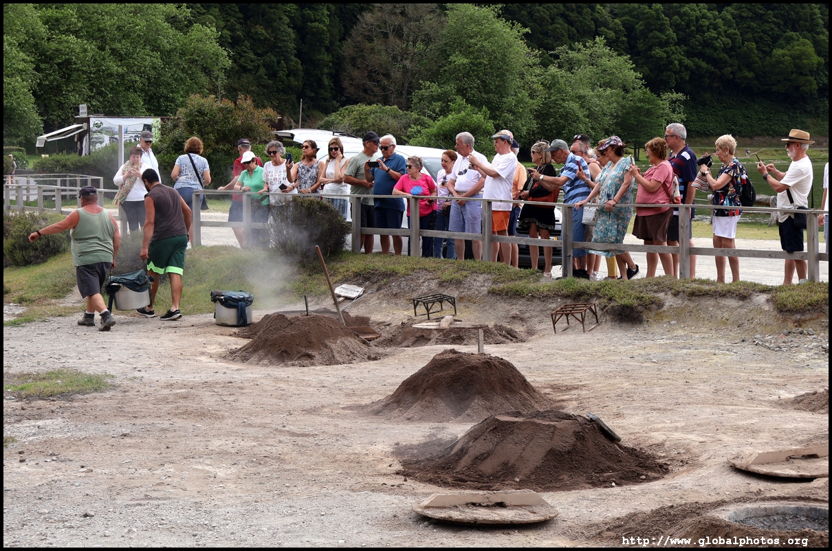 Heading back downhill, after paying a small charge to park, I walked out to the lake to look for the cooking holes powered by volcanic steam. This is where cozido is made, a traditional stew of meat and vegetables cooked underground for special events. Chefs first place the different cuts of meat and vegetables into a pot very early in the morning, then place it into a 1m-deep hole to cook at around 100C for 6-8 hours.