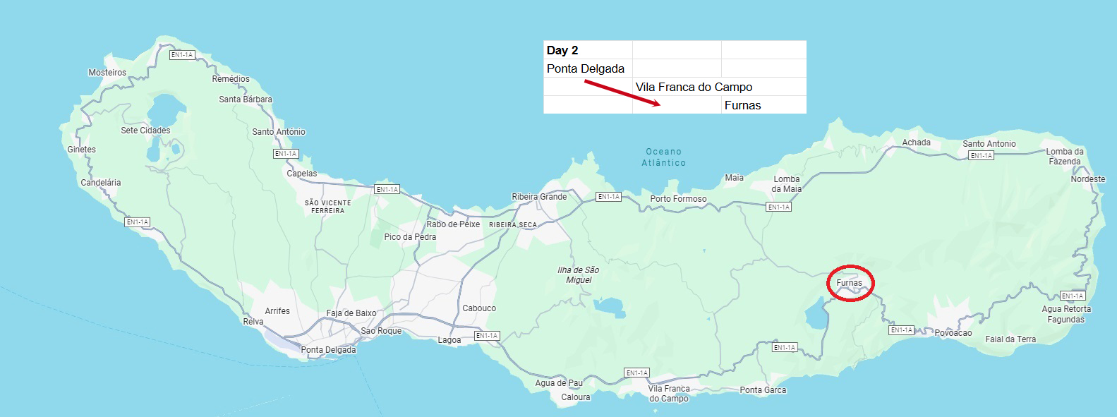 Stretching 62km long and 15km wide, Sao Miguel is the largest island in the Azores. Today, the plan is to explore the eastern part of the island with a few stops along the coast before heading inland for lunch.
