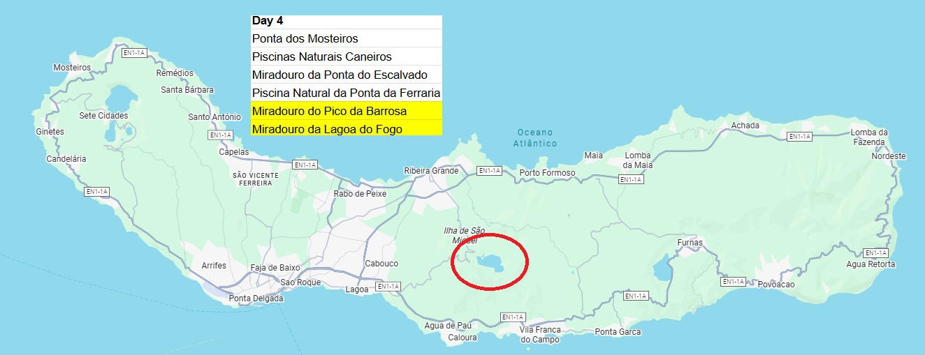 Lagoa do Fogo is geographically in the middle of the island and just northeast of Ponta Delgada. The area is a collapsed volcano formed about 15,000 years ago, making it the youngest and smallest caldera on the island, with the lake at 575m above sea level.