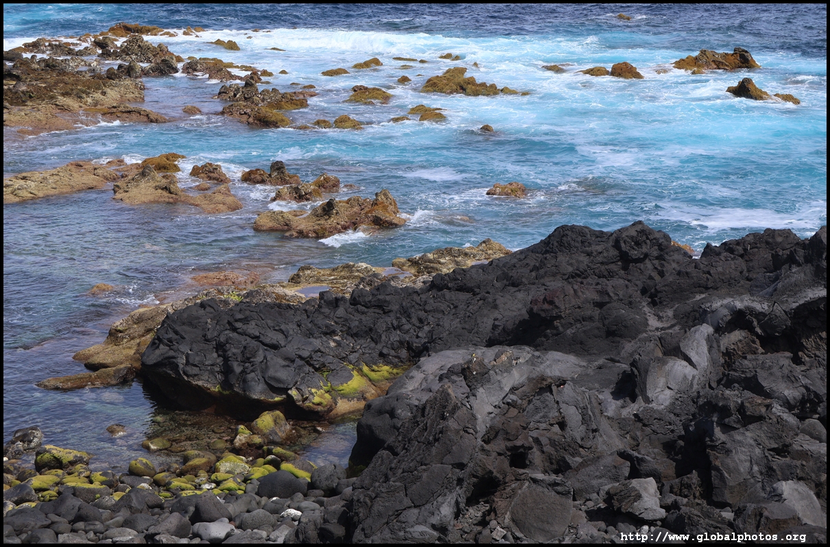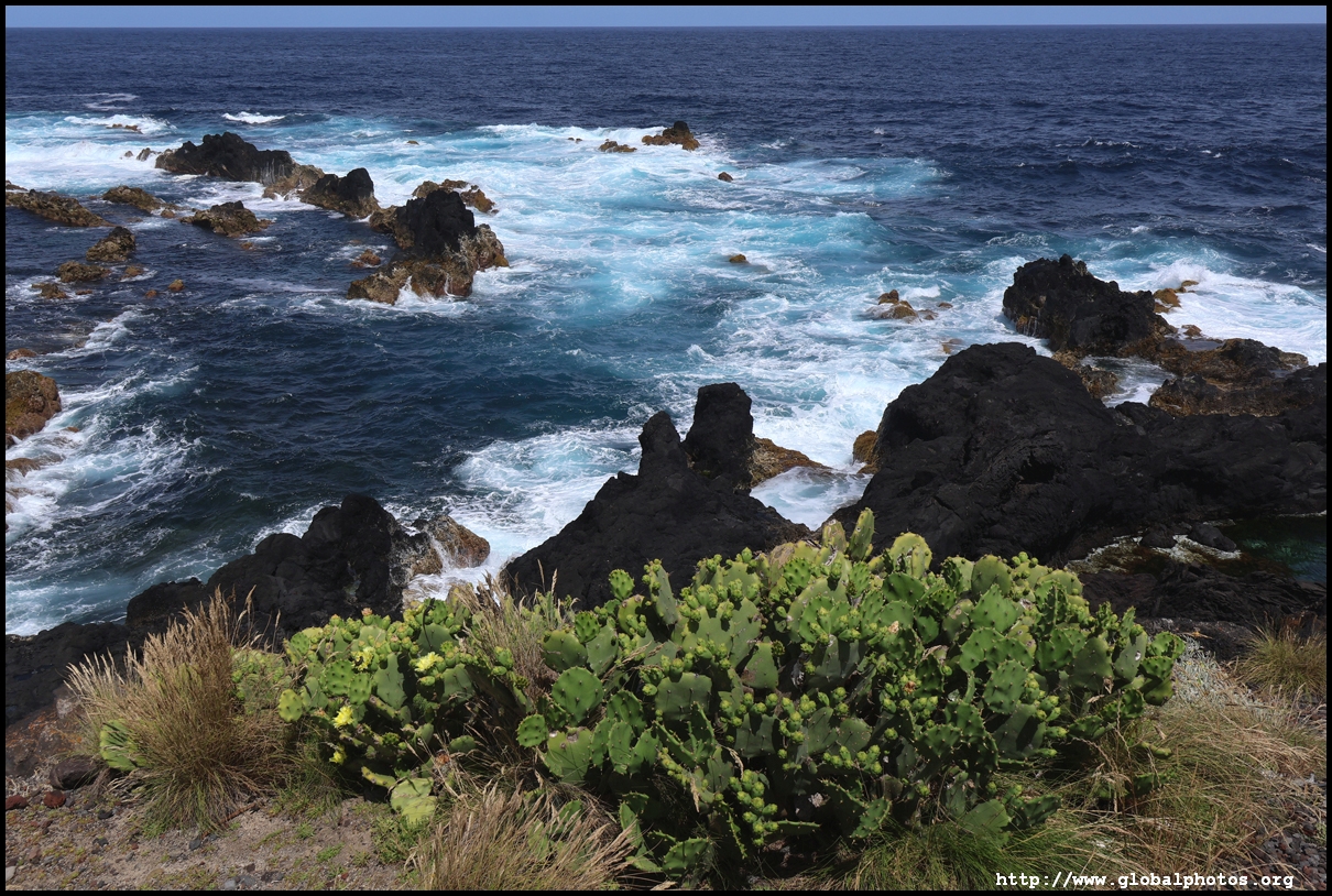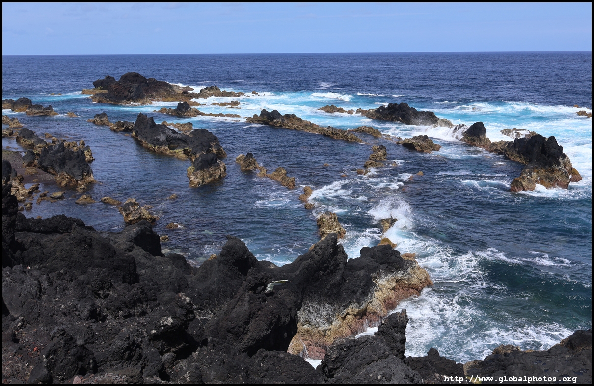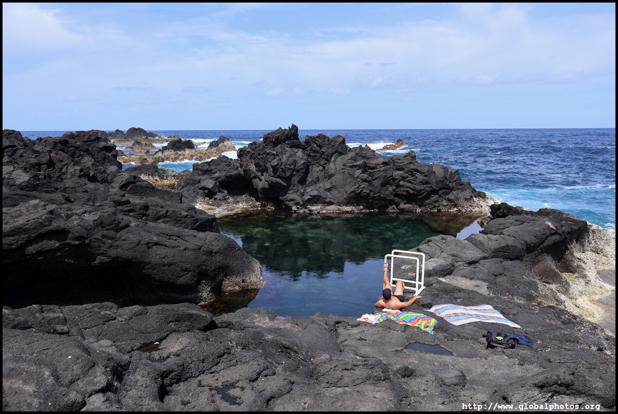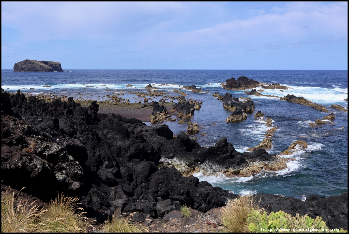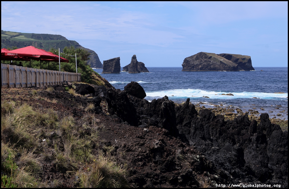 Today's itinerary is to explore the western edge of the island for the morning. I had previously gone uphill to Sete Cidades already so would stay along the coast this time. It took about an hour to drive from Ponta Delgada to Mosteiros beach, which is named after volcanic islets offshore that look like ancient church towers rising from the sea. The area was formed by cooling lava from volcanic eruptions, giving the area a black colour.