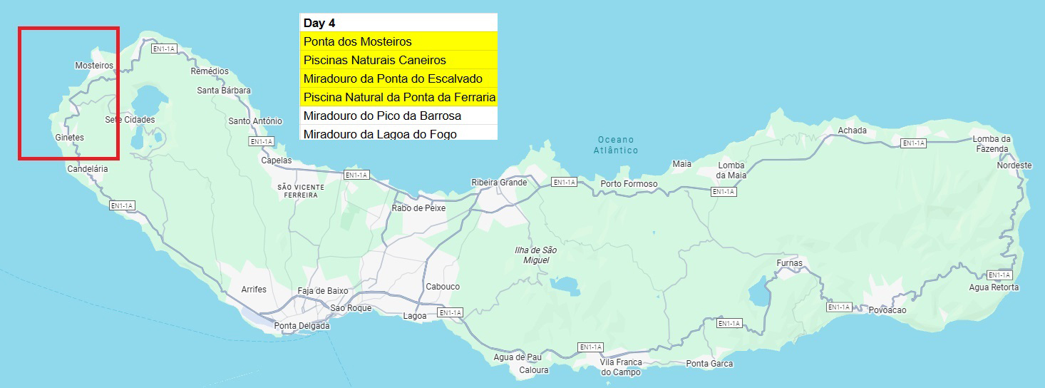 From Mosteiros beach, it's only a short drive uphill to Miradouro da Ponta do Escalvado, a viewpoint facing the sea. It's a good stop en route to the next stop, the natural pools.