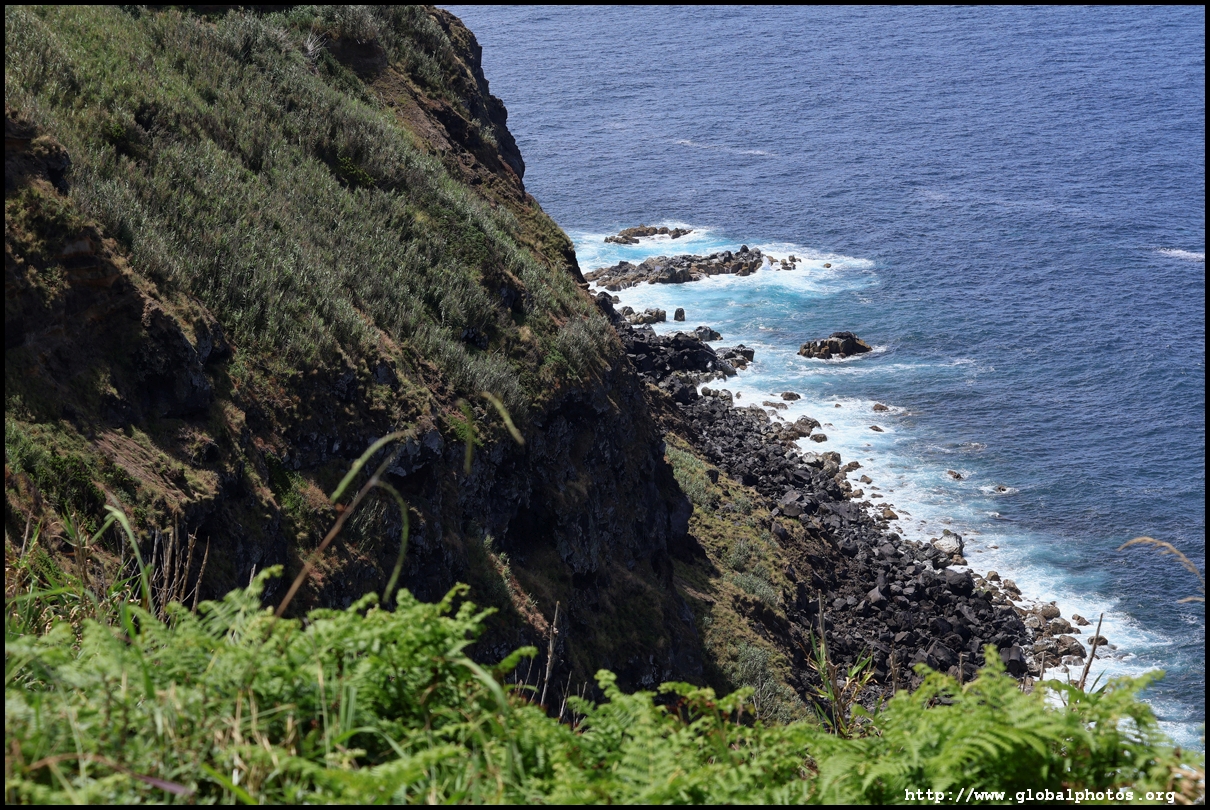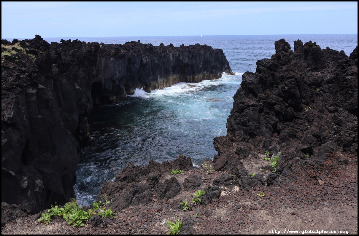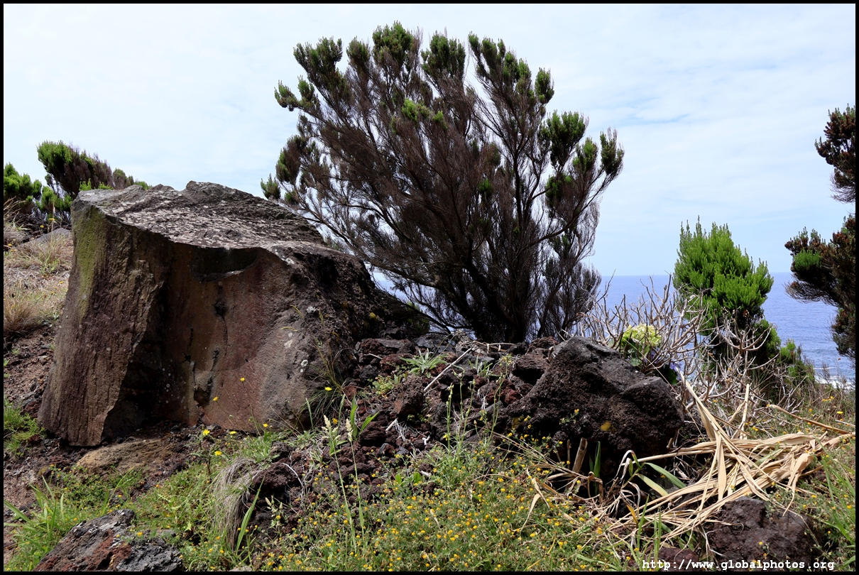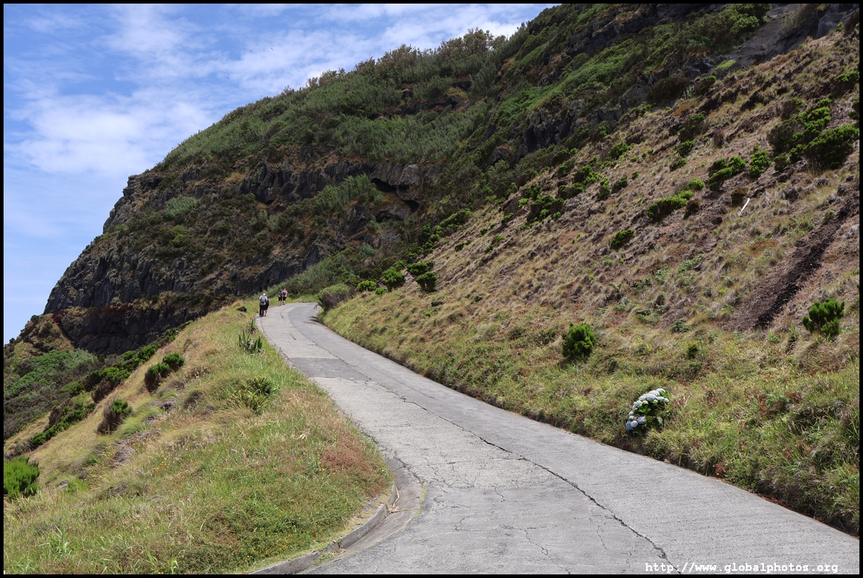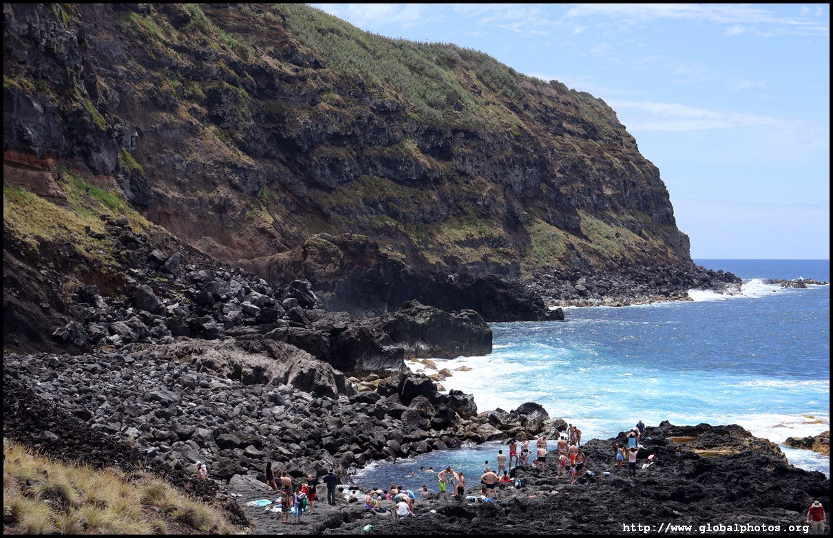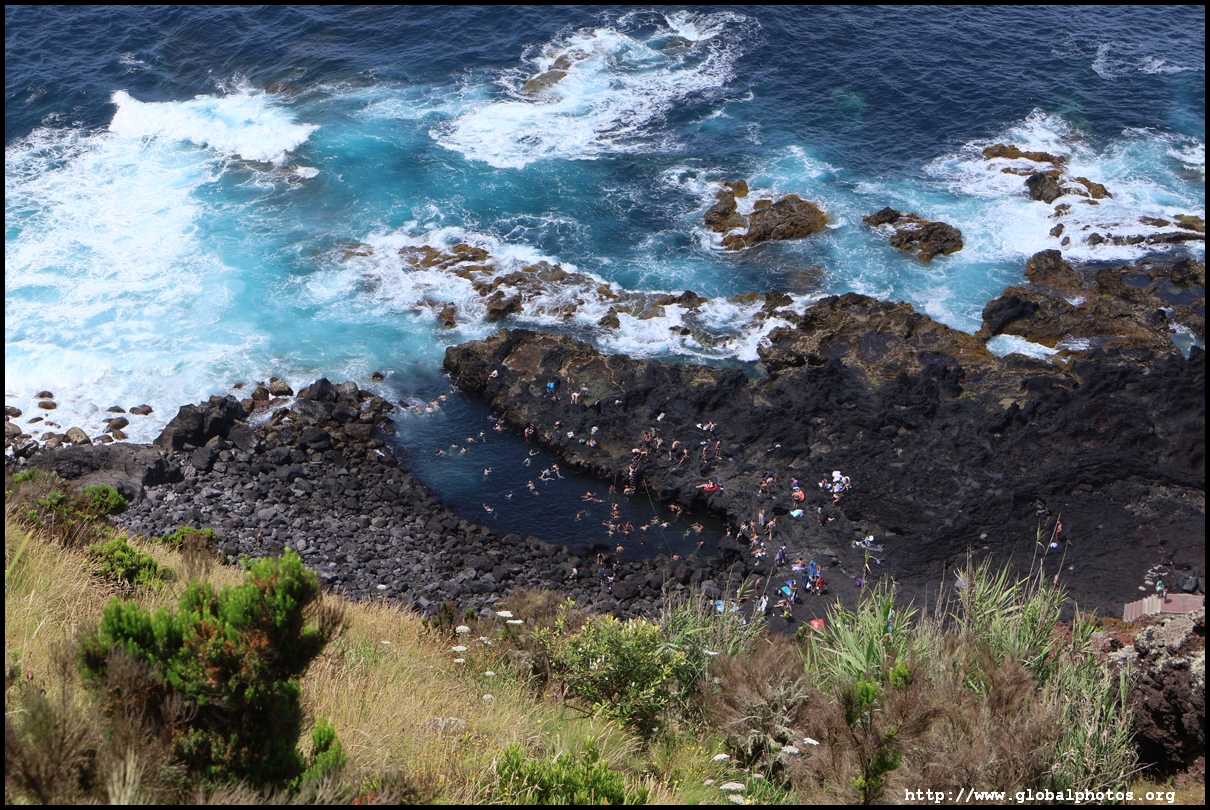 Another 10 minutes' drive away from Miradouro da Ponta do Escalvado is the Miradouro da Ilha Sabrina, where we parked and walked down the steep hill to the Piscina Natural da Ponta da Ferraria, a natural bathing pool where the thermal spring mixes with salt water from the sea, creating a warm and comfortable environment for a soak. Depending on the tide level, the water temperature will fluctuate throughout the day.