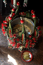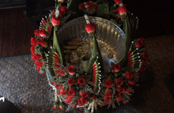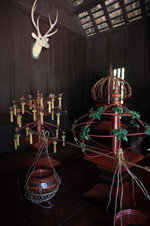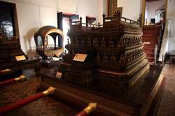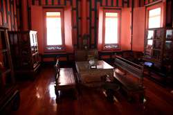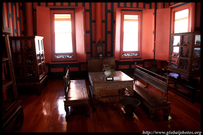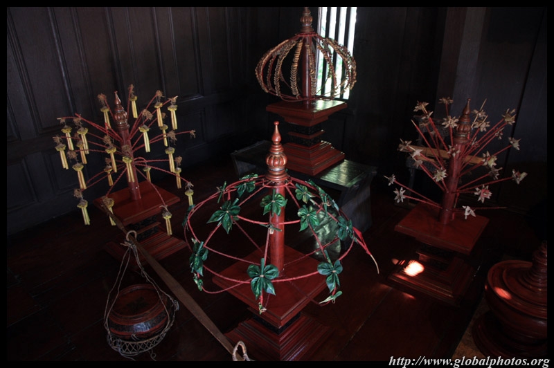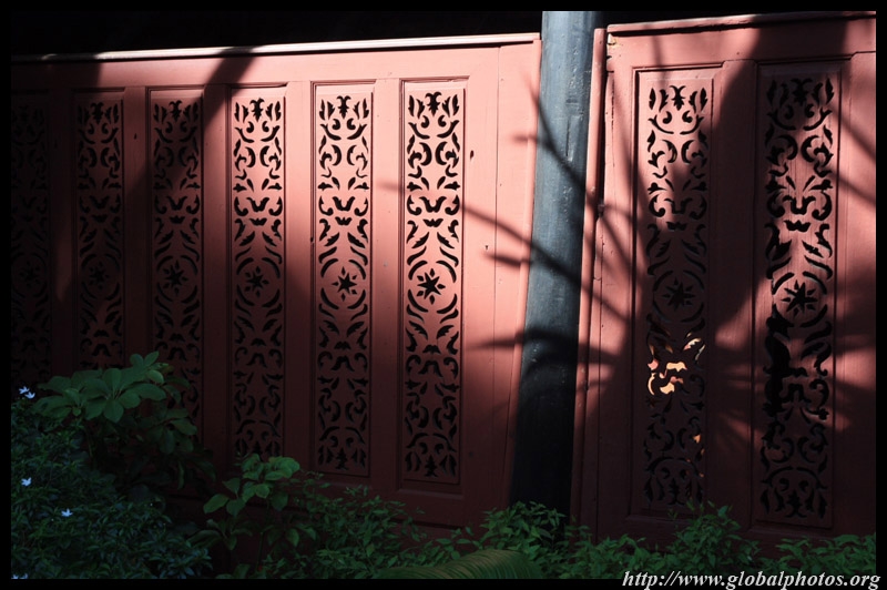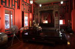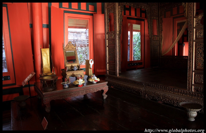 The residence is a combination of 6 teak houses with some modifications over the years. For example, the drawing room wall was reversed so the carvings would face inside.