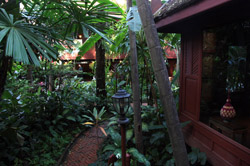 Jim Thompson's House is a Thai-style residence. Home of an American entrepreneur / spy who disappeared in 1967, the house can only be accessed by frequent tours and golf carts take visitors to and from the main road near the Skytrain station.