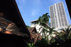 Ban Kamthieng was moved from Chiang Mai to Bangkok in the 1960's. The traditional Thai residence features exhibitions about rural life, which is a stark contrast to the skyscrapers and malls along the nearby Thanon Sukhumvit.