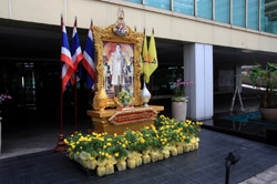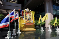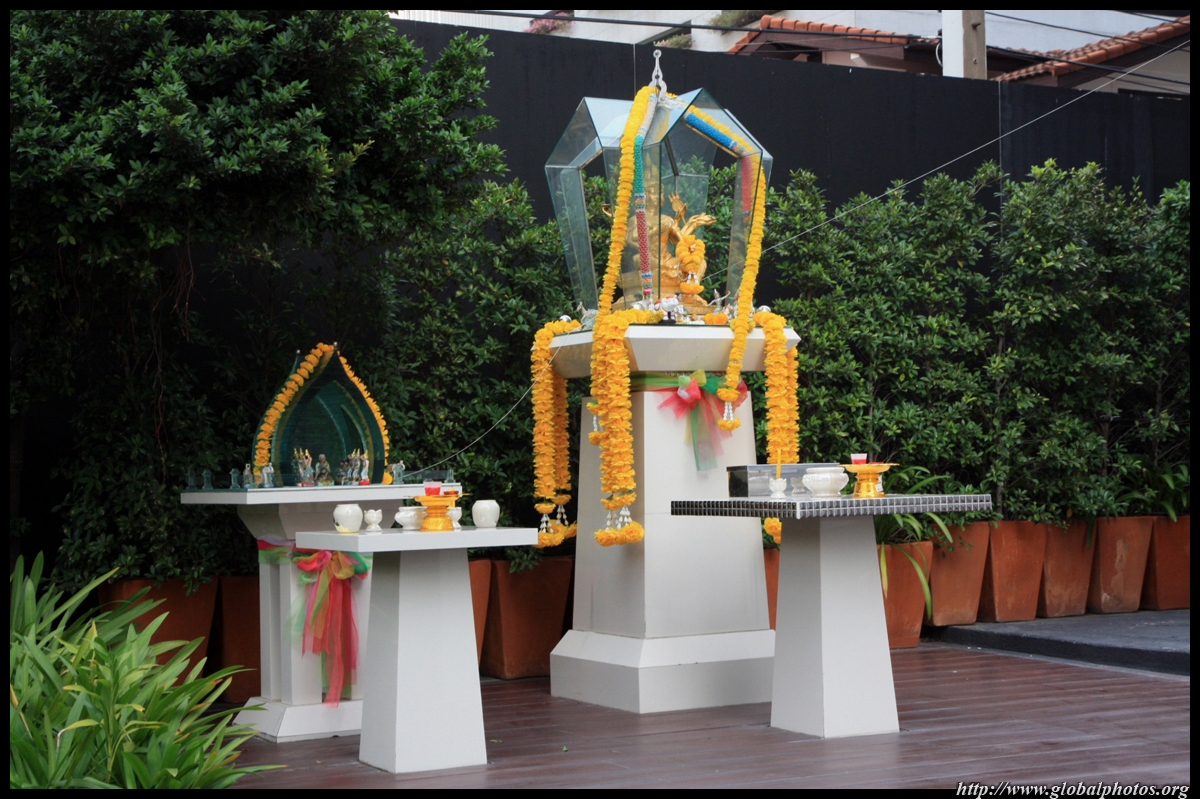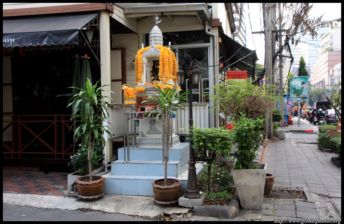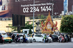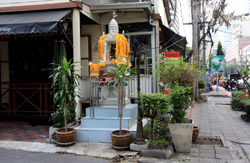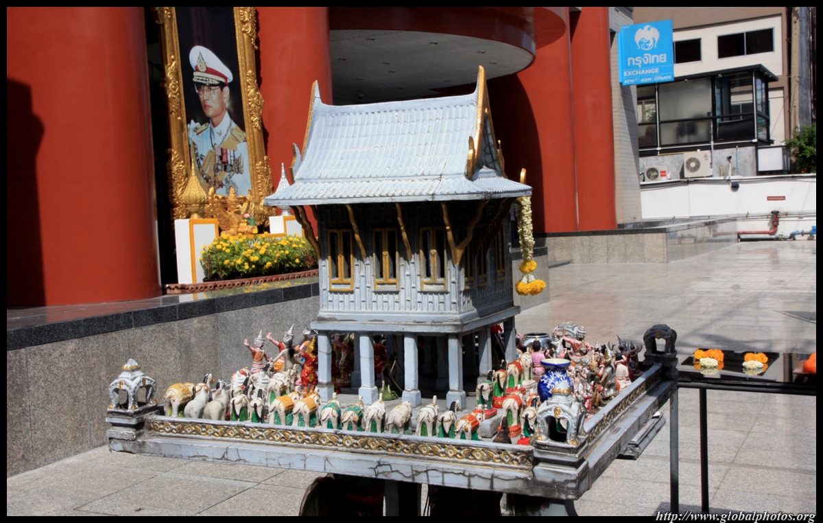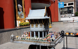 Many little shrines honouring the king sit next to modern office towers and in the most humble tiny open spaces.
