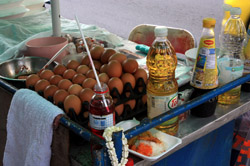 With only enough baht for transport and nothing else, Makkasan was the furthest I could go from the airport during my brief stopover en route to Europe. This is not a touristy part of town, but offers interesting street scenes portraying Bangkok's organized chaos.