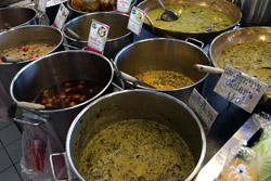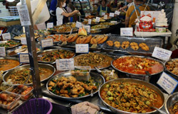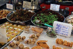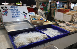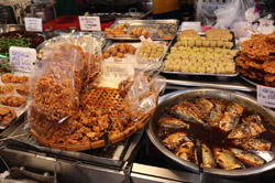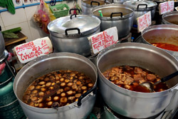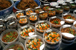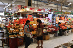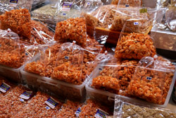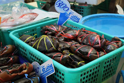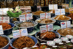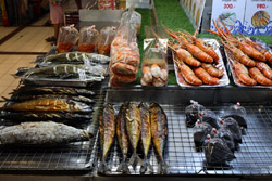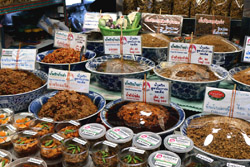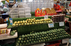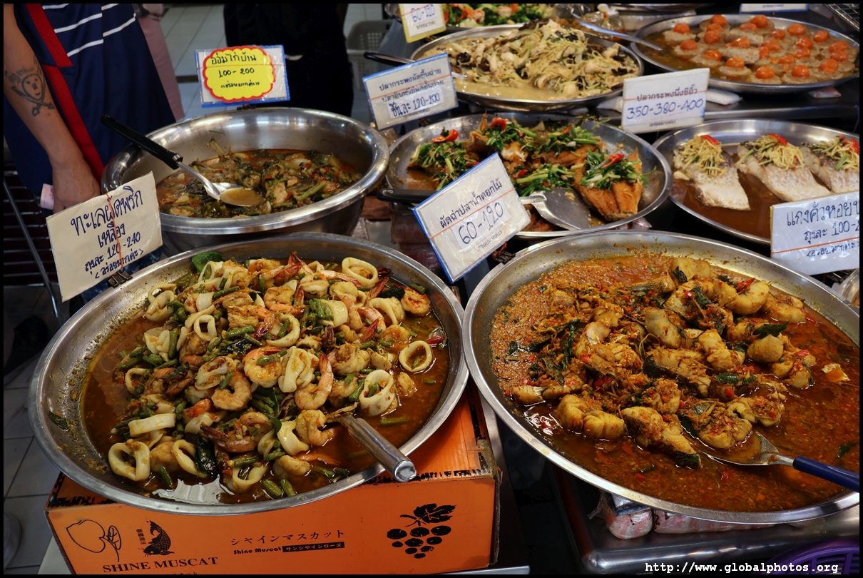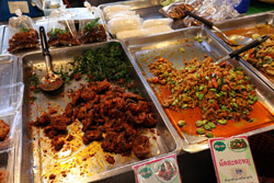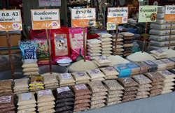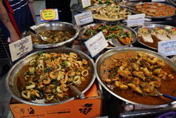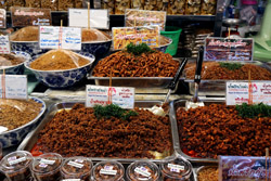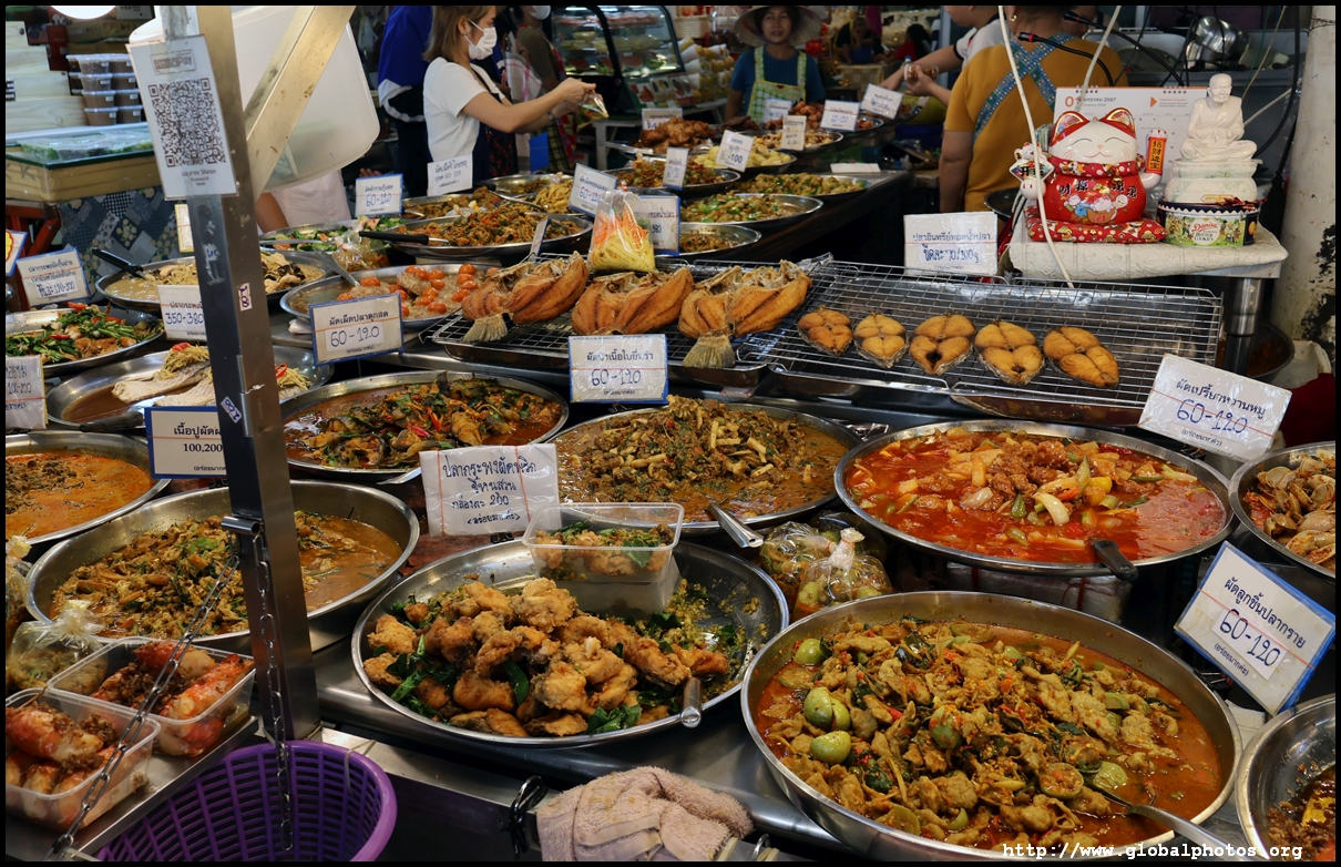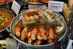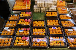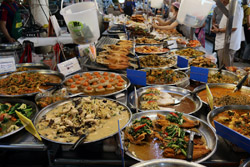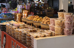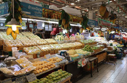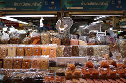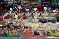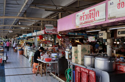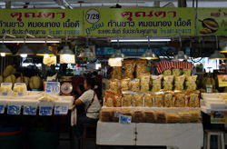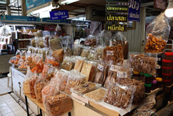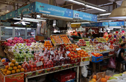 Just across from Chatuchak, Or Tor Kor is an indoor market selling both fresh ingredients and cooked products in a more rustic setting. Operated by the Marketing Organization for Farmers, a state firm, it showcases how a model market should look like with fresh food sold in a hygenic environment, but with an impression that it's high-end and expensive.