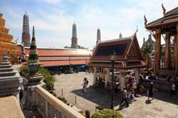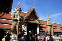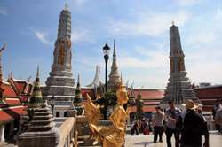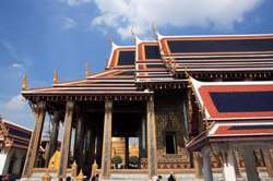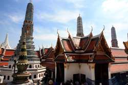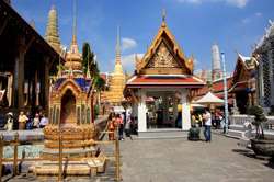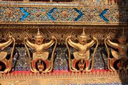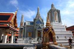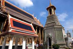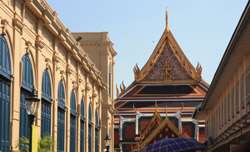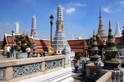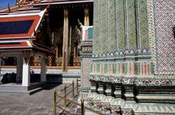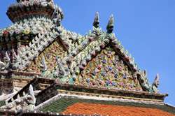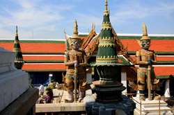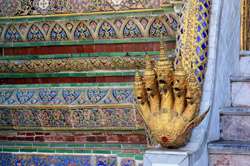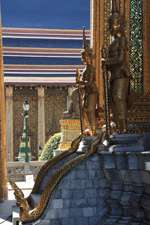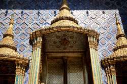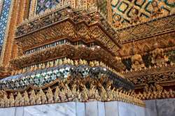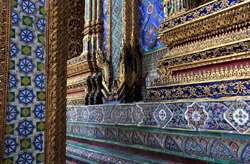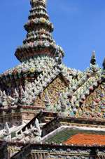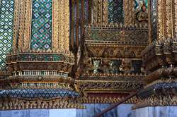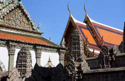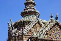Much of the spectacular architecture is actually in Wat Phra Kaew, the Emerald Buddha temple, occupying the northeast quadrant of the Grand Palace grounds.