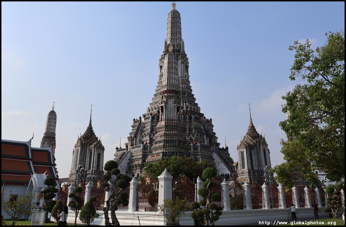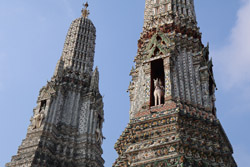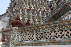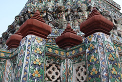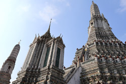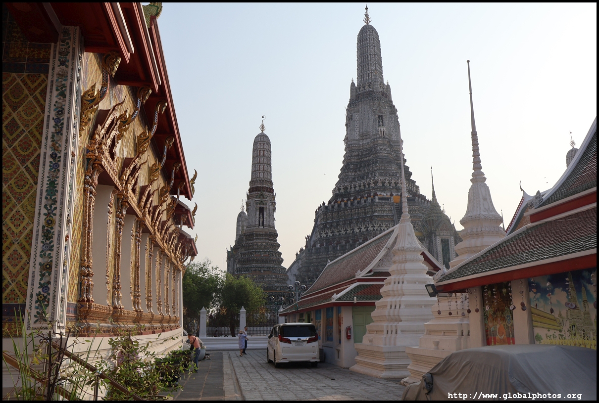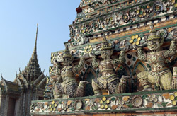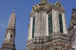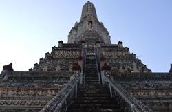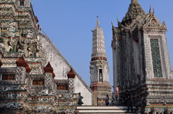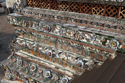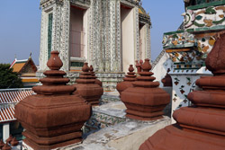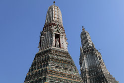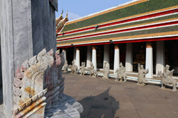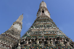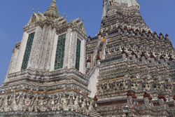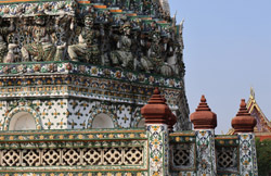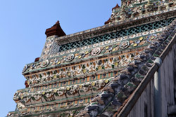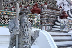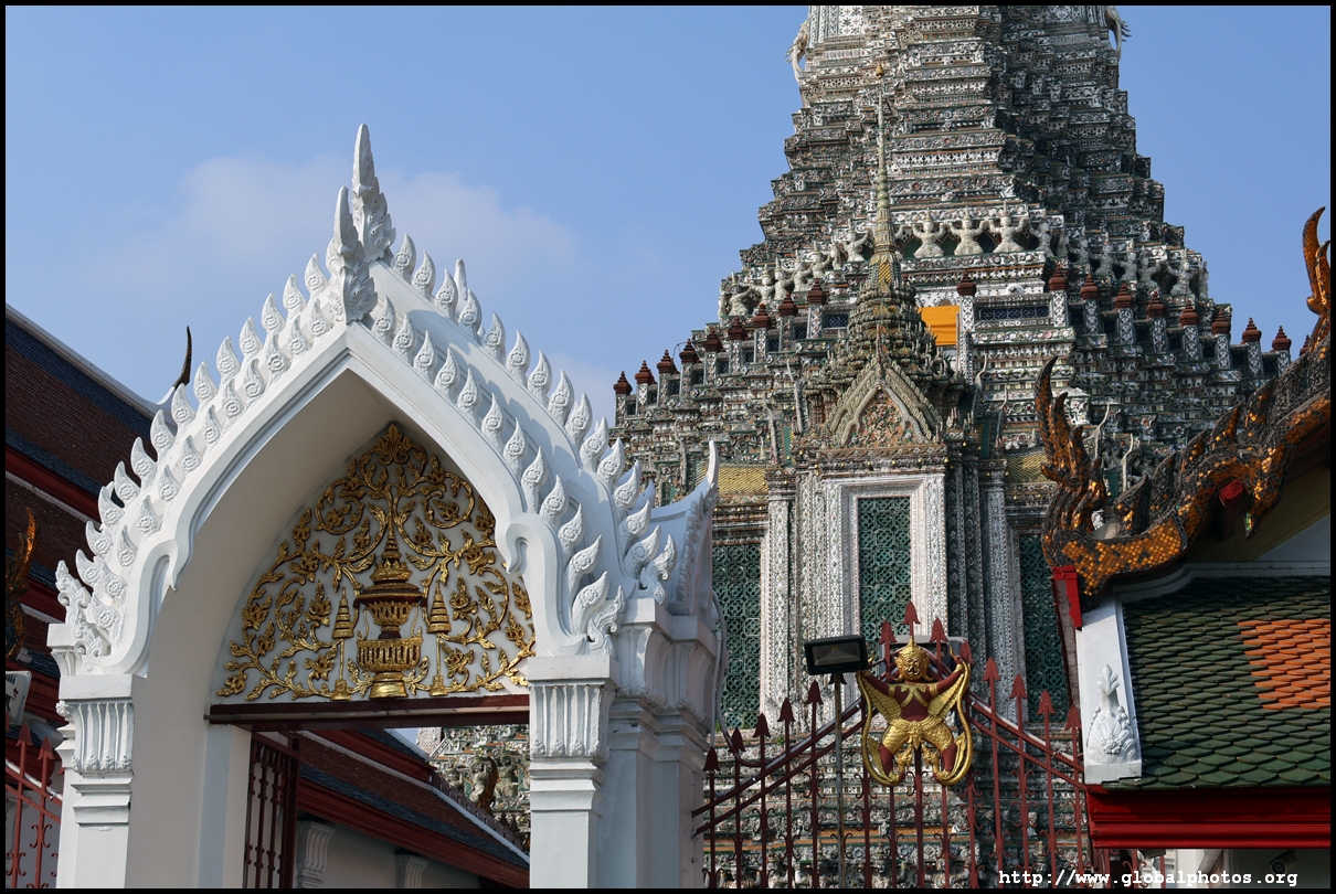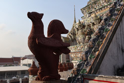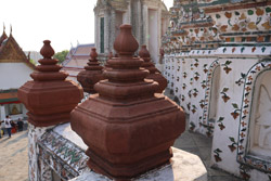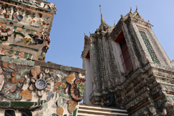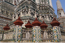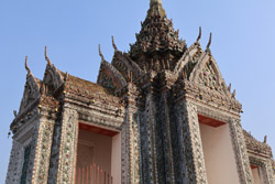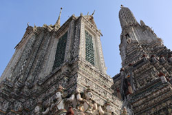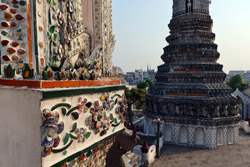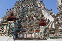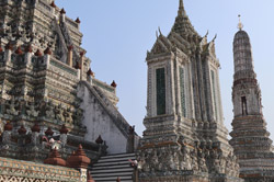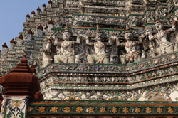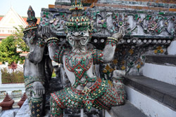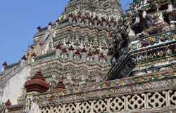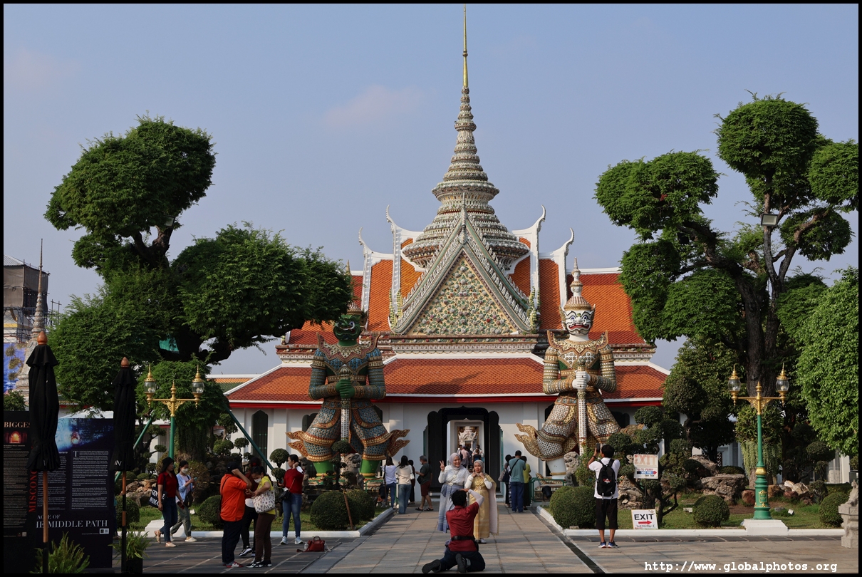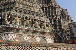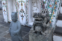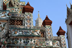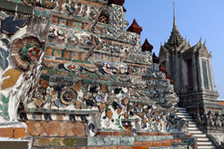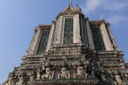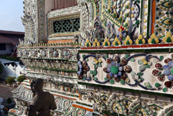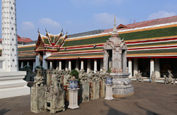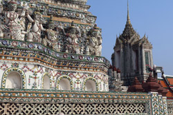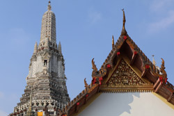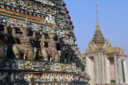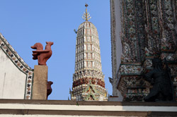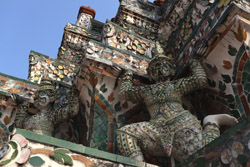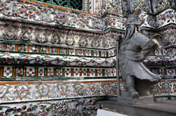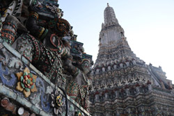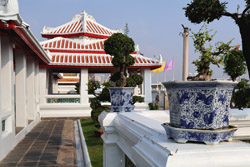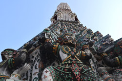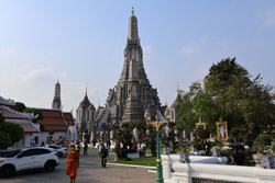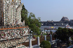 While many tourists came by river boat, I chose to take the MRT instead, getting off at Itsaraphap and walking a long way to the temple's back side, where there was no line for a ticket shortly after it opened. Tourists arriving by boat would take them to the other side of the temple to its river-facing entrance.