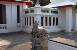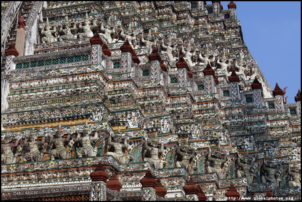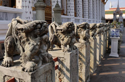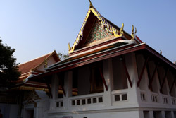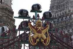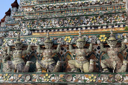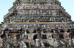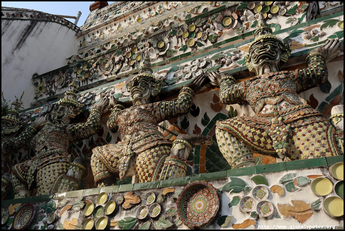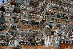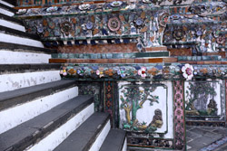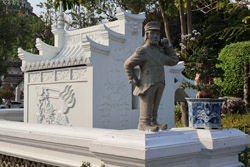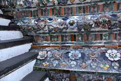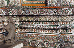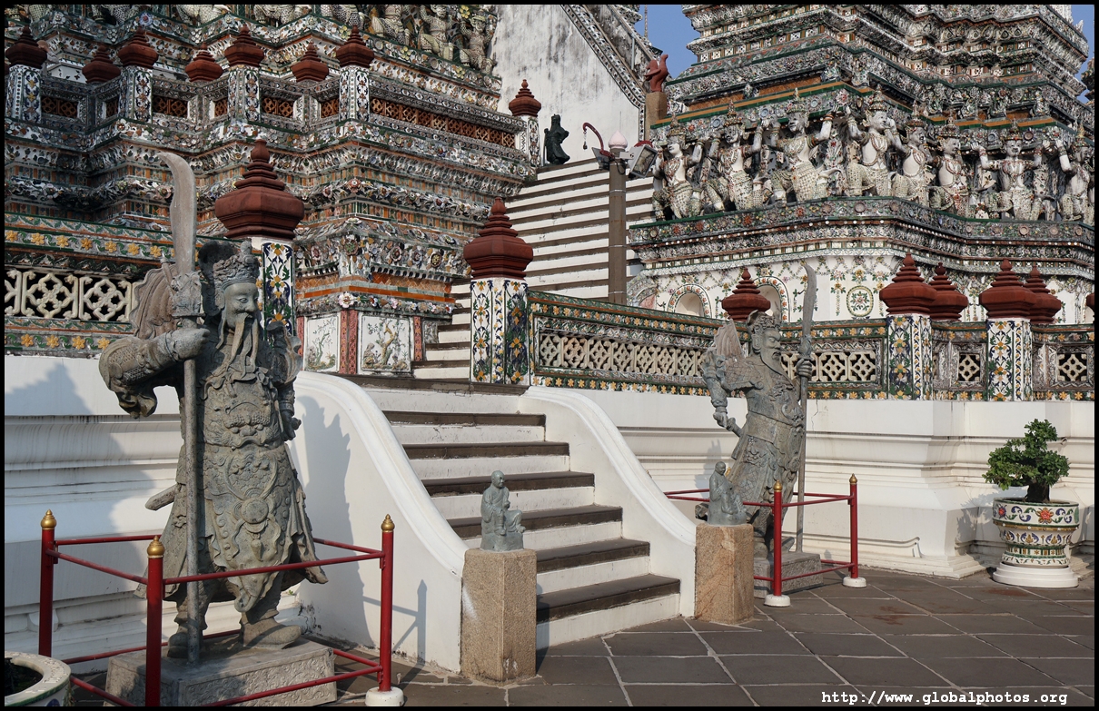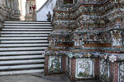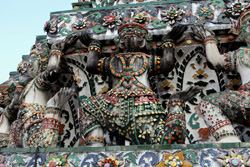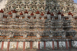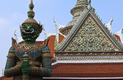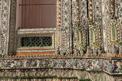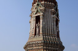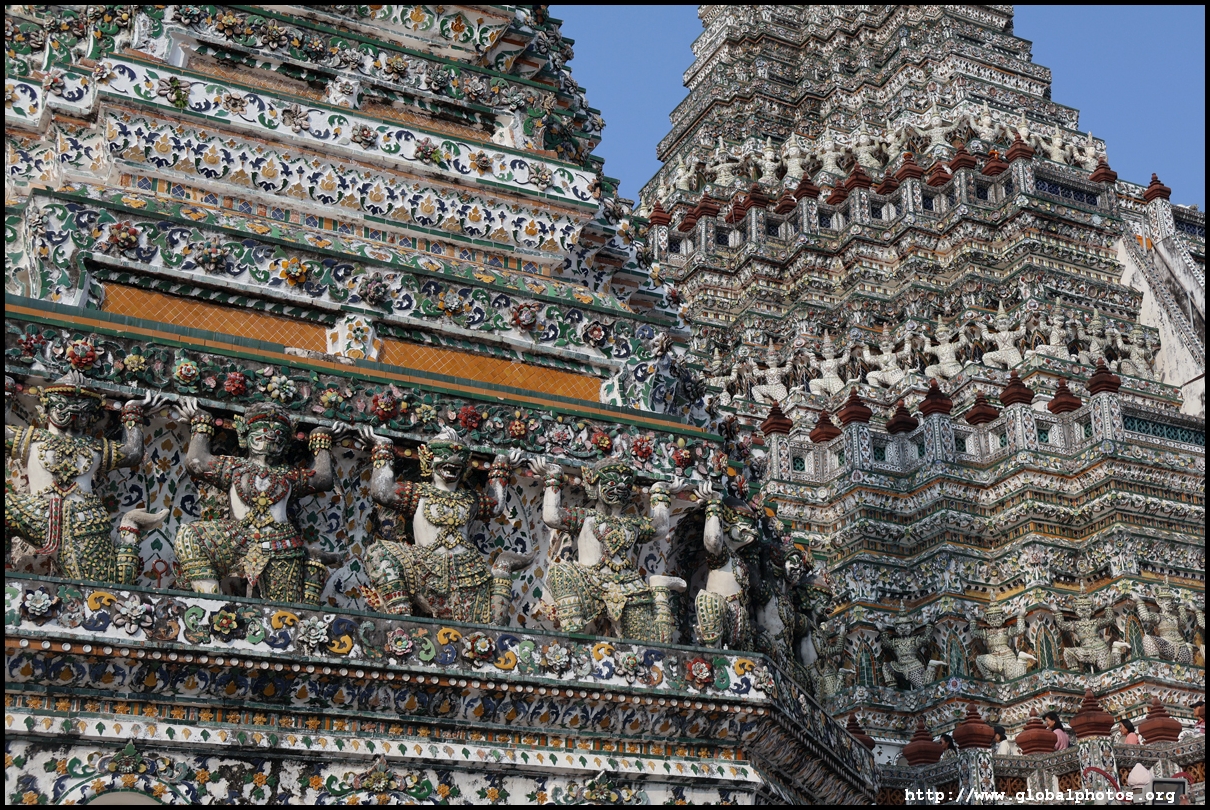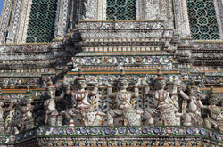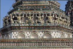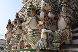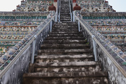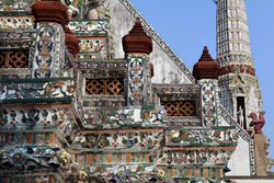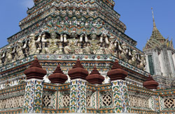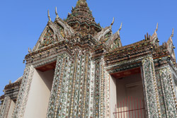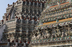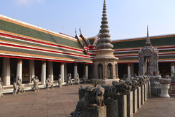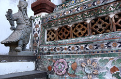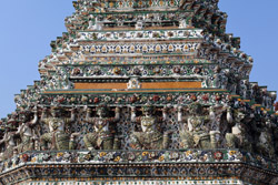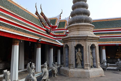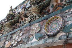 While many tourists came by river boat, I chose to take the MRT instead, getting off at Itsaraphap and walking a long way to the temple's back side, where there was no line for a ticket shortly after it opened. Tourists arriving by boat would take them to the other side of the temple to its river-facing entrance.