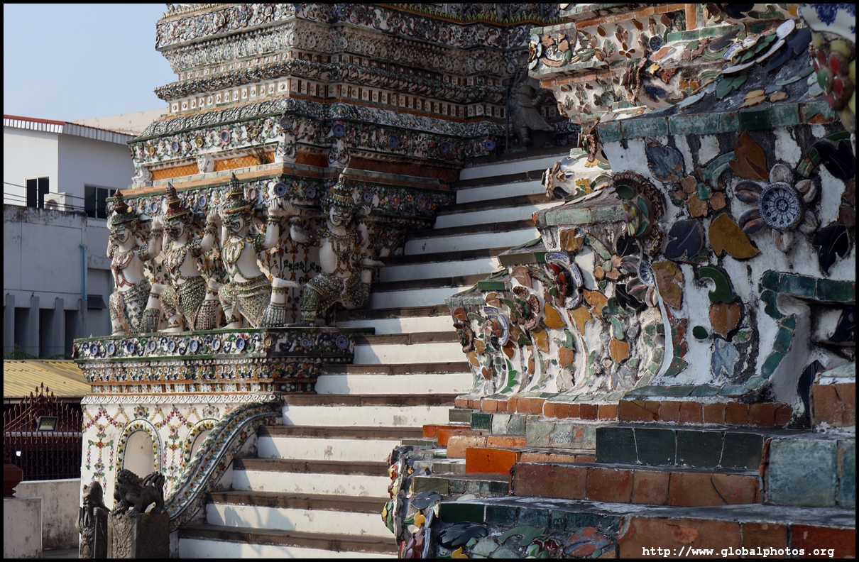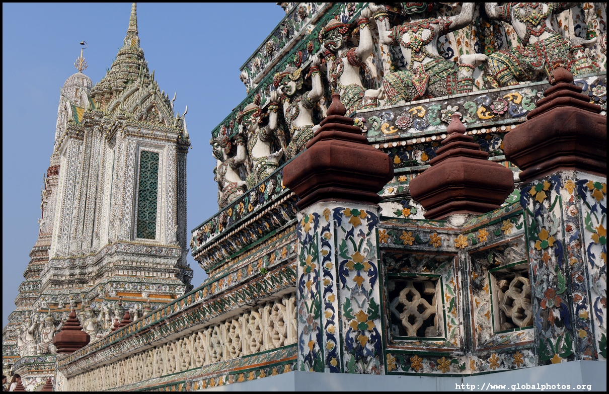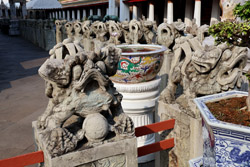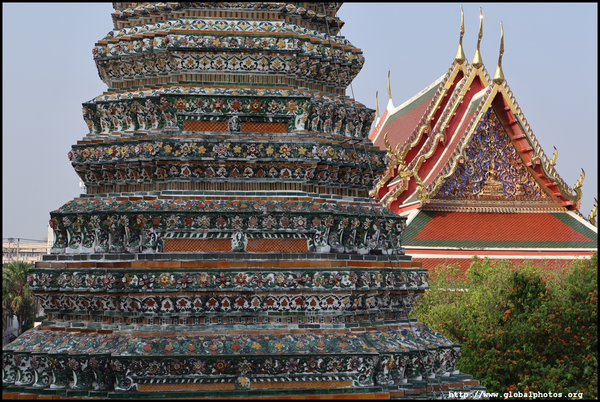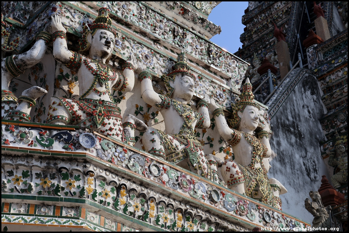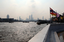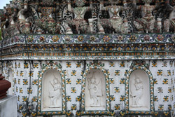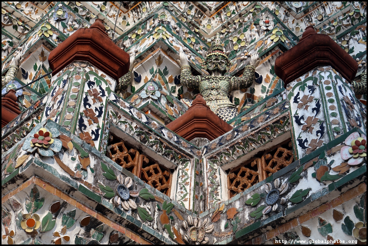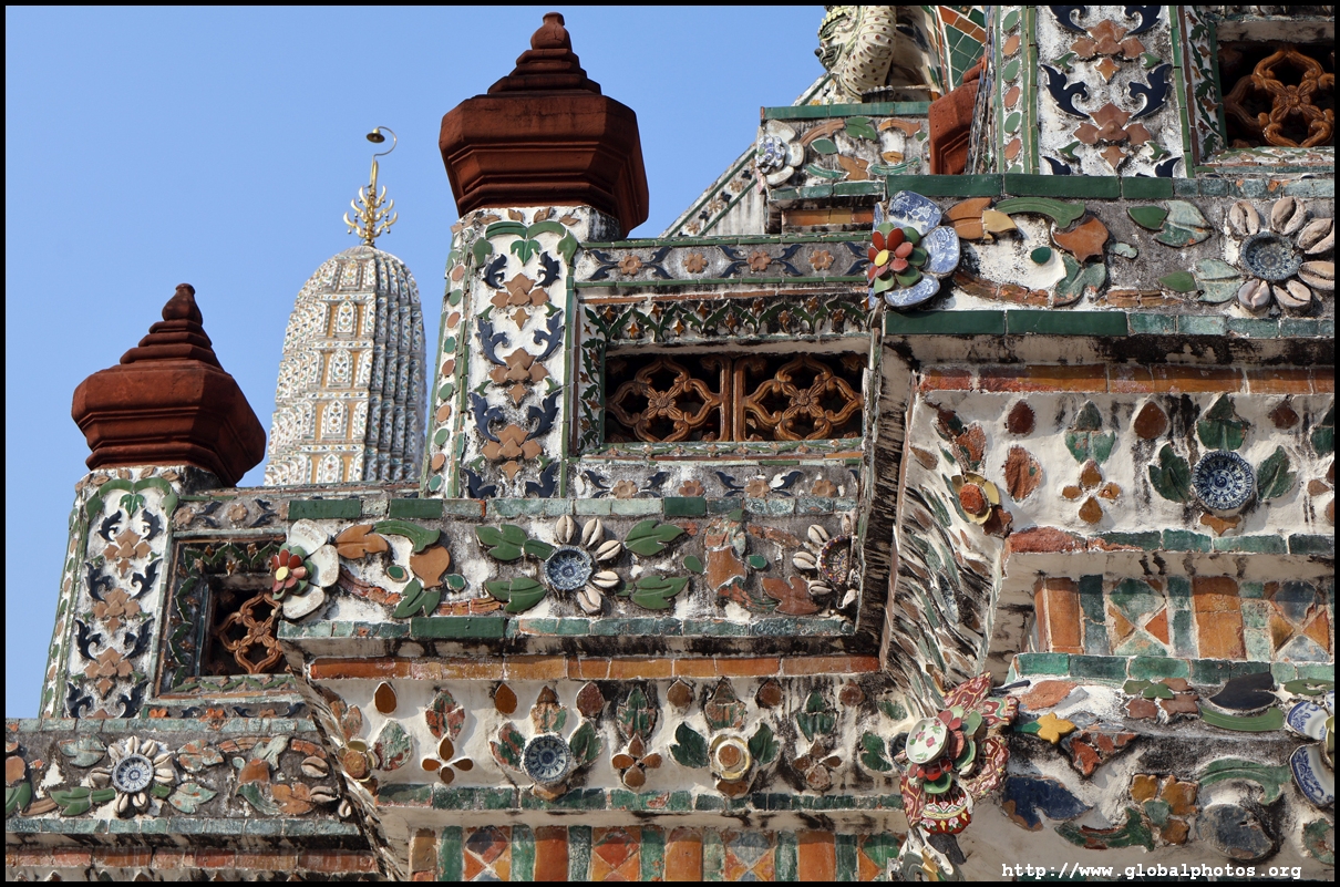 While many tourists came by river boat, I chose to take the MRT instead, getting off at Itsaraphap and walking a long way to the temple's back side, where there was no line for a ticket shortly after it opened. Tourists arriving by boat would take them to the other side of the temple to its river-facing entrance.