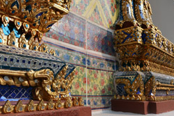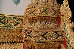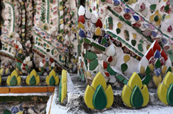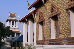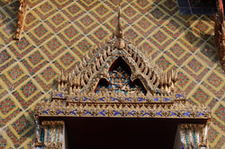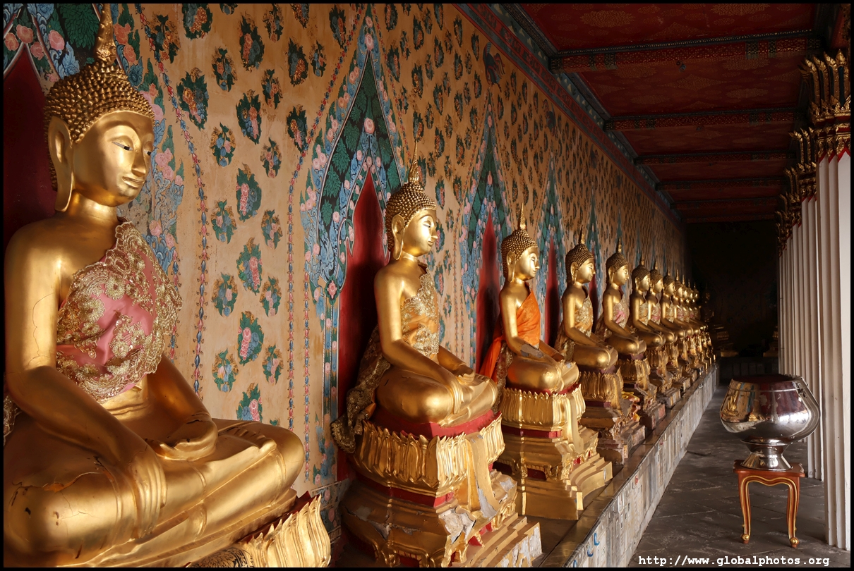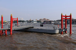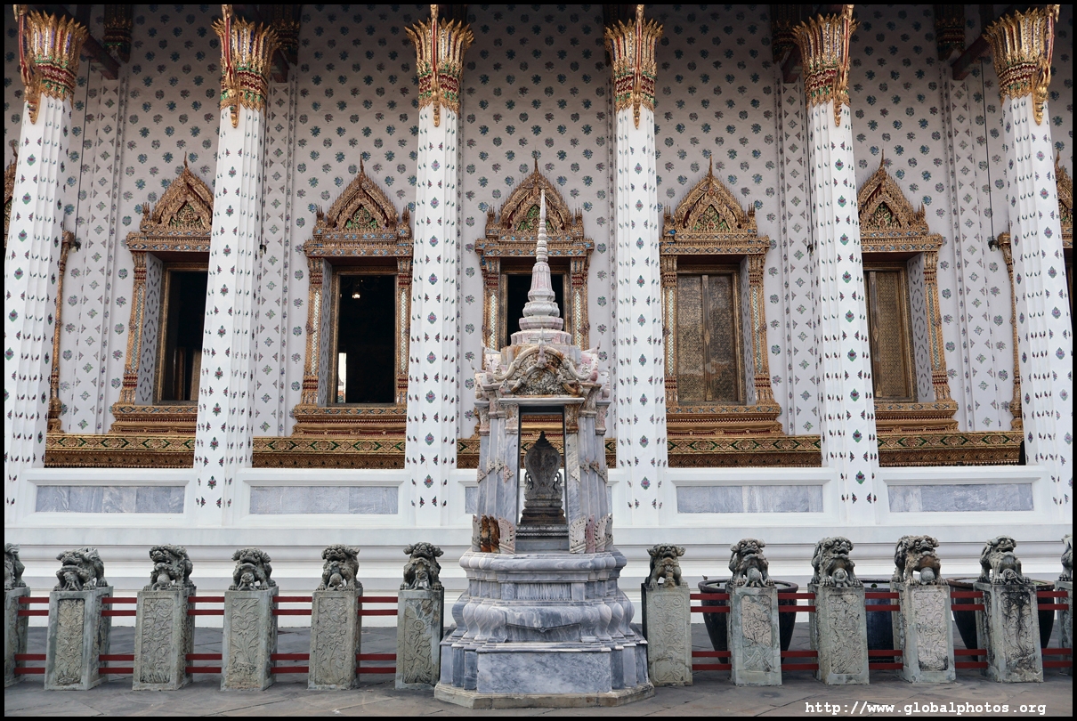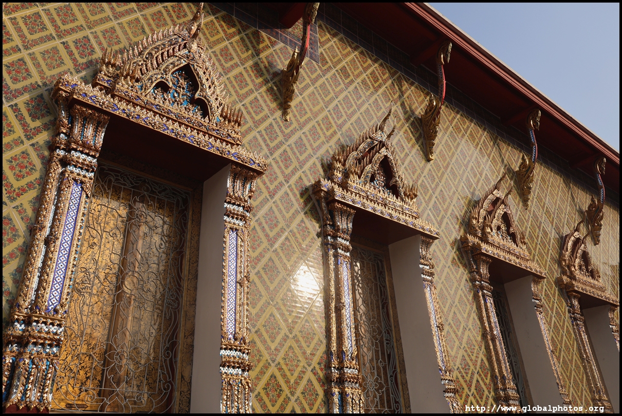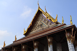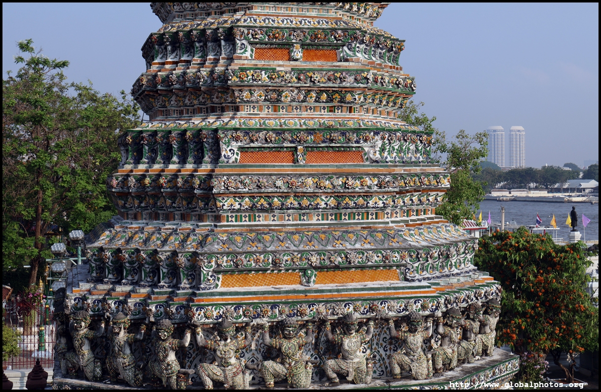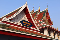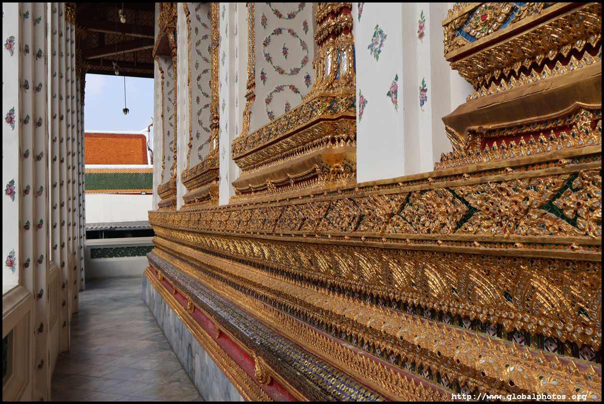 While many tourists came by river boat, I chose to take the MRT instead, getting off at Itsaraphap and walking a long way to the temple's back side, where there was no line for a ticket shortly after it opened. Tourists arriving by boat would take them to the other side of the temple to its river-facing entrance.