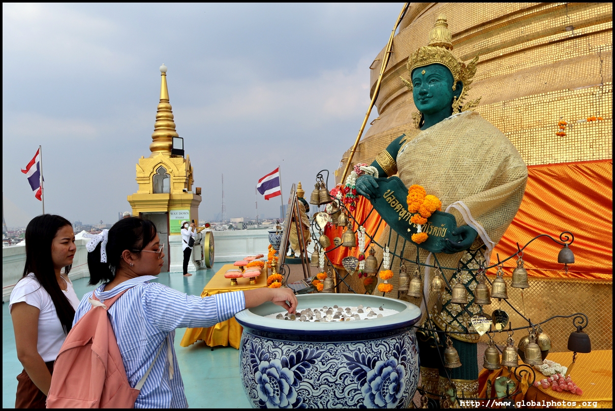 After lunch at Thipsamai, a Michelin-recommended pad thai restaurant (Jay Fai is next door), I made a short walk across the river to an unexpected hill in Bangkok. Bangkok is a fairly flat city, but this location is an interesting exception. Wat Saket was previously just outside the city walls and was the dumpling ground for plague victims too poor to afford a funeral. Next to it, King Rama III wanted a chedi to be built on a hill (Golden Mount) in the 19th century by recycling materials from the former capital of Ayutthaya. It collapsed as the soil was too soft but rebuilt during Rama V's reign, with Buddha relics given by the Viceroy of India.Climb up the 320 steps for a panoramic view of the city from almost 80m above.