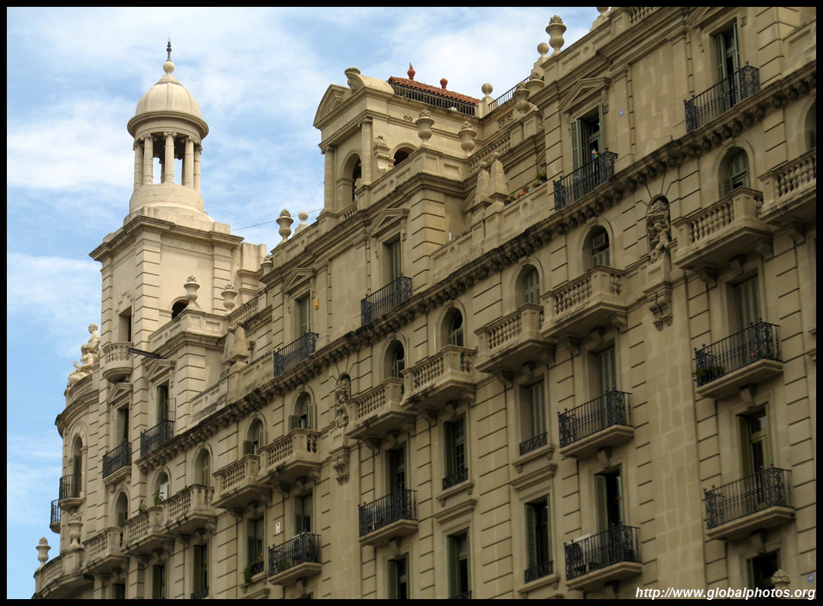 Avinguda Diagonal is a wide road with imposing architecture. While not symmetric, the buildings are generally uniform in height, enhancing the visual appeal looking down the street.