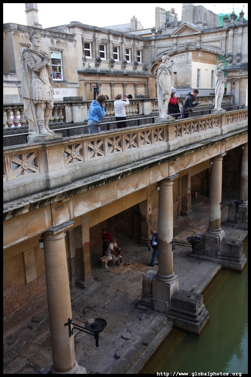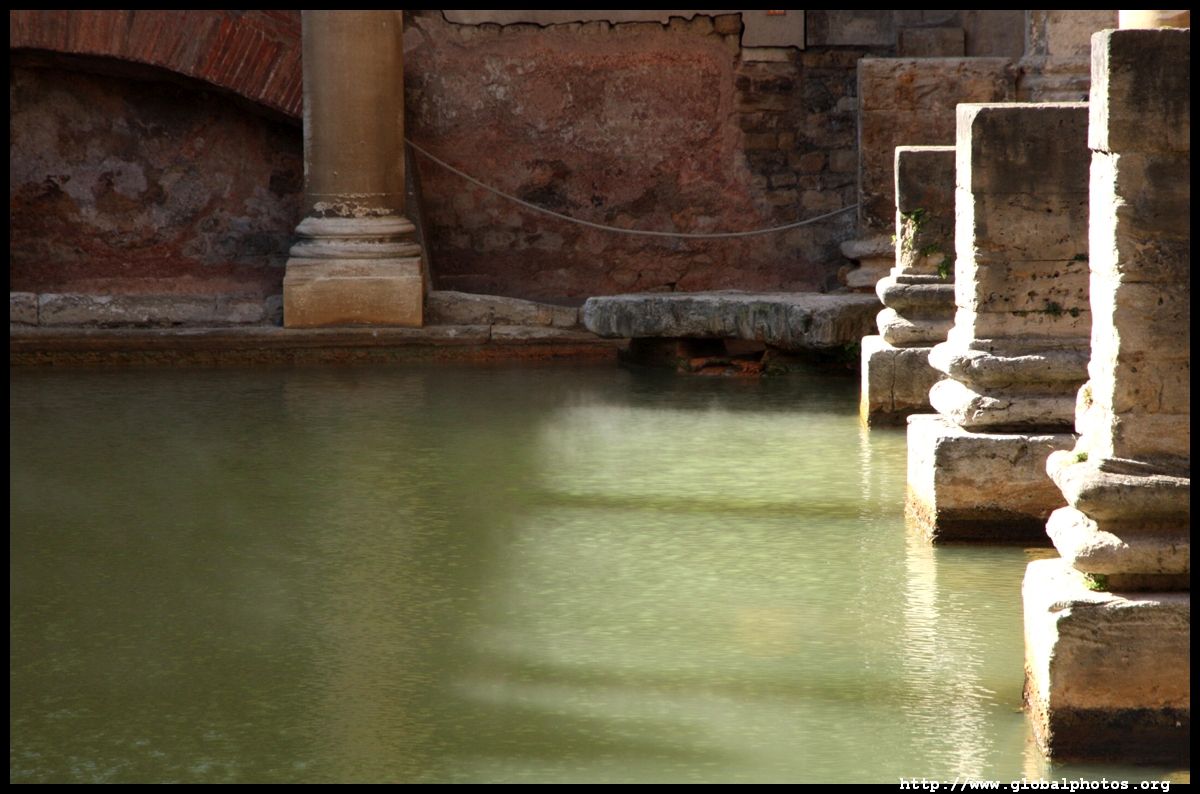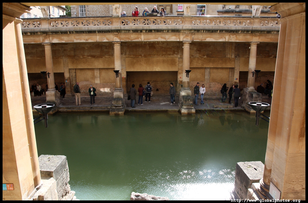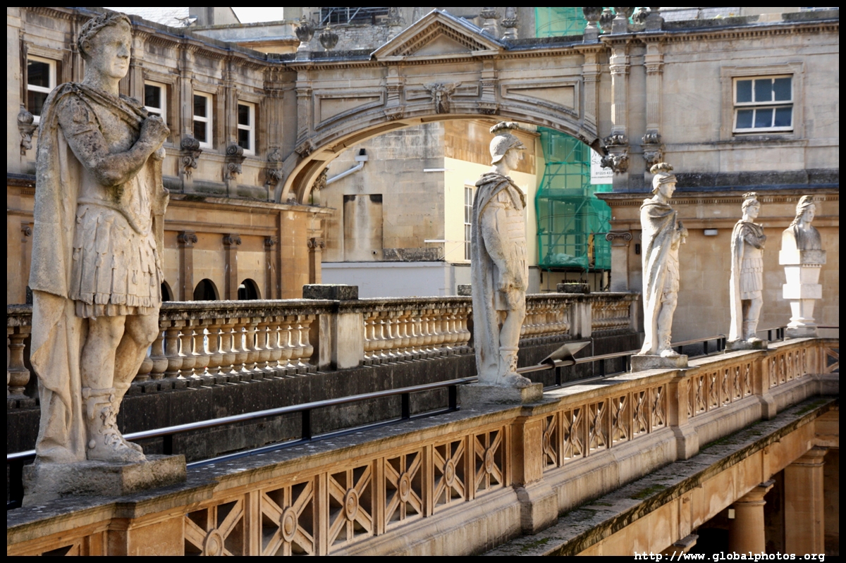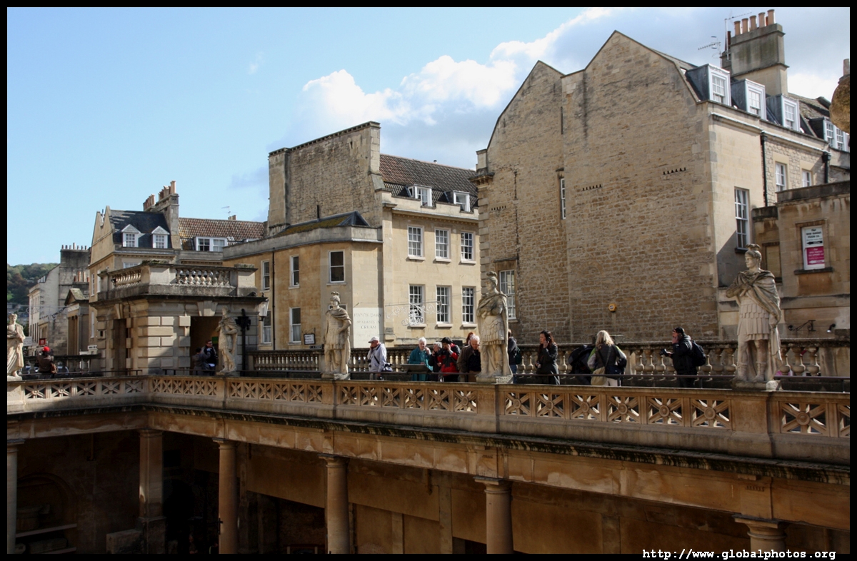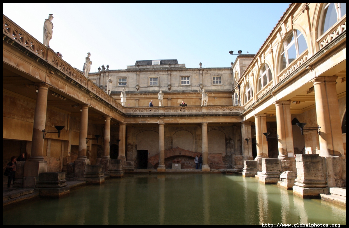 The Great Bath was originally covered but now is open to the elements with a good view of the Abbey. In the 19th century, pillars, terraces, and statues were added.