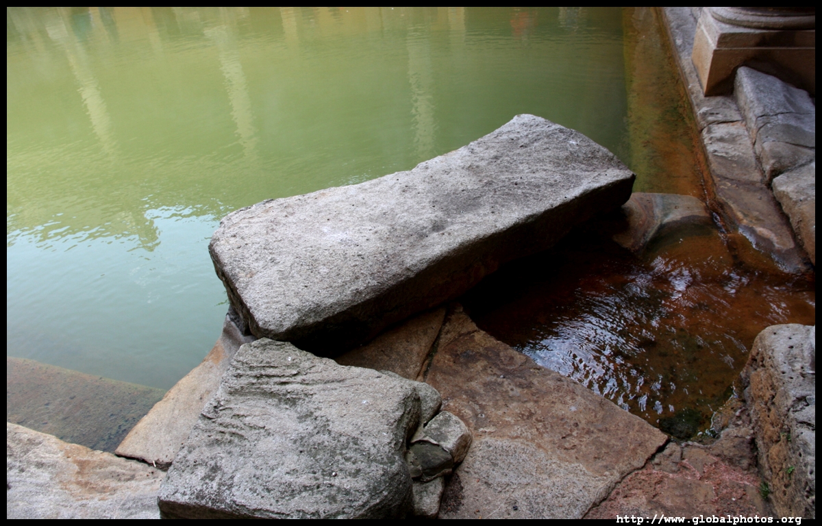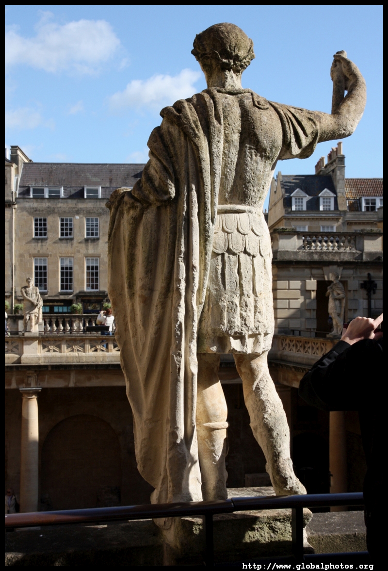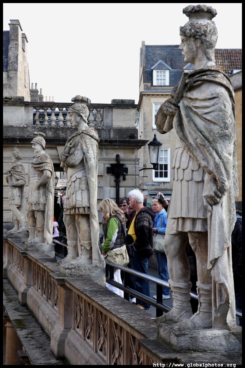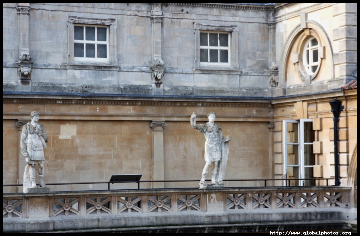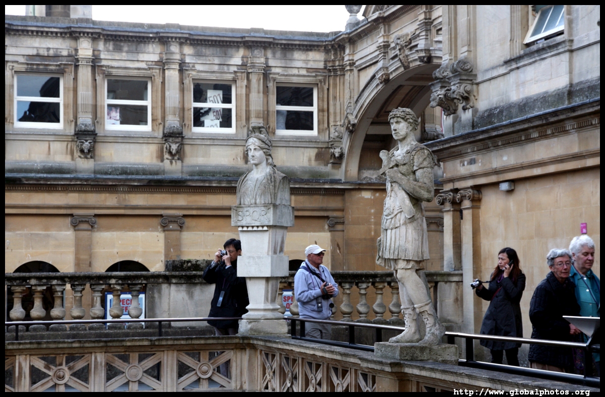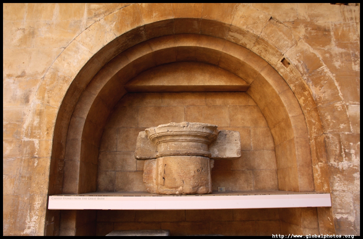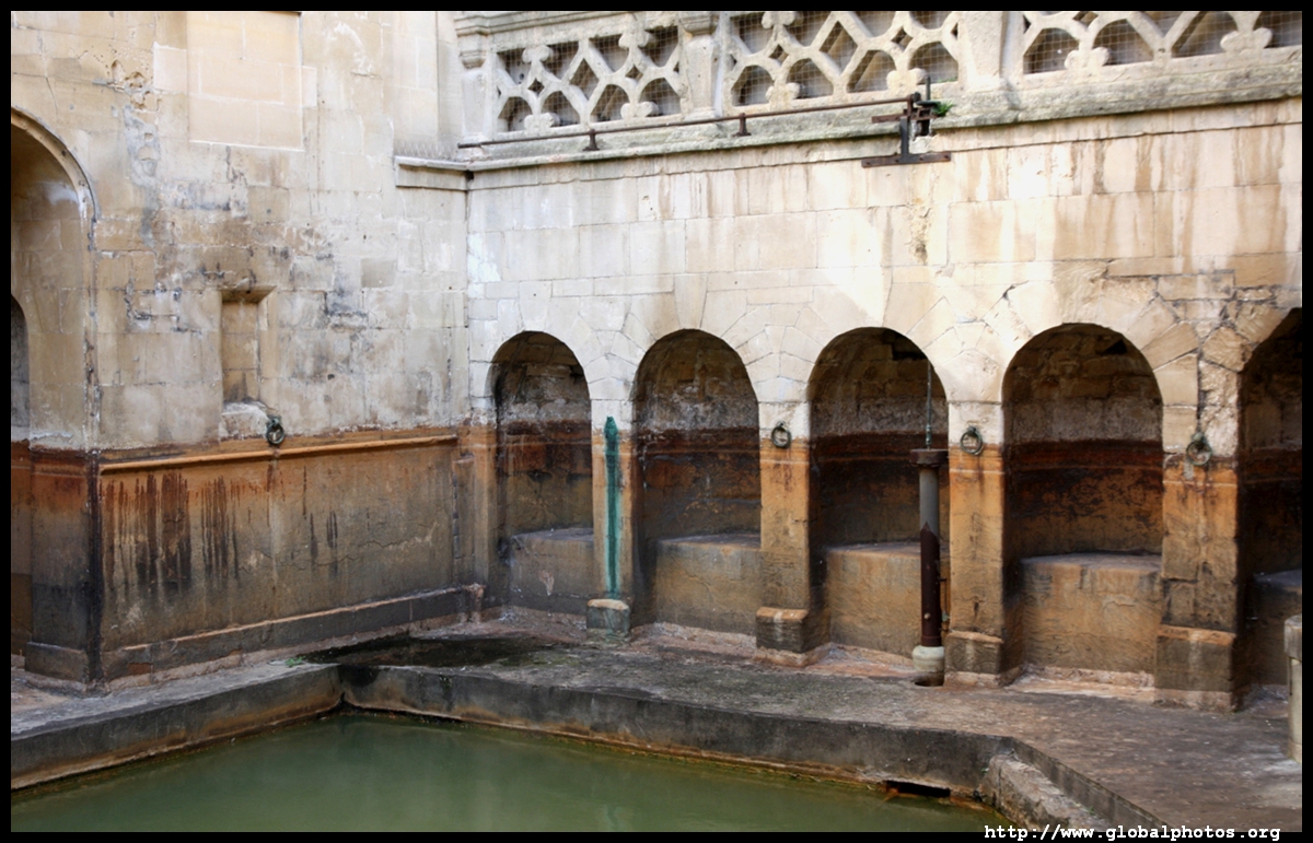 The Great Bath was originally covered but now is open to the elements with a good view of the Abbey. In the 19th century, pillars, terraces, and statues were added.