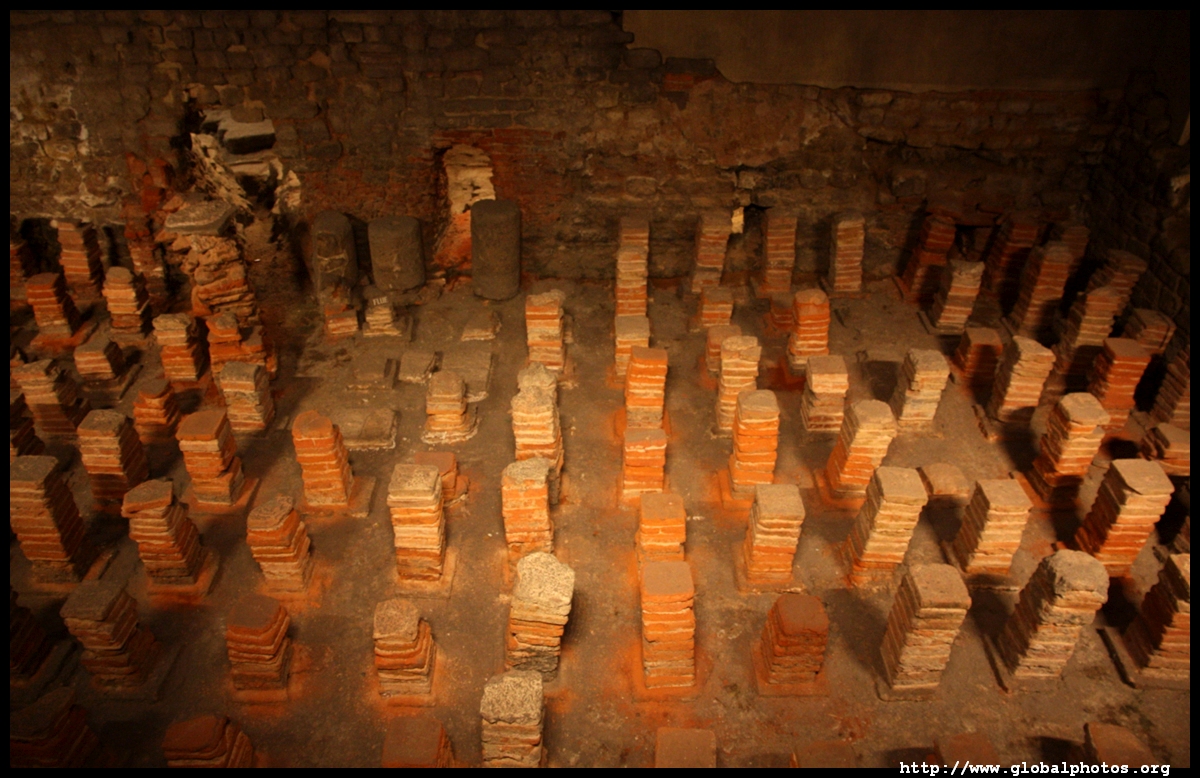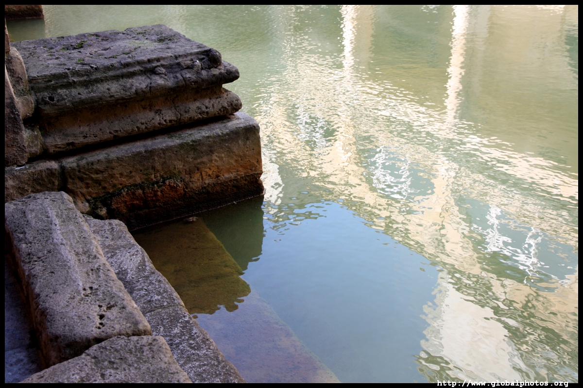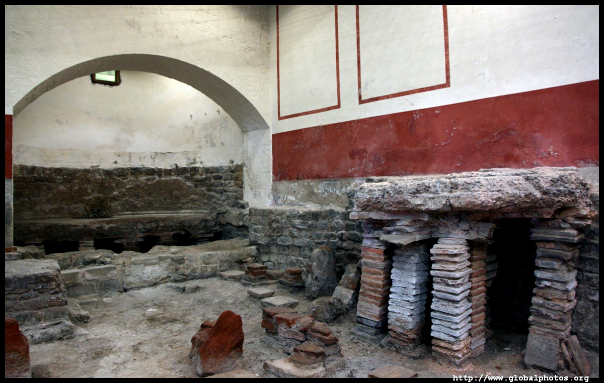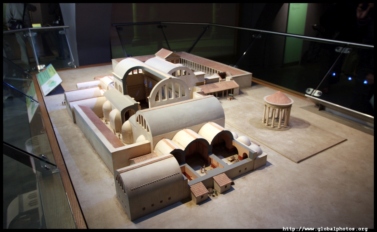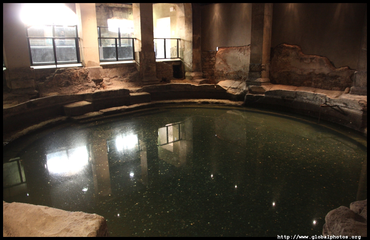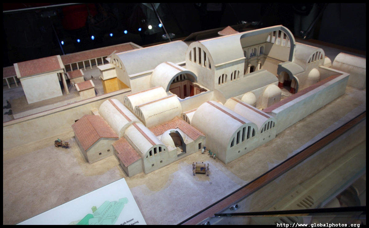 The Great Bath was originally covered but now is open to the elements with a good view of the Abbey. In the 19th century, pillars, terraces, and statues were added.