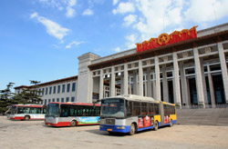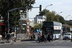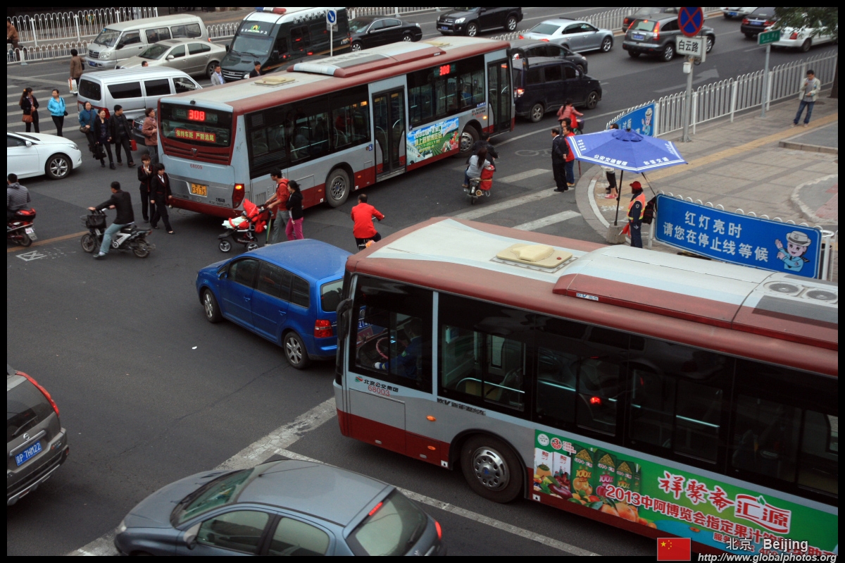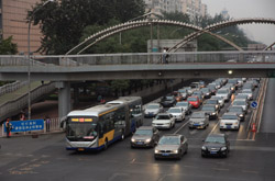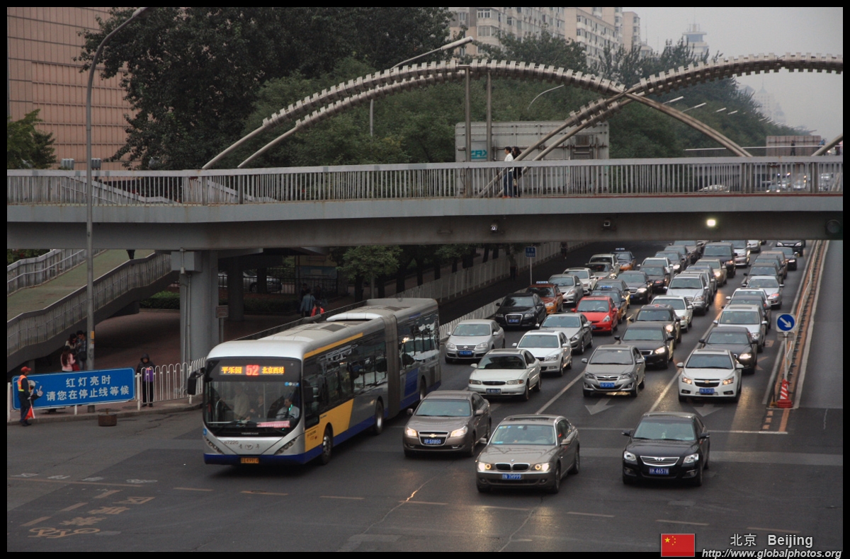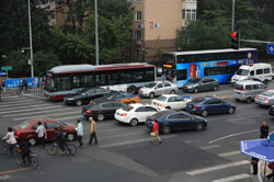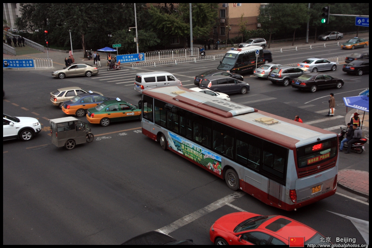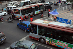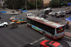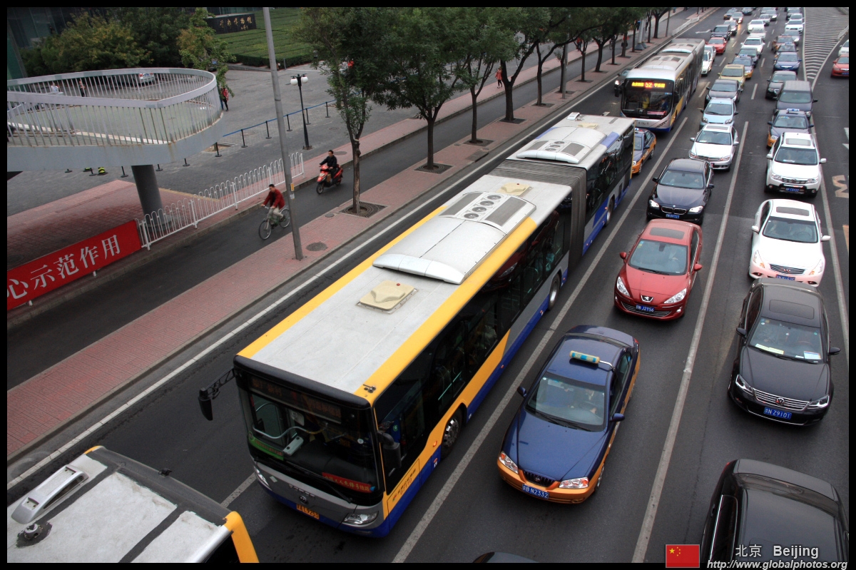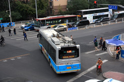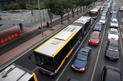 Although many new subway lines have opened, there are still many buses on the road braving traffic.