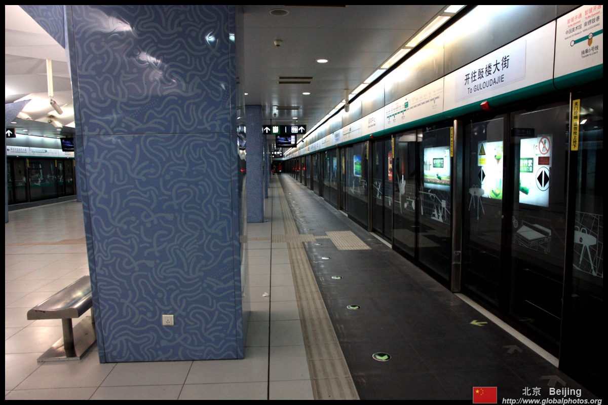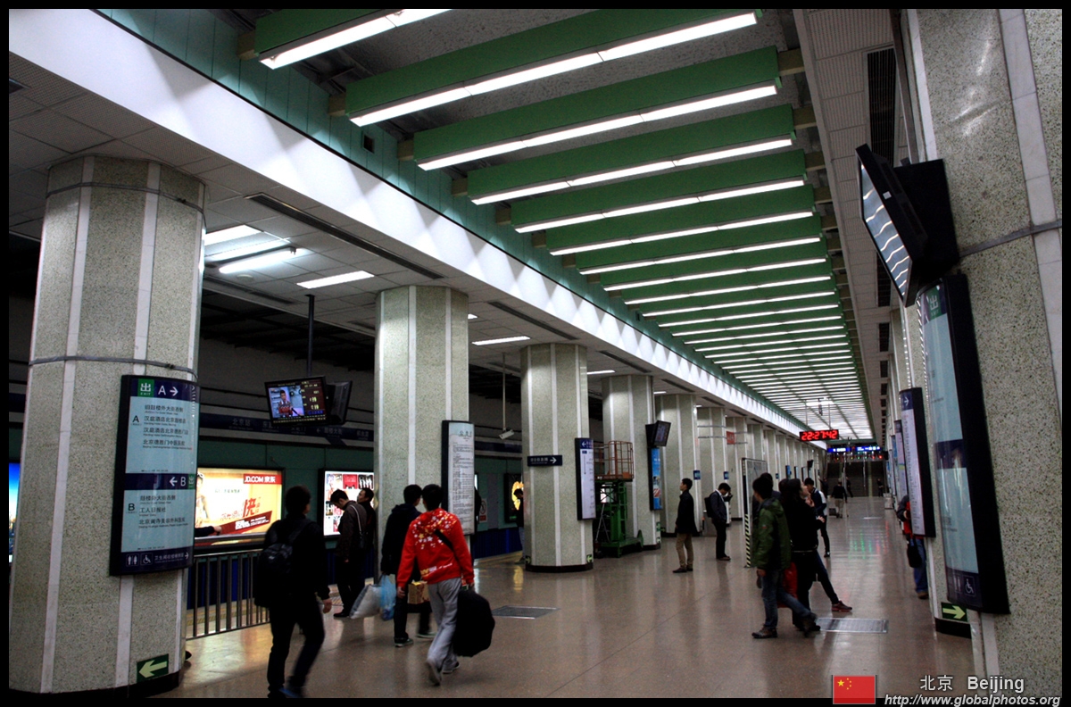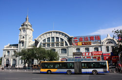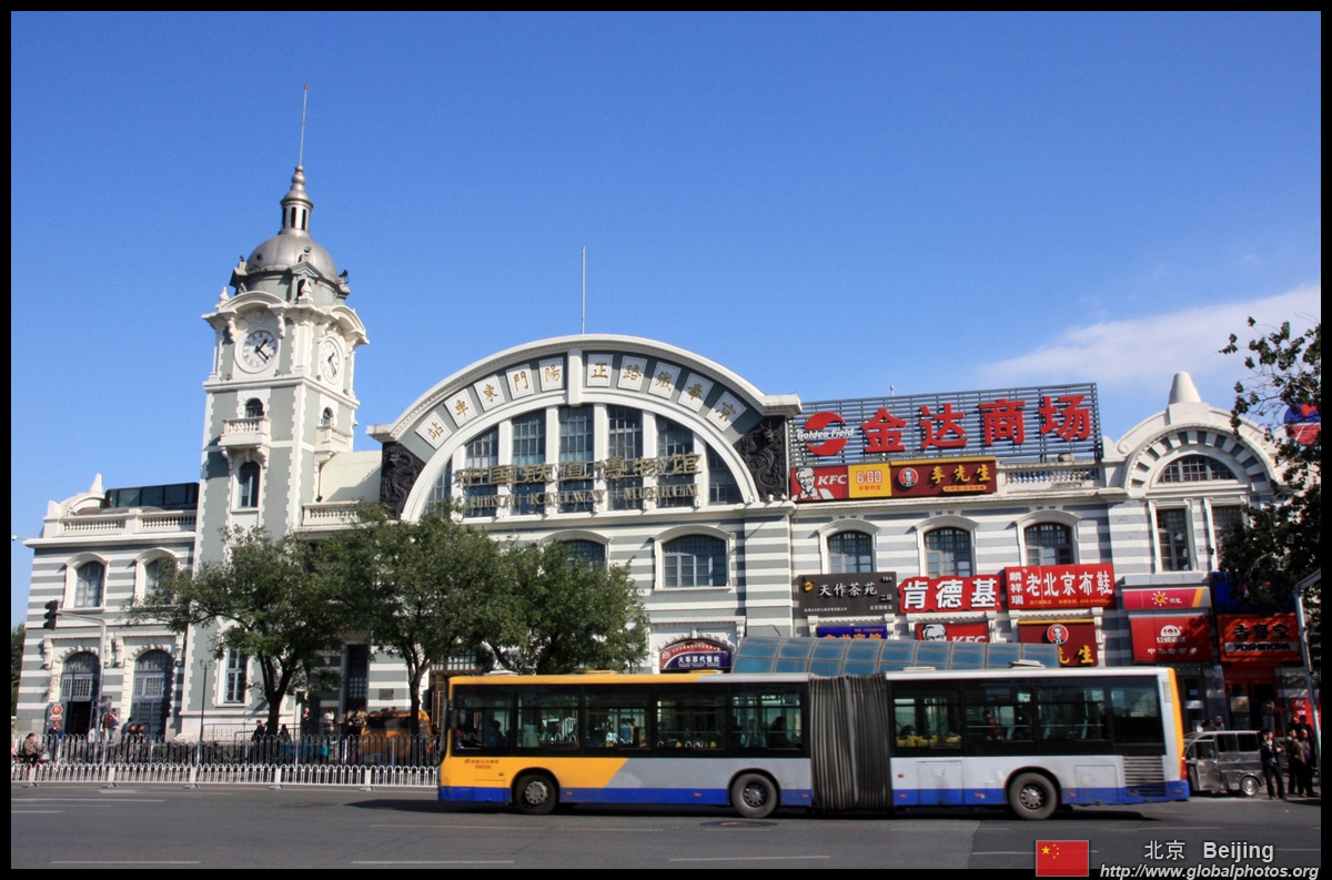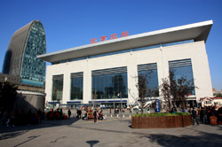 A bit further away at Beijing North station, an interesting set of triplets in green stand out against the modestly simple building.