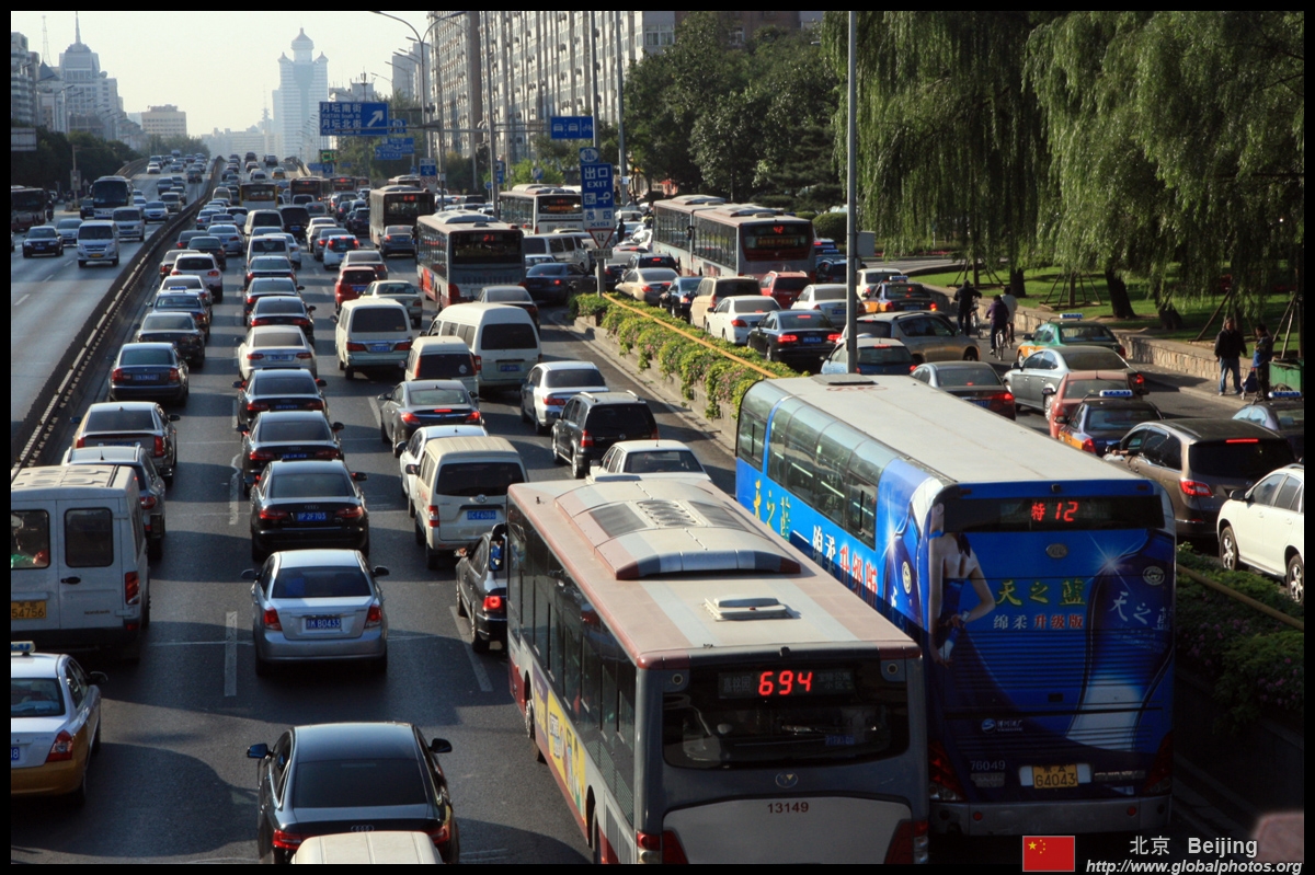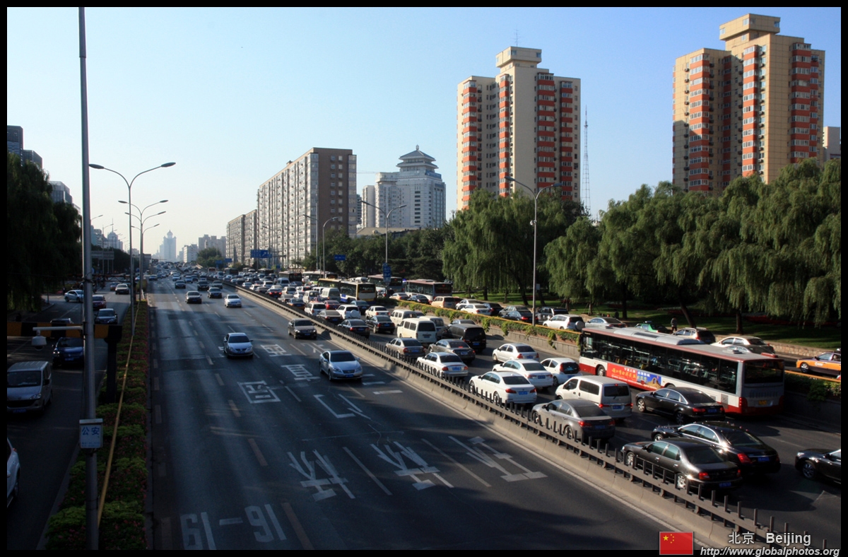 The 2nd ring road seems to be always congested. Beijing has sprawled out to a few more ring roads beyond.