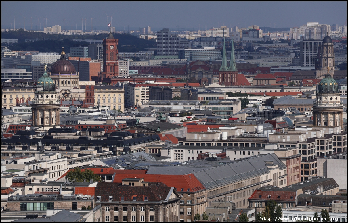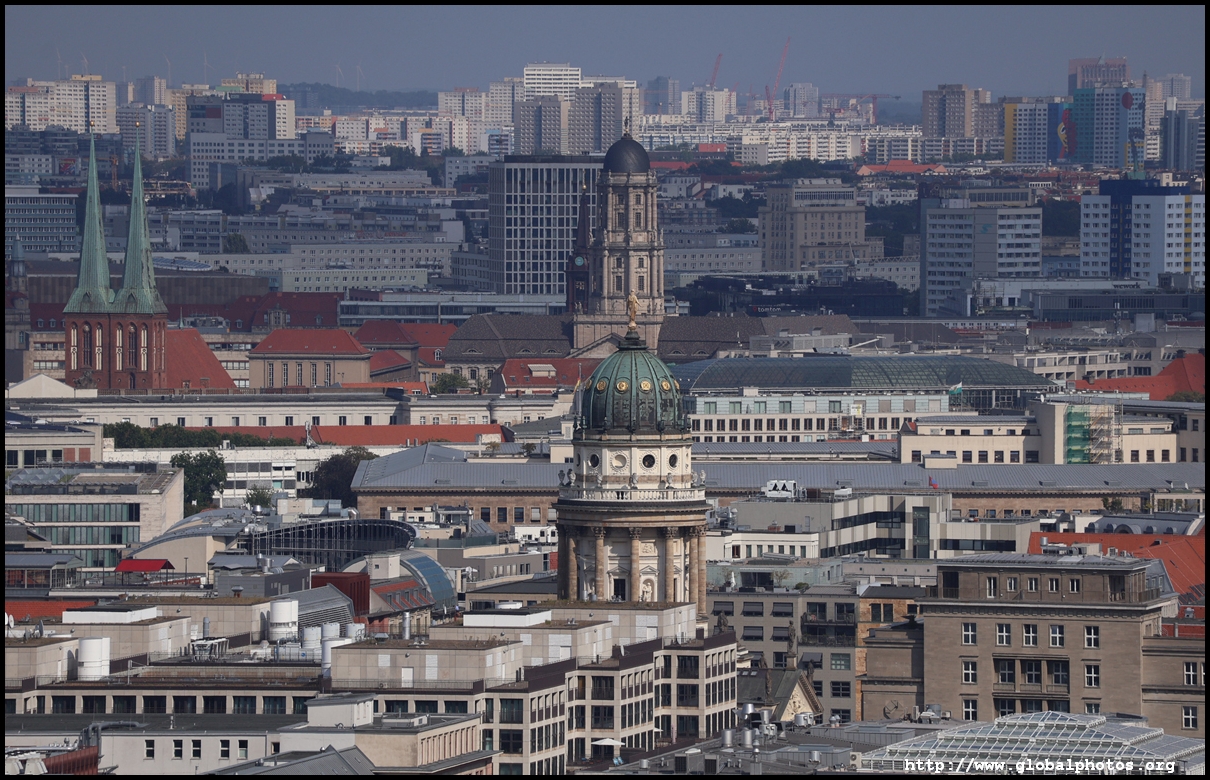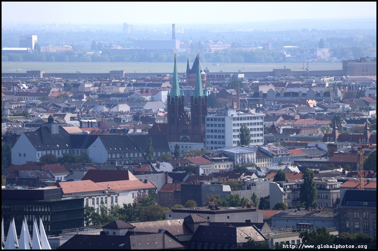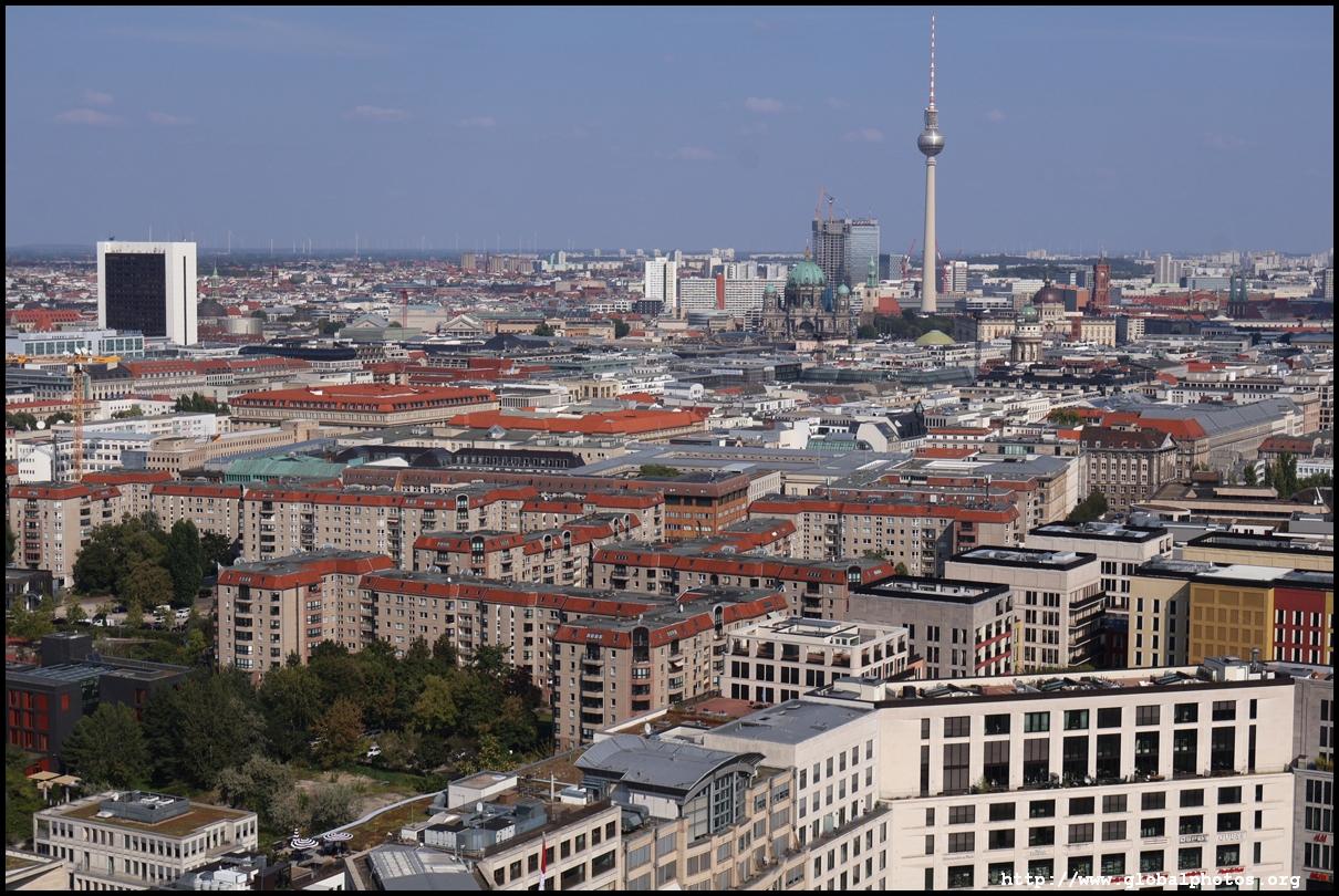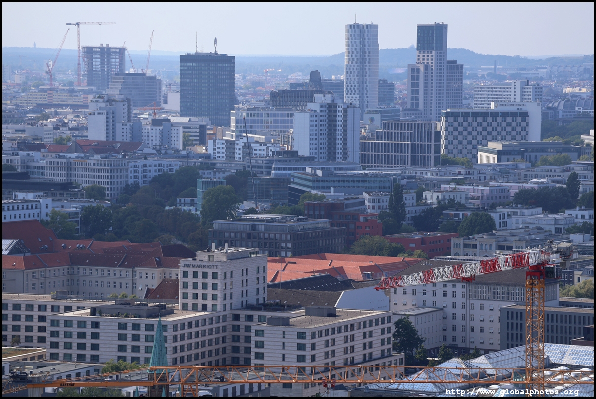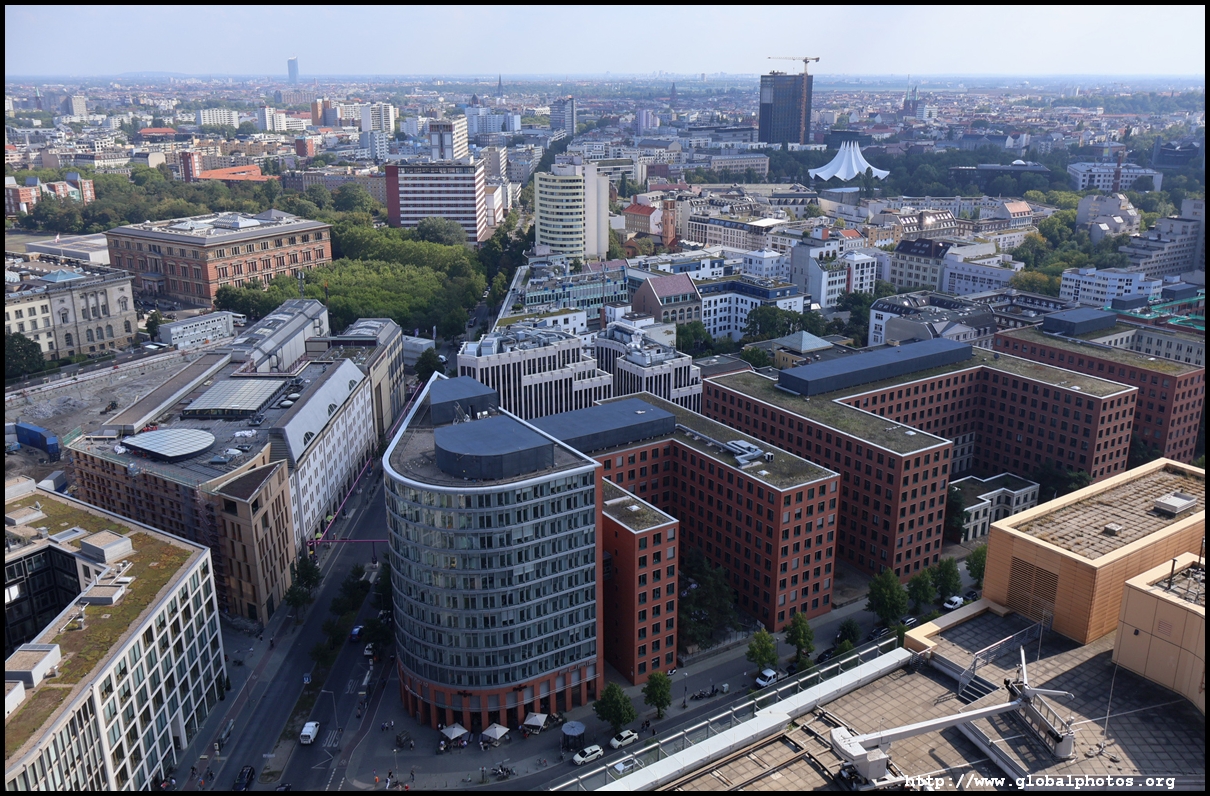 Kollhoff Tower was completed in 1999 as part of the revitalized Potsdamer Platz. The building is named after local architect Hans Kollhoff, who worked with a team led by reknowned architect Renzo Piano to create 19 buildings in the area.Surprised there was no line to go up on a sunny afternoon, I was whisked up the short elevator ride to the 24th floor in no time. Panoramapunkt offers 2 floors of views towards Berlin's vast cityscape at the top of the building. Berlin is not over-touristed like Barcelona or Venice and I got to enjoy the nice views in peace. The observation deck has plenty of space and it never got crowded. The lower floor actually offers a better perspective of the skyline as the east side facing the historic areas is blocked due to the brick structure on the upper floor.