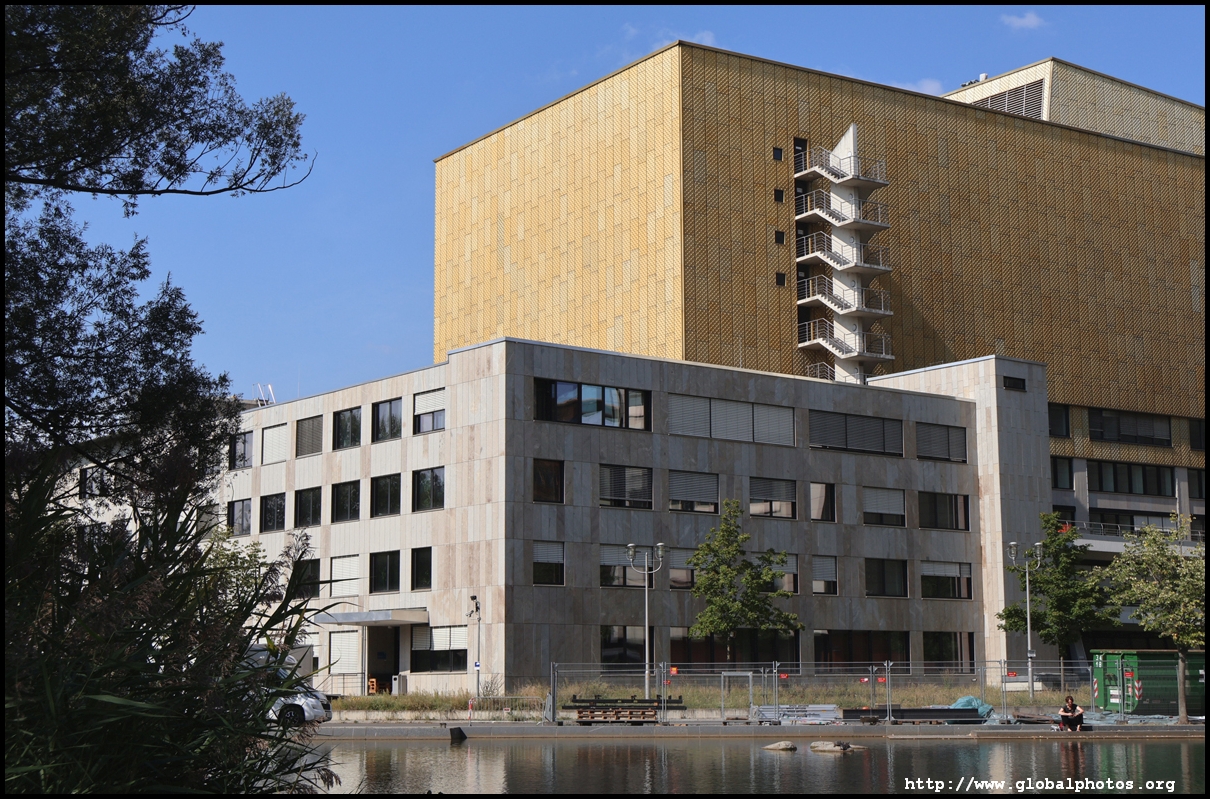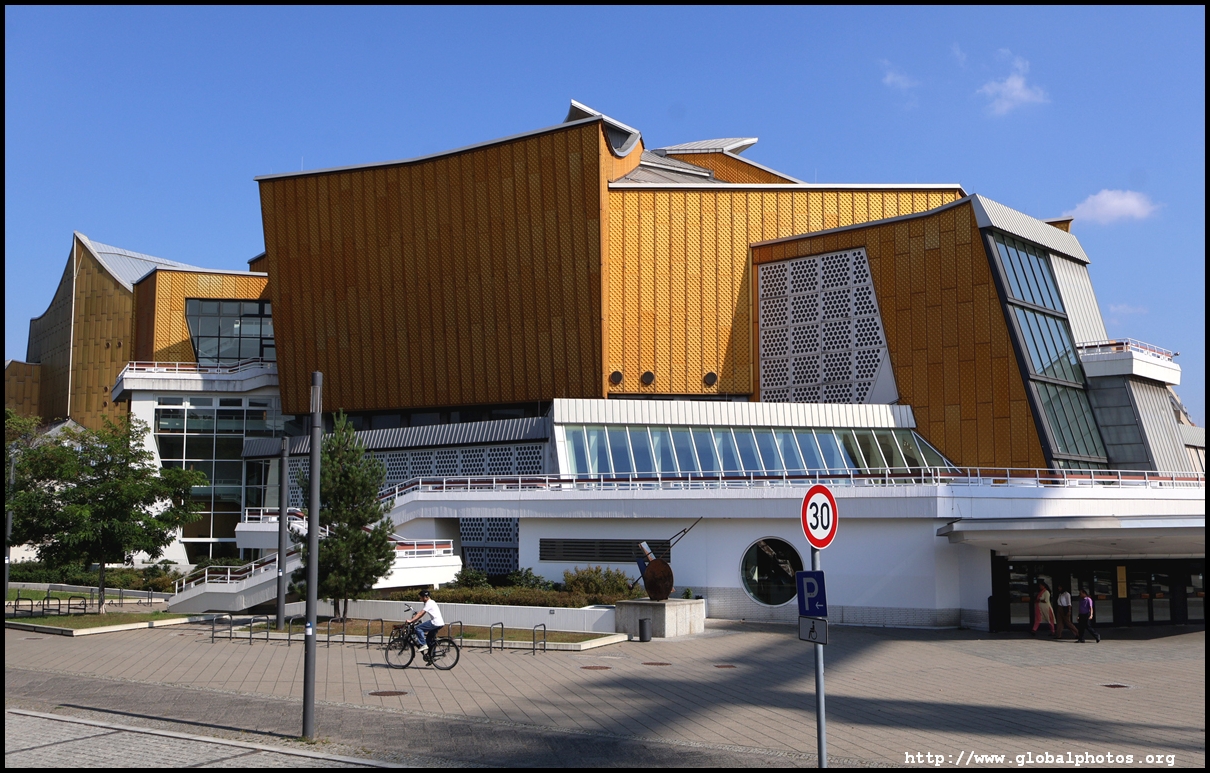 Across the street, the Philharmonie opened in 1963 with an eye-catching gold exterior and shaped like a circus tent. Architect Hans Scharoun was inspired by the image of ascending vineyards in the valley to organize the concert hall seating.