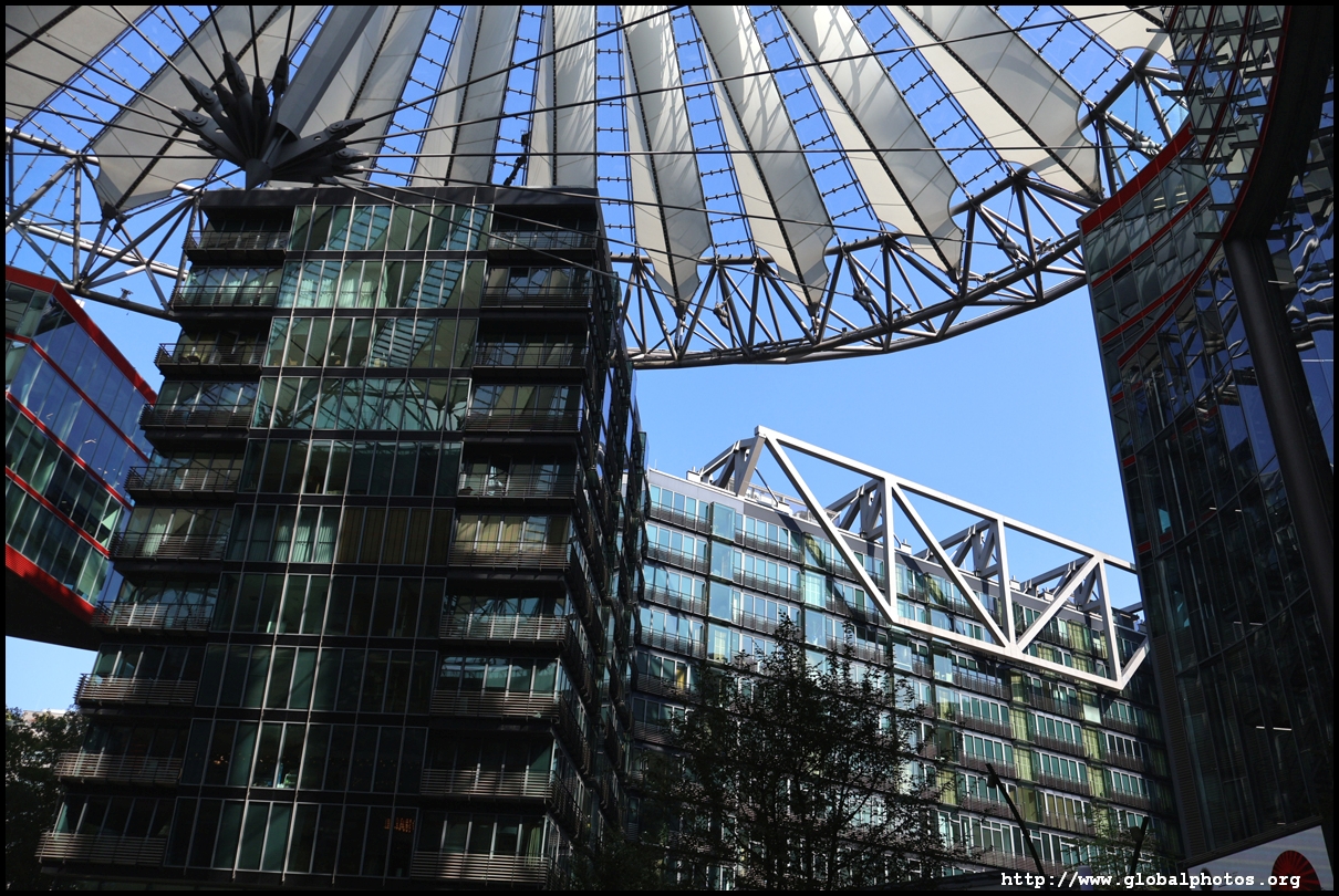 Completed in 2000, the Das Center (formerly Sony Center) is known for its tent roof designed by Helmut Jahn. There are actually 8 buildings with offices, residences, shops, and more, the tallest of which rises 103m and home to the Deutsche Bahn.