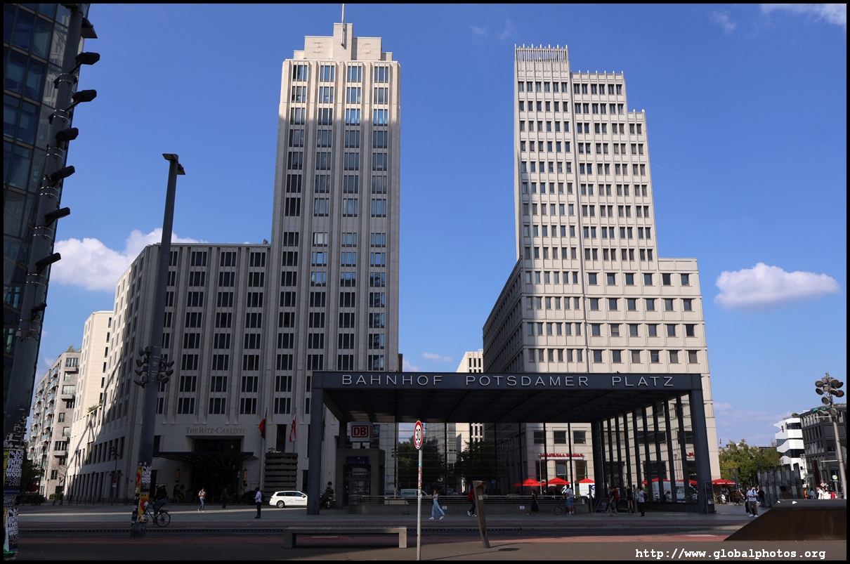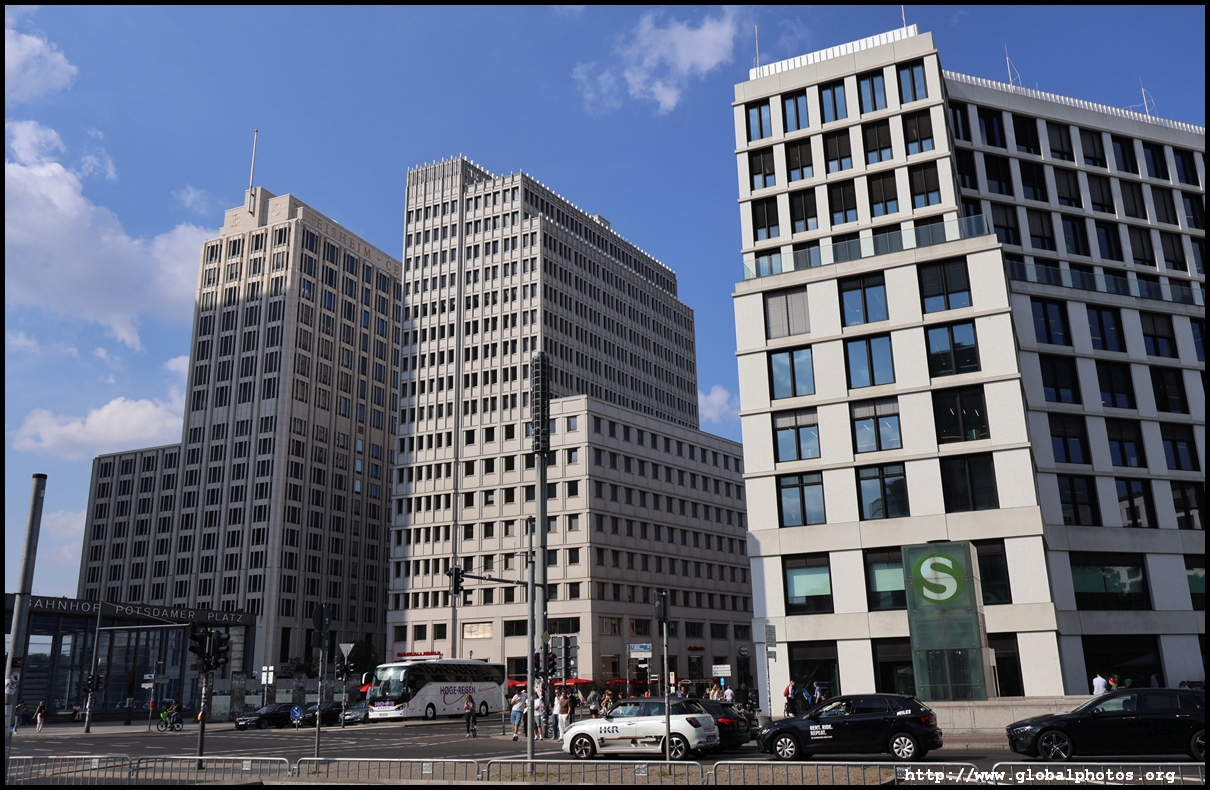 Potsdamer Platz became a transport hub in 1838 when a railway station opened and trains departed from here for Potsdam. By 1900, this was Europe's busiest traffic intersection with 6 major streets converging here. The U-bahn opened in 1902, and a further 26 tram and 5 bus lines also stopped here. Being a major crossroads, this area had grand hotels, entertainment venues, and Europe's first traffic lights.Almost entirely destroyed during World War II, it became a no-man's zone when the Berlin Wall went up in 1961 as this area was the border between the American, British, and Soviet sectors. The eastern side of the wall became a death strip, while the western side was reclaimed by nature. Potsdamer Platz had become a wasteland. After Germany was reunified, plans were put in place to redevelop the area. Starting in 1993, this became the largest construction site in Europe at the time with over 6000 workers.
