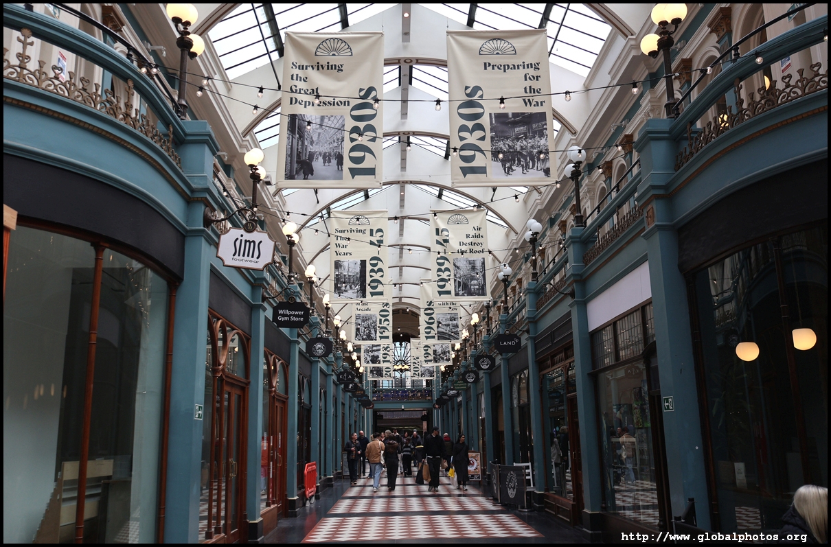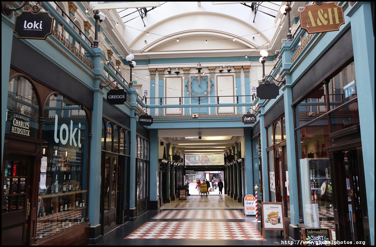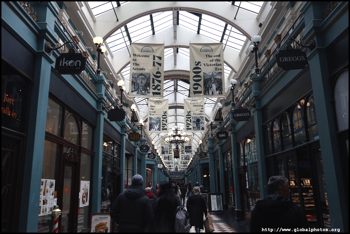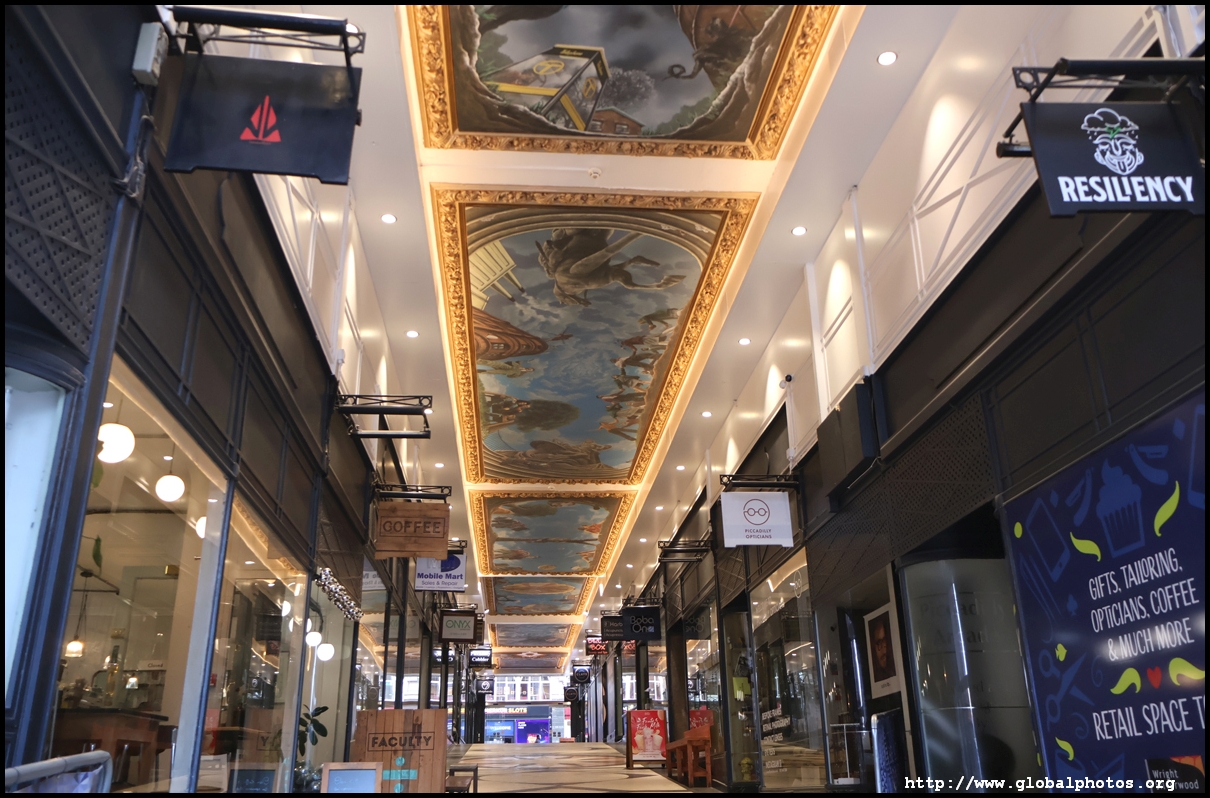 Similar to London, Birmingham has a few elaborately-decorated retail shopping arcades. Piccadilly Arcade originally opened in 1910 as The Picture House with an auditorium that could seat 750. It would close in 1926 and transformed into a retail arcade.