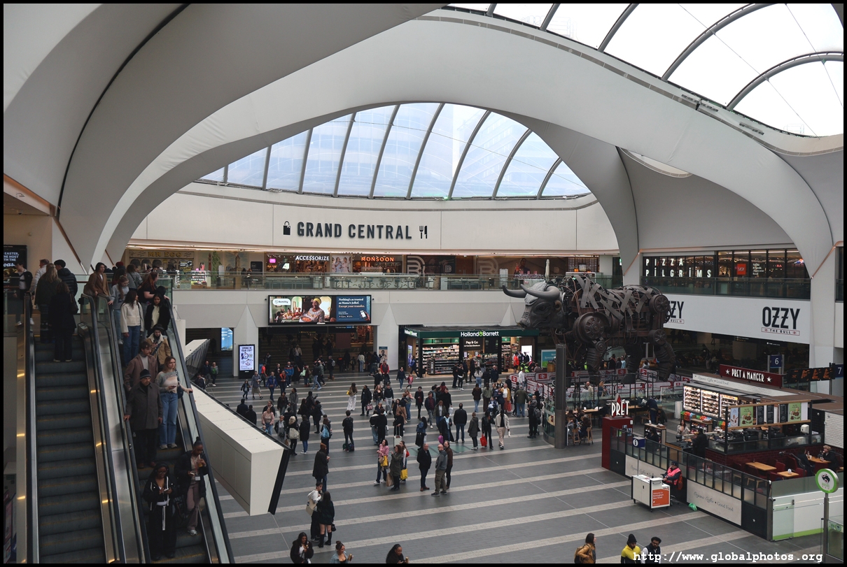 New Street Station is a redevelopment from the 2010s that costed 750 million pounds. The 24m-high atrium brings in plenty of day light, with a stainless steel facade that looks like the building is wrapped in tin foil.