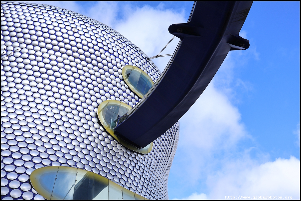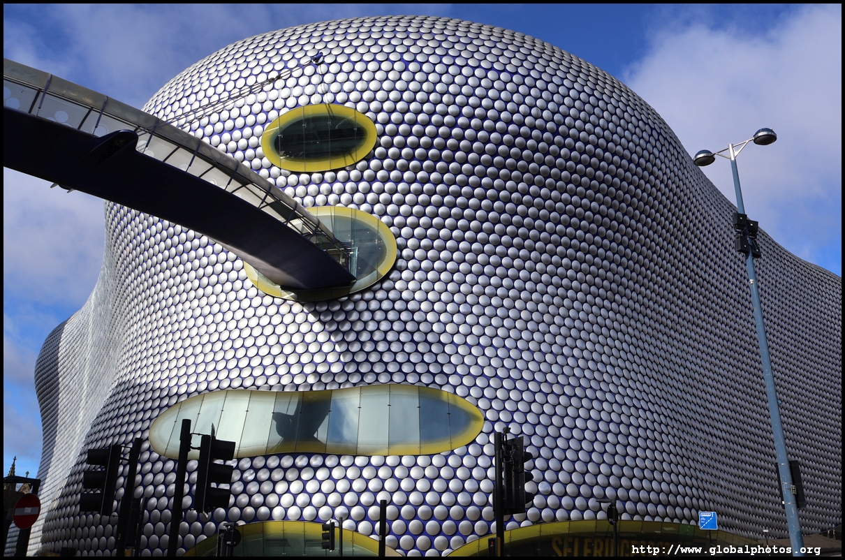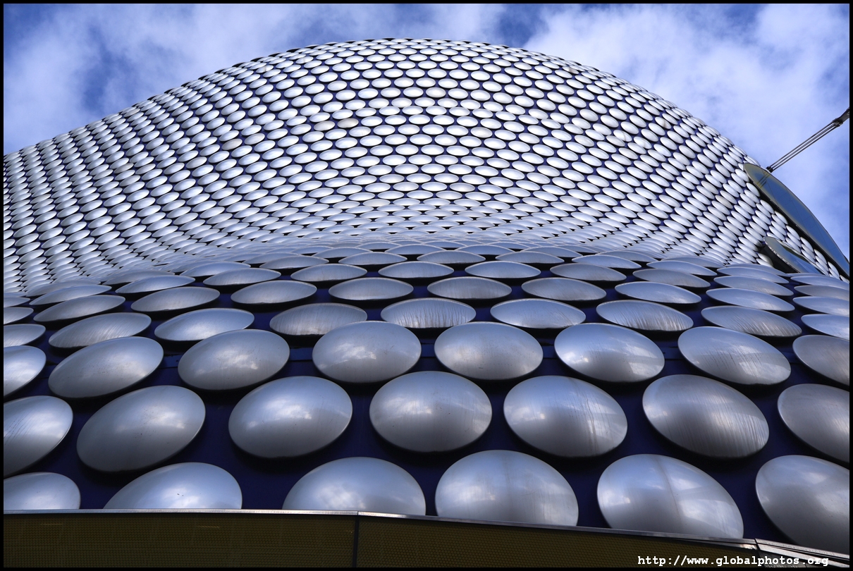 The Selfridges building is part of the Bull Ring shopping mall that opened in 2003, a huge retail-led rejuvenation project costing over 1 billion pounds. The outer skin is decorated with 15,000 spun aluminium discs, reflecting the sequins on a famous Paco Rabanne dress from the 1960s. Inside is a 270,000 square foot store.