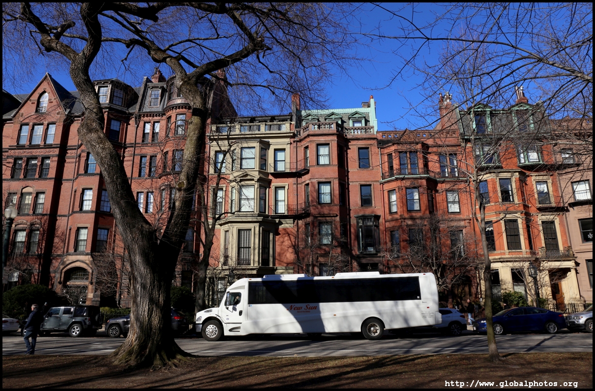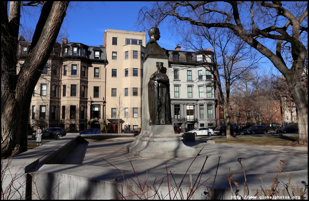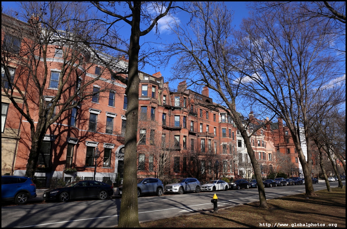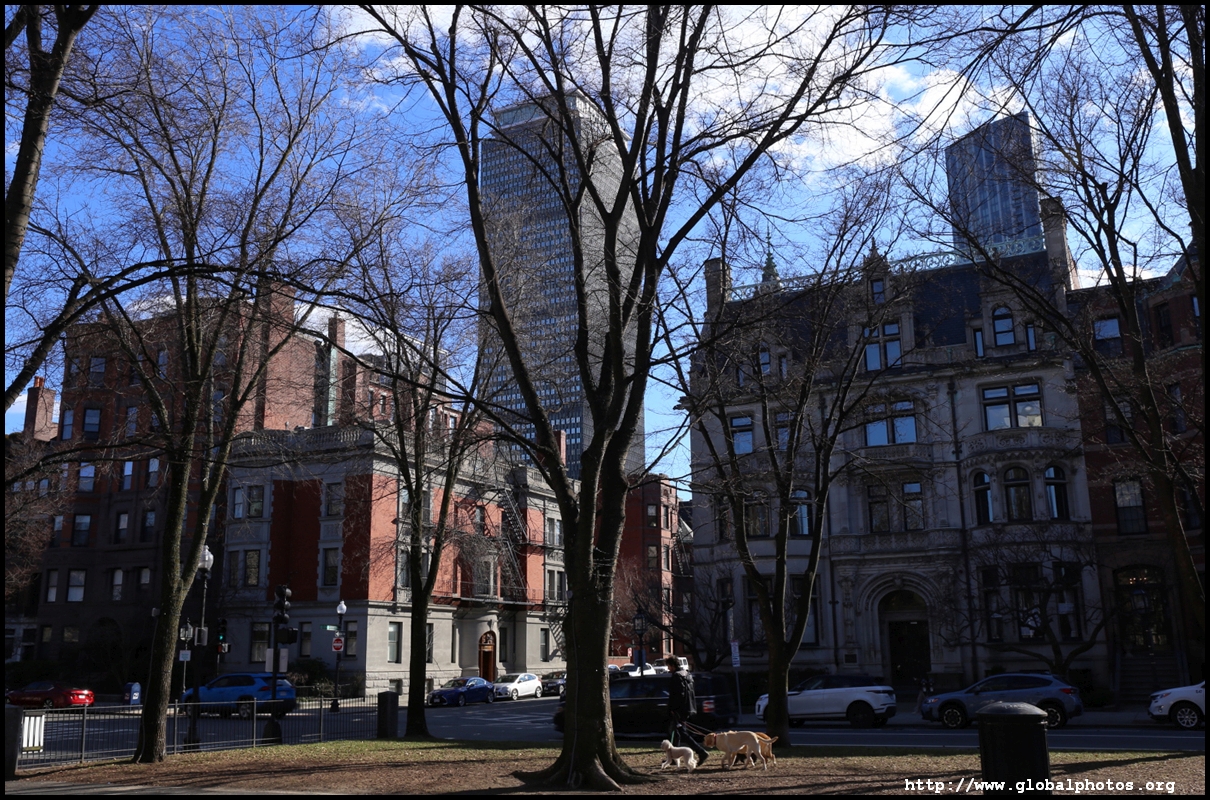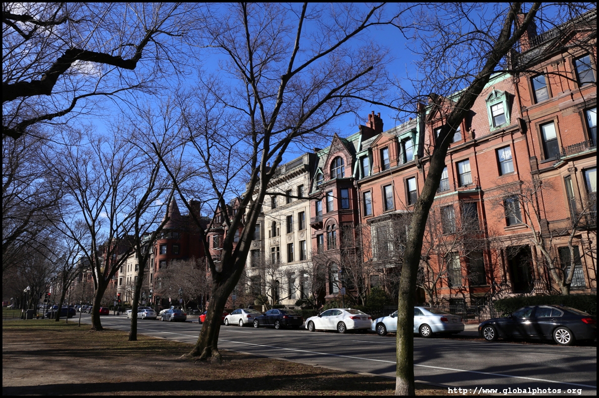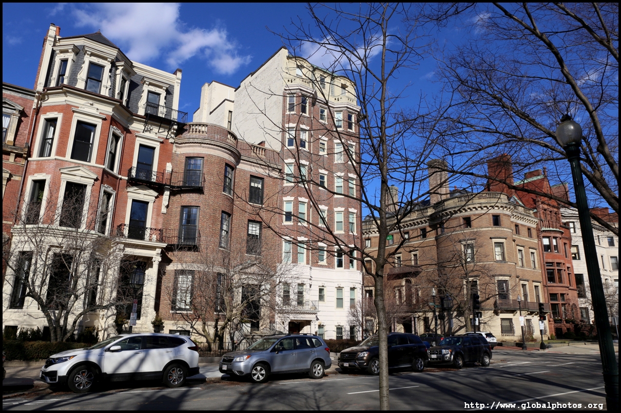 This section of Commonwealth Avenue has a wide park between its traffic lanes, offering a nice green space for residents to take a stroll. Modeled on the Parisian boulevard, it is 200 feet wide with many leading American architects showcasing their talents on both sides of the street.