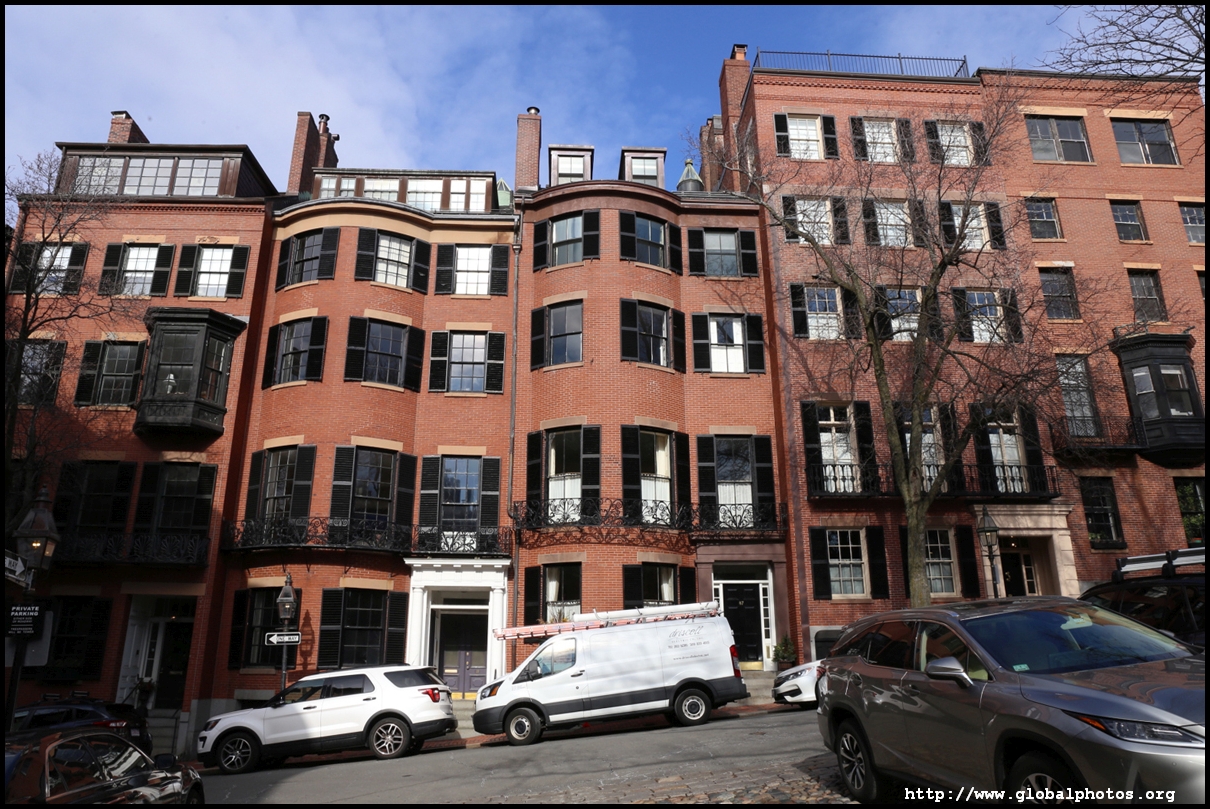 Louisburg Square is one of the most prestigious addresses in Beacon Hill with a fenced-off park surrounded by elegant townhouses. Prices have skyrocketed from around $100,000 in 1970 to over $1 million by 1984. In 2019, the media reported the 6-level #17 was listed for $20.5 million.