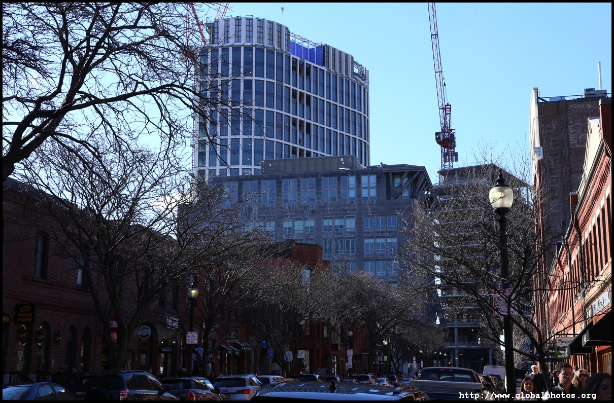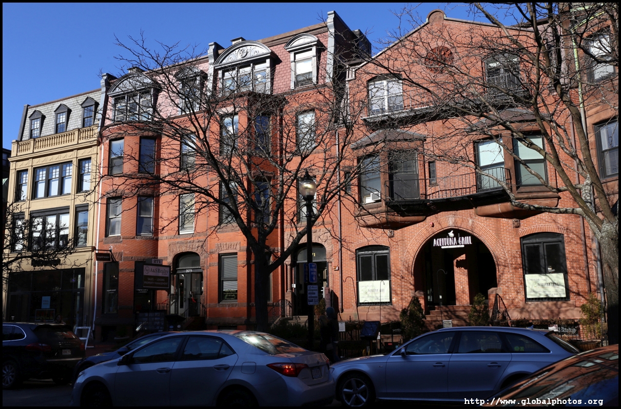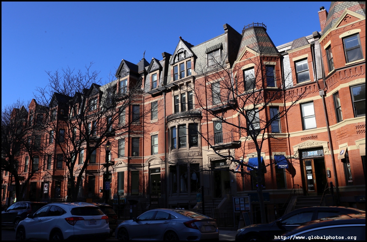 Newbury Street is Boston's equivalent of 5th Avenue, with upscale brands and other fancy stores where you can't afford to shop everyday. Most of the buildings were originally constructed as townhouses, and by the 1880s the area had eclipsed Beacon Hill as the best area to live in the city. However, the ground floors have changed purpose into commercial use today.As Back Bay was filled up block by block in the mid-19th century, the land was sold to different builders block by block, hence while we see some uniformity within each block, they differ on the next block. An old map showed horse and carriage rental services were offered on this street. The street's first building was Emmanuel Church at #15, which still stands today. MIT also was based here between 1865 and 1916.